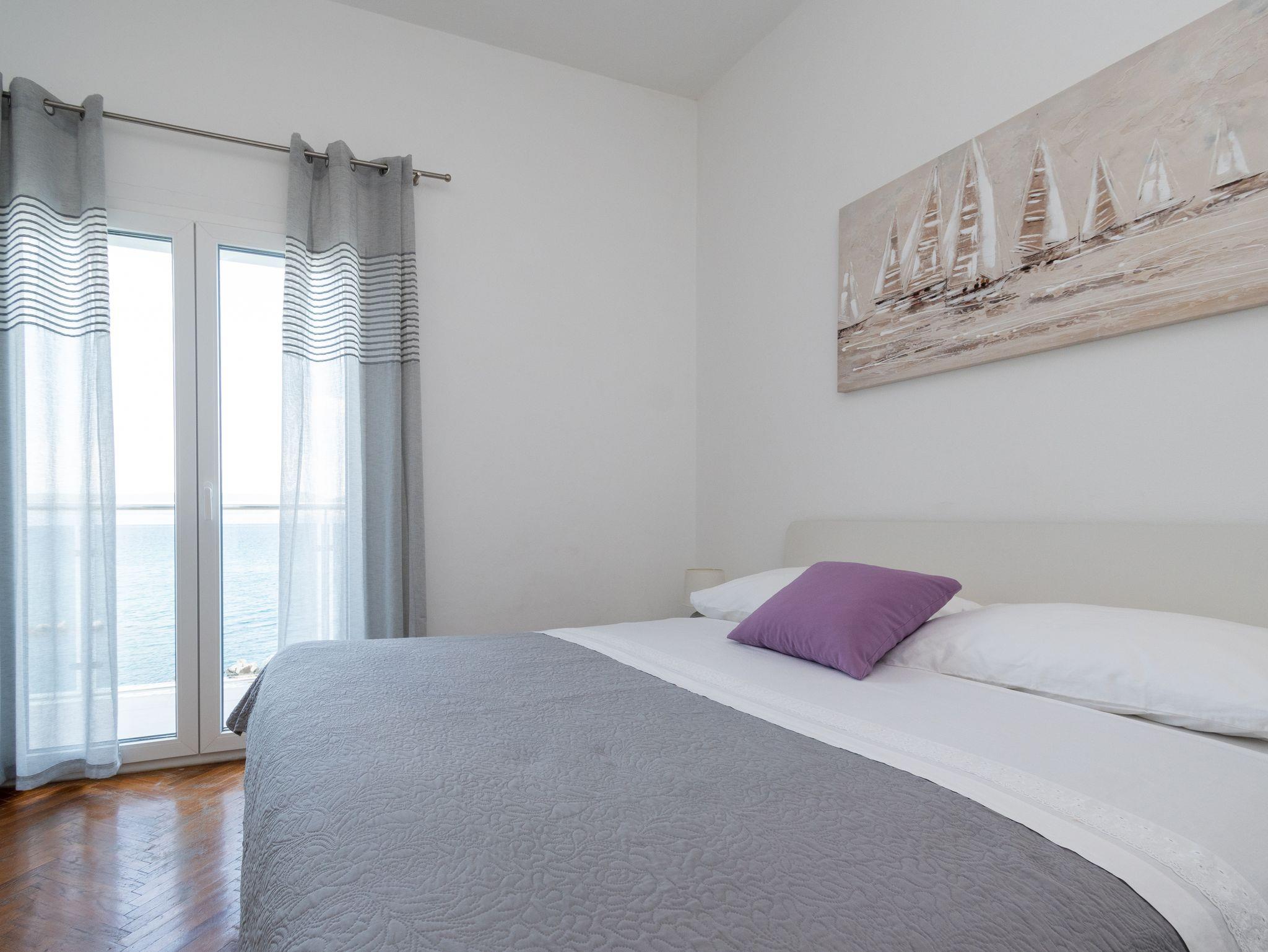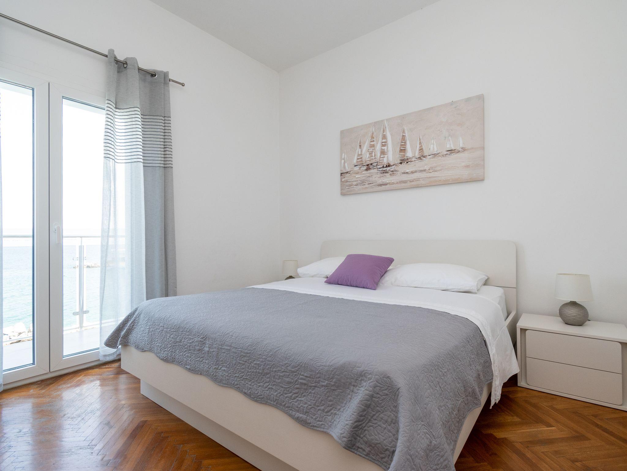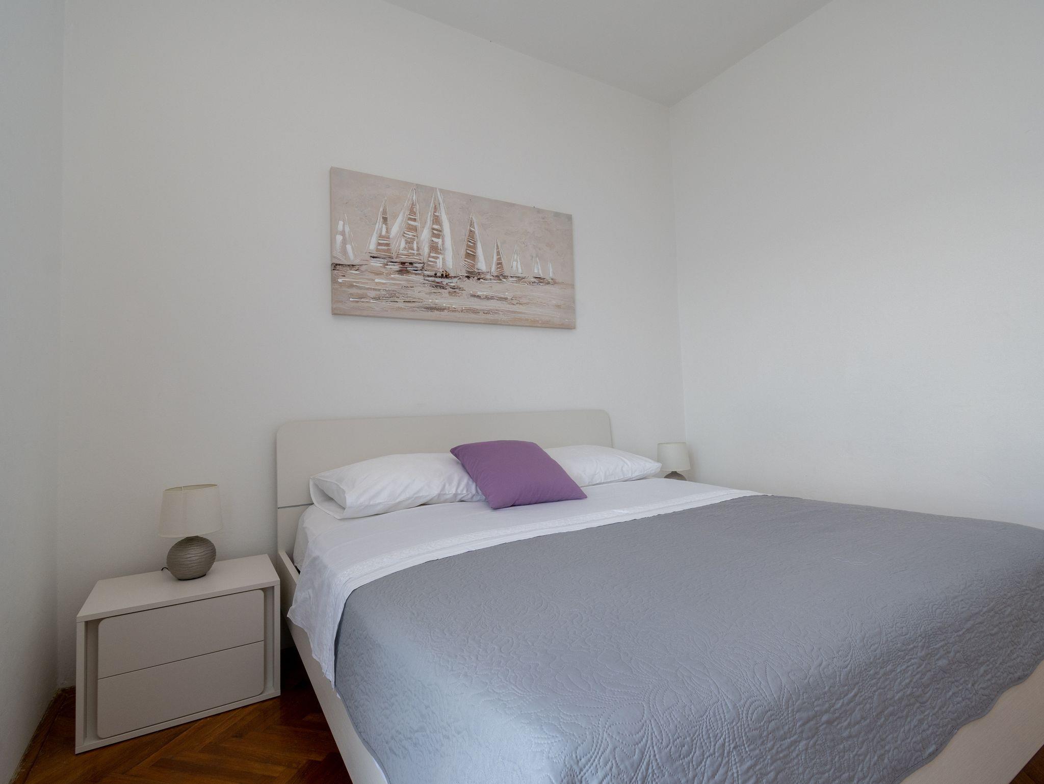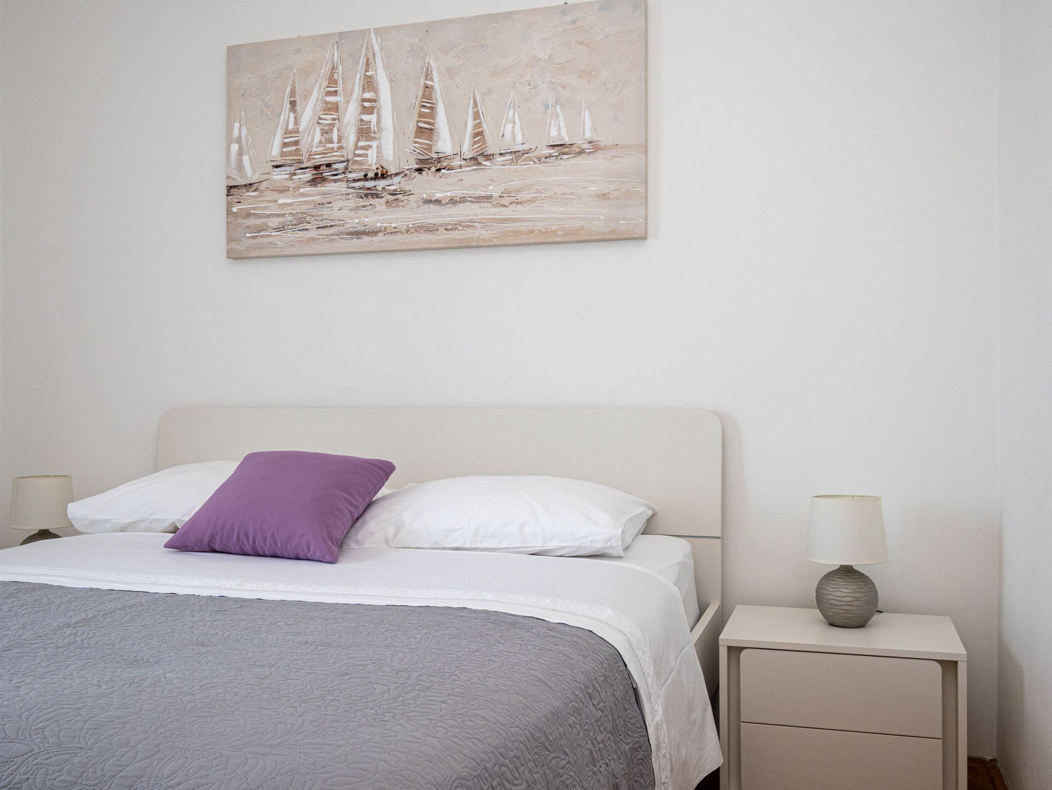 Ferienwohnung bietet Platz für 4 Gäste. Die Betten sind in Schlafzimmern, die es 2 gibt, innerhalb einer Gesamtfläche von 63m2, angeordnet. Die Gäste haben einen eigenen Balkon zur Verfügung, auf der sie in warmen Sommernächten genießen können. Das Apartment bietet Meerblick. Es ist erlaubt, Speisen auf dem Gemeinschafts-Grill vorzubereiten. IM PREIS INBEGRIFFEN: Kurtaxe, Endreinigung, Klimatisierung, Parkplatz, Internet, Bootsanlegeplatz, tragbarer Grill. VERBINDLICHE ZUSÄTZLICHE KOSTEN: Aufzahlung für Kurzaufenthalte (prozentualer Zuschlag pro Nächtigungsanzahl: 30% - 1, 20% - 2, 10% - 3). Die Verfügbarkeit zusätzlicher Dienstleistungen in Ihrem reservierten Termin und die Preise derselben (falls nicht aufgeführt) müssen im Voraus überprüft werden. Zusätzliche Dienstleistungen die in der Zahlungsaufforderung nicht aufgeführt sind werden direkt beim Vermieter bezahlt, angenommen der Gast nutzt auch diese.