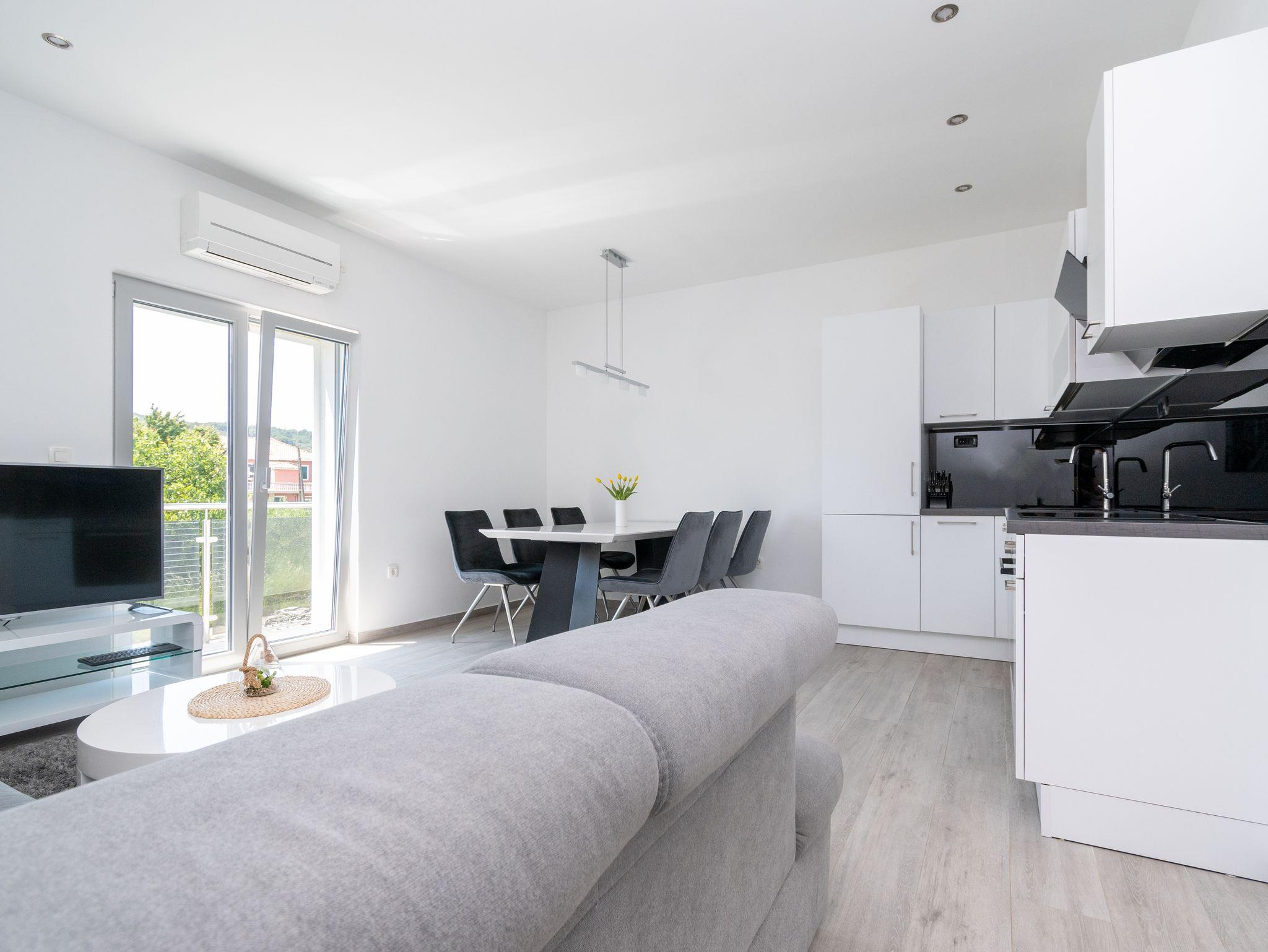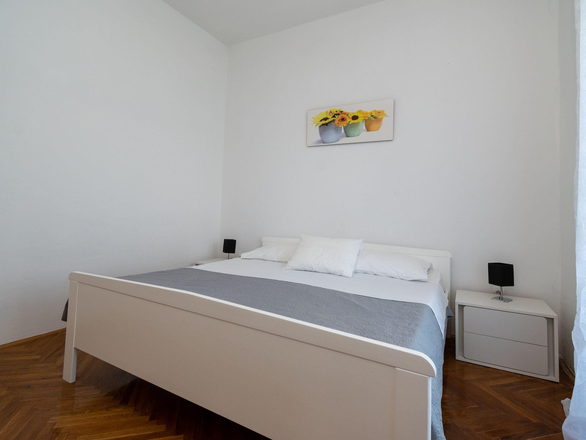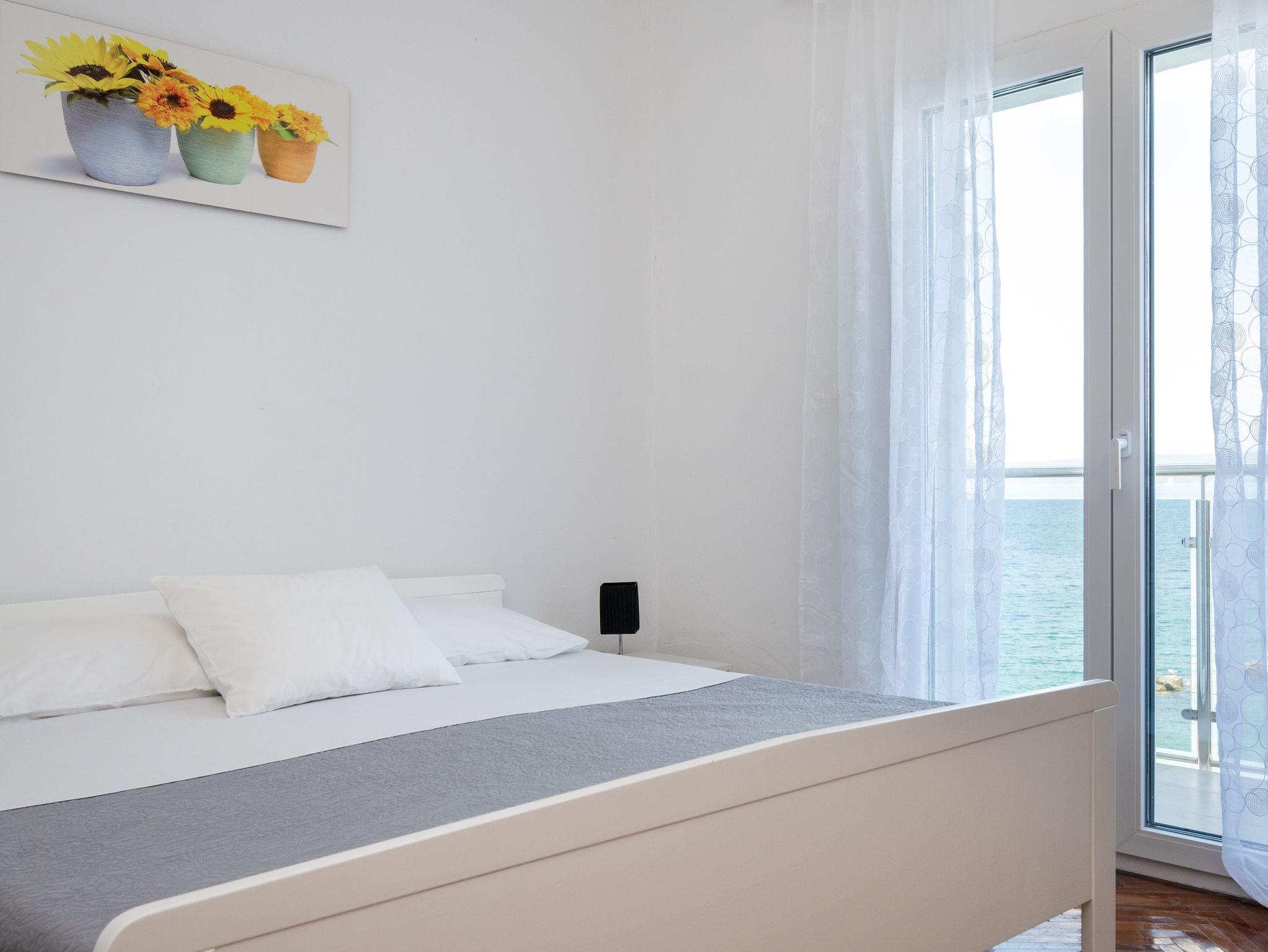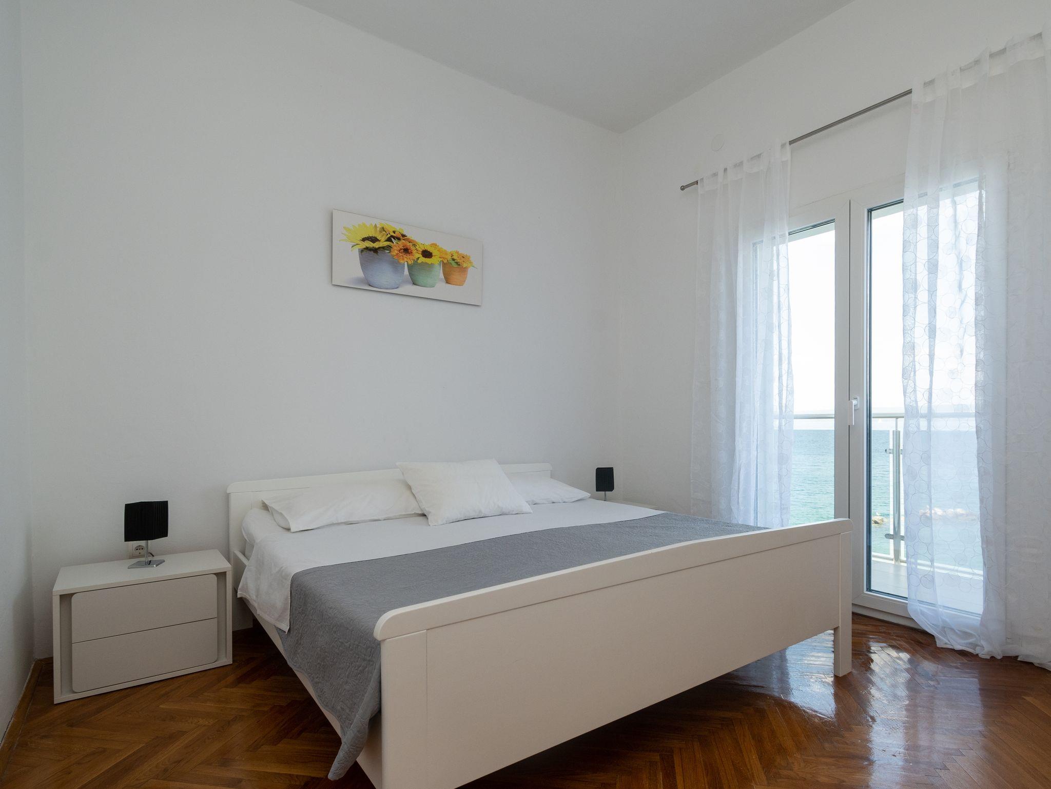 Ferienwohnung bietet Platz für 4 Gäste. Die Betten sind in Schlafzimmern, die es 2 gibt, innerhalb einer Gesamtfläche von 63m2, angeordnet. Die Gäste haben einen eigenen Balkon zur Verfügung, auf der sie in warmen Sommernächten genießen können. Das Apartment bietet Meerblick. Es ist erlaubt, Speisen auf dem Gemeinschafts-Grill vorzubereiten. IM PREIS INBEGRIFFEN: Kurtaxe, Endreinigung, Klimatisierung, Parkplatz, Internet, Bootsanlegeplatz, tragbarer Grill. VERBINDLICHE ZUSÄTZLICHE KOSTEN: Aufzahlung für Kurzaufenthalte (prozentualer Zuschlag pro Nächtigungsanzahl: 30% - 1, 20% - 2, 10% - 3). Die Verfügbarkeit zusätzlicher Dienstleistungen in Ihrem reservierten Termin und die Preise derselben (falls nicht aufgeführt) müssen im Voraus überprüft werden. Zusätzliche Dienstleistungen die in der Zahlungsaufforderung nicht aufgeführt sind werden direkt beim Vermieter bezahlt, angenommen der Gast nutzt auch diese.