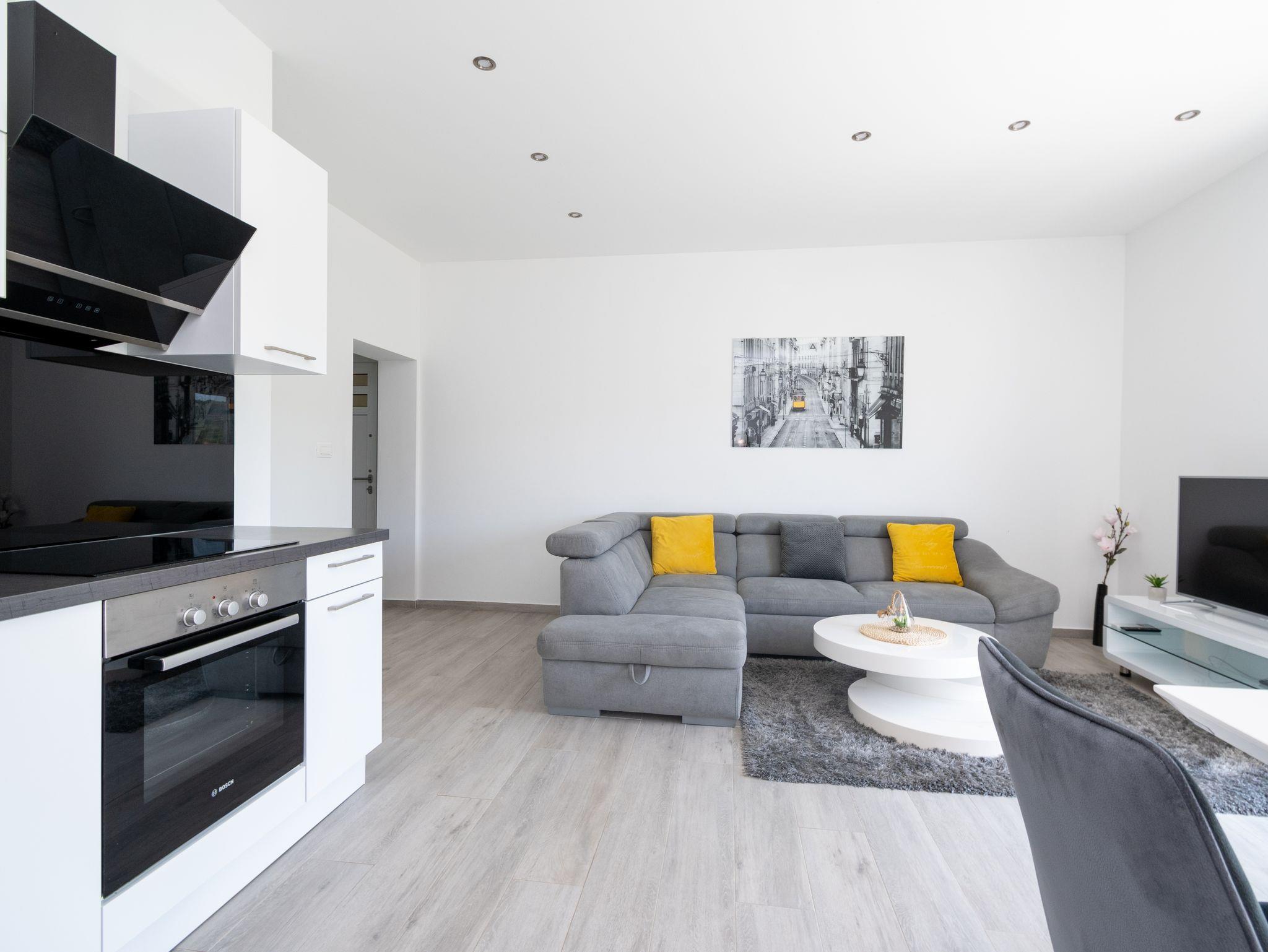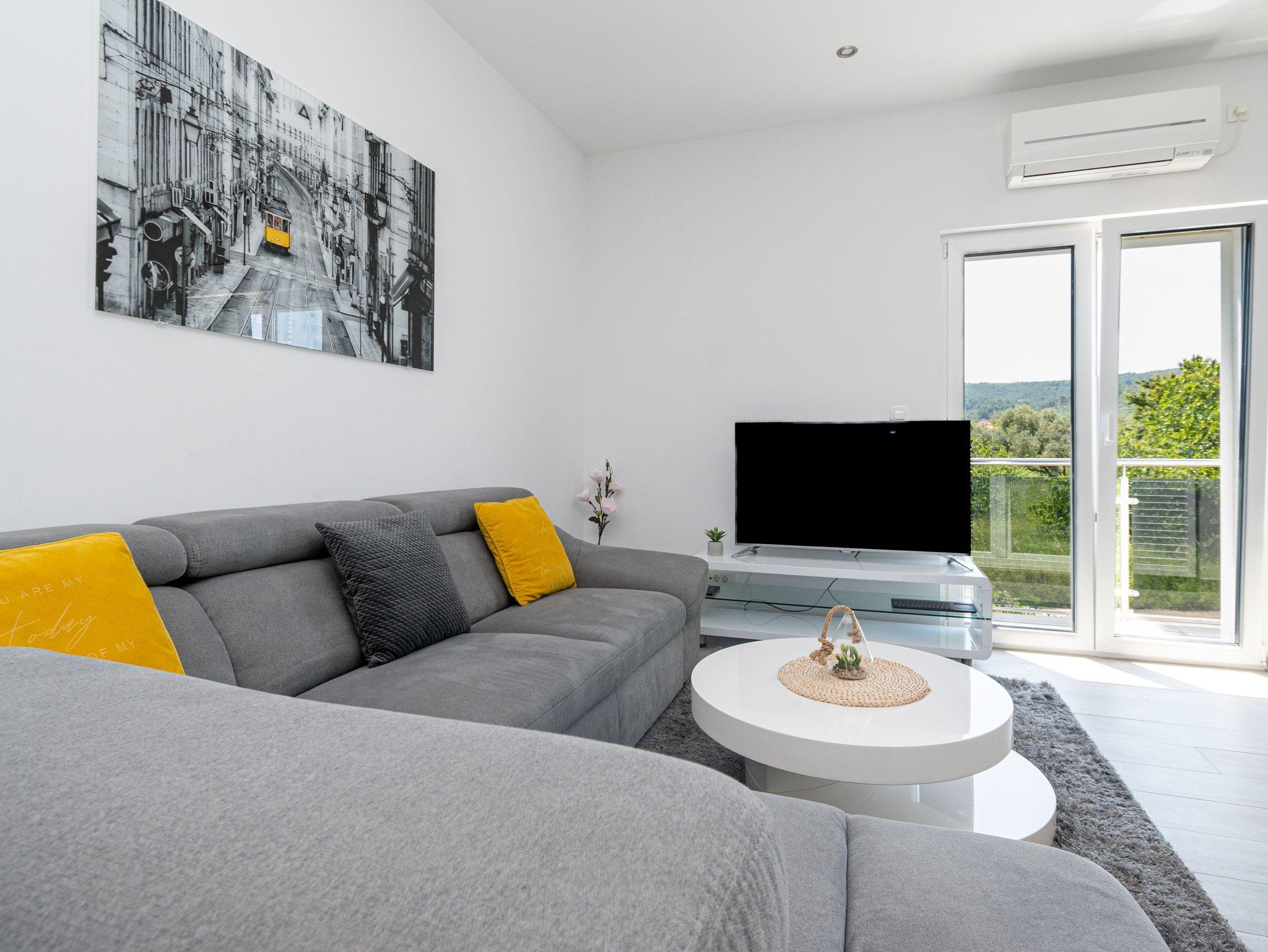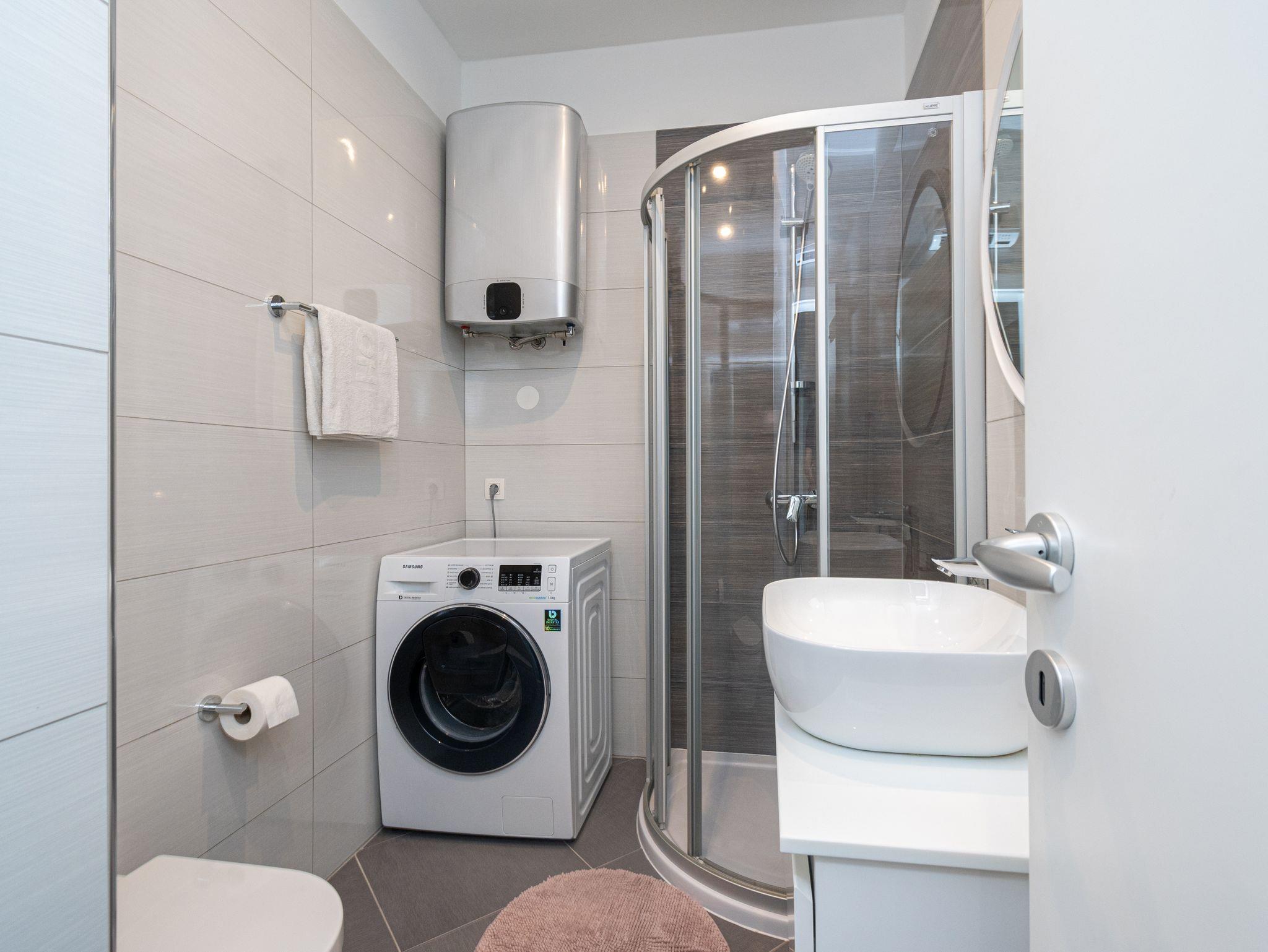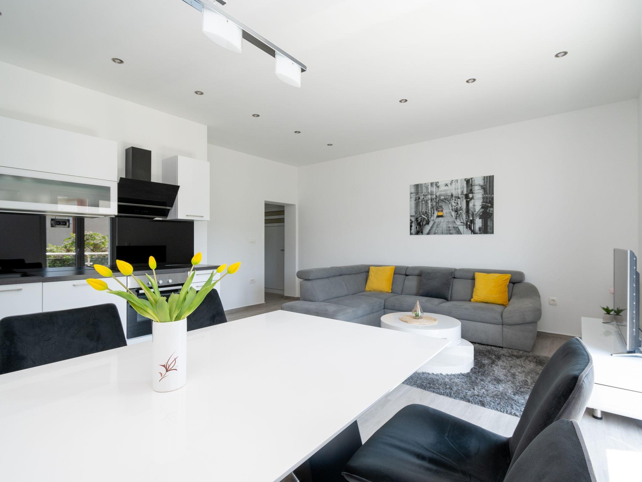 Ferienwohnung bietet Platz für 4 Gäste. Die Betten sind in Schlafzimmern, die es 2 gibt, innerhalb einer Gesamtfläche von 63m2, angeordnet. Die Gäste haben einen eigenen Balkon zur Verfügung, auf der sie in warmen Sommernächten genießen können. Das Apartment bietet Meerblick. Es ist erlaubt, Speisen auf dem Gemeinschafts-Grill vorzubereiten. IM PREIS INBEGRIFFEN: Kurtaxe, Endreinigung, Klimatisierung, Parkplatz, Internet, Bootsanlegeplatz, tragbarer Grill. VERBINDLICHE ZUSÄTZLICHE KOSTEN: Aufzahlung für Kurzaufenthalte (prozentualer Zuschlag pro Nächtigungsanzahl: 30% - 1, 20% - 2, 10% - 3). Die Verfügbarkeit zusätzlicher Dienstleistungen in Ihrem reservierten Termin und die Preise derselben (falls nicht aufgeführt) müssen im Voraus überprüft werden. Zusätzliche Dienstleistungen die in der Zahlungsaufforderung nicht aufgeführt sind werden direkt beim Vermieter bezahlt, angenommen der Gast nutzt auch diese.