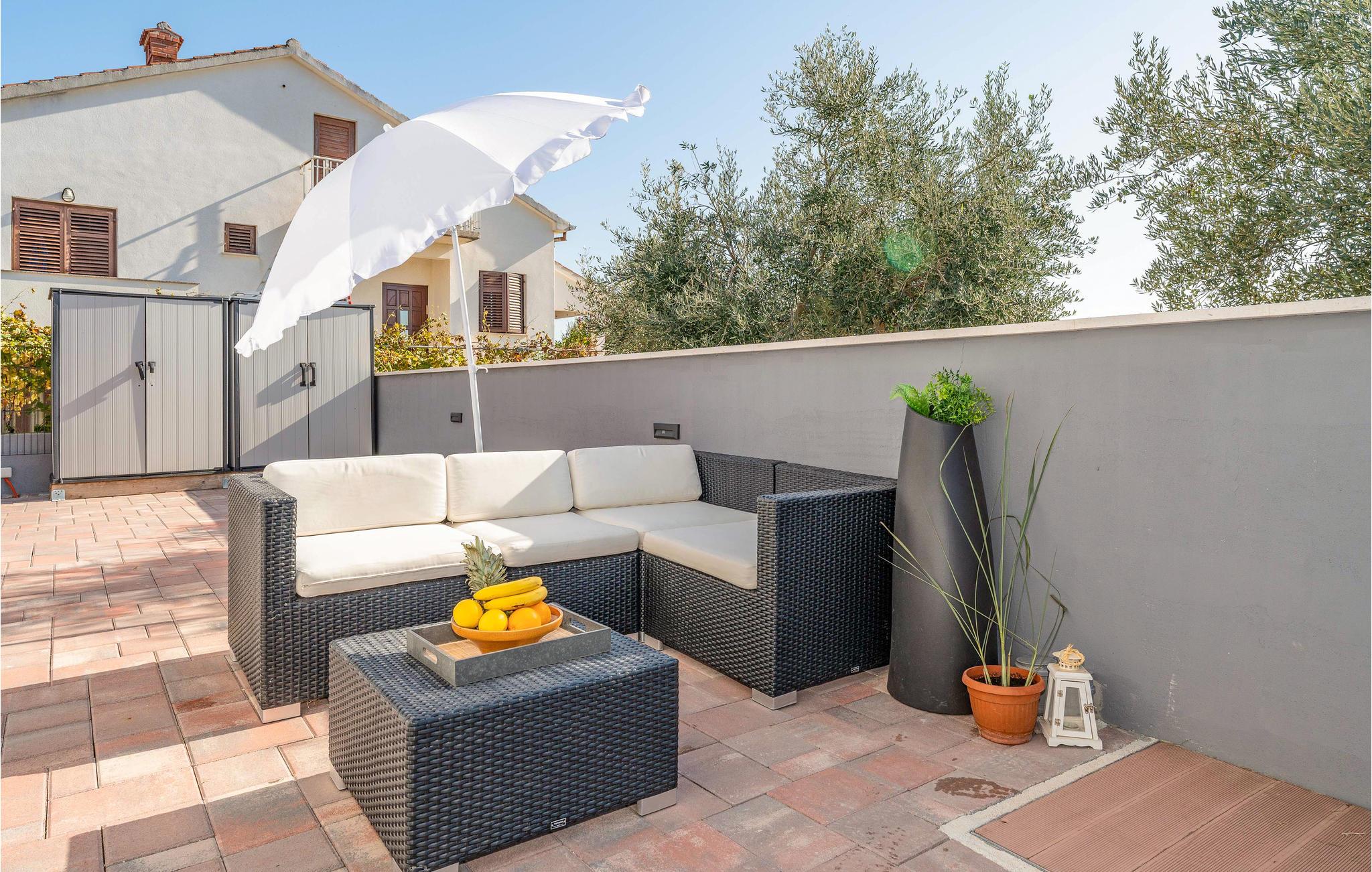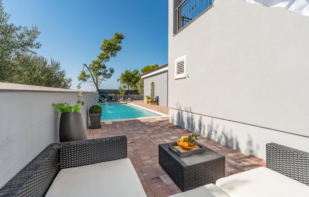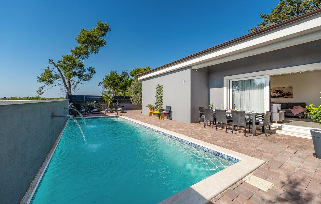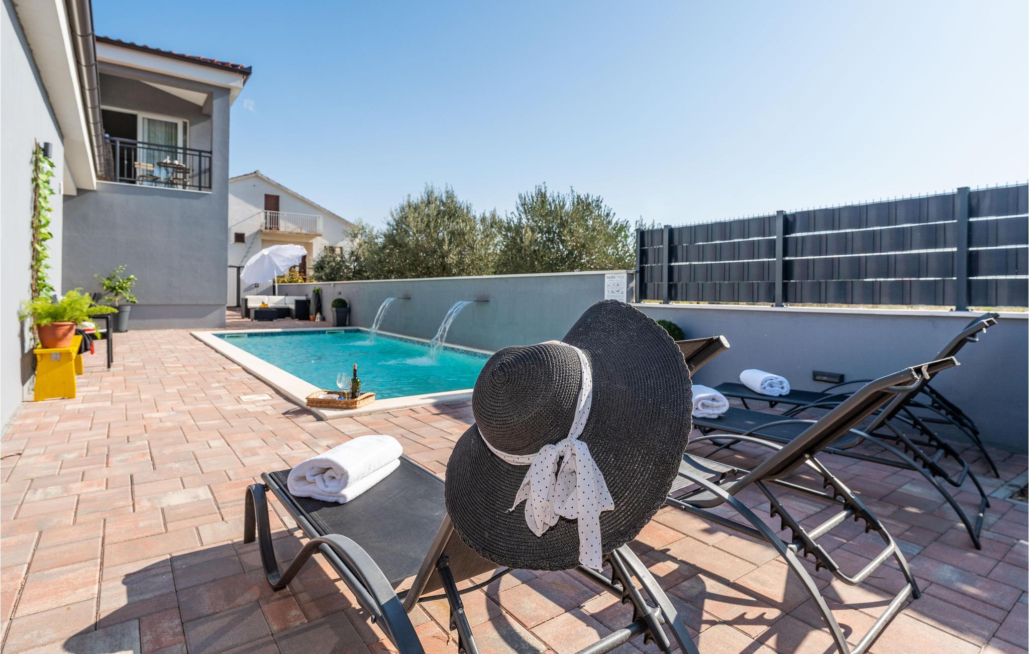 Dette store og hjemlige feriehus med pool venter jer mellem kystbyerne Nin og Pivlaka. Her vil I med garanti nyde komforten og den nydelige indretning, der med det samme skaber en behagelig 'feel-good'-stemning. Stuen har et stort terrassevindue og er forbundet med både terrasse og have. Derudover kan I finde et dejligt, roligt sted på balkonen på første sal, hvorfra I kan kigge ud over havet. Hop i poolen, bad i solen, spis noget lækkert mad og tænd op i grillen udendørs og glæd jer til nogle uforglemmelige stunder i både hus og hav.