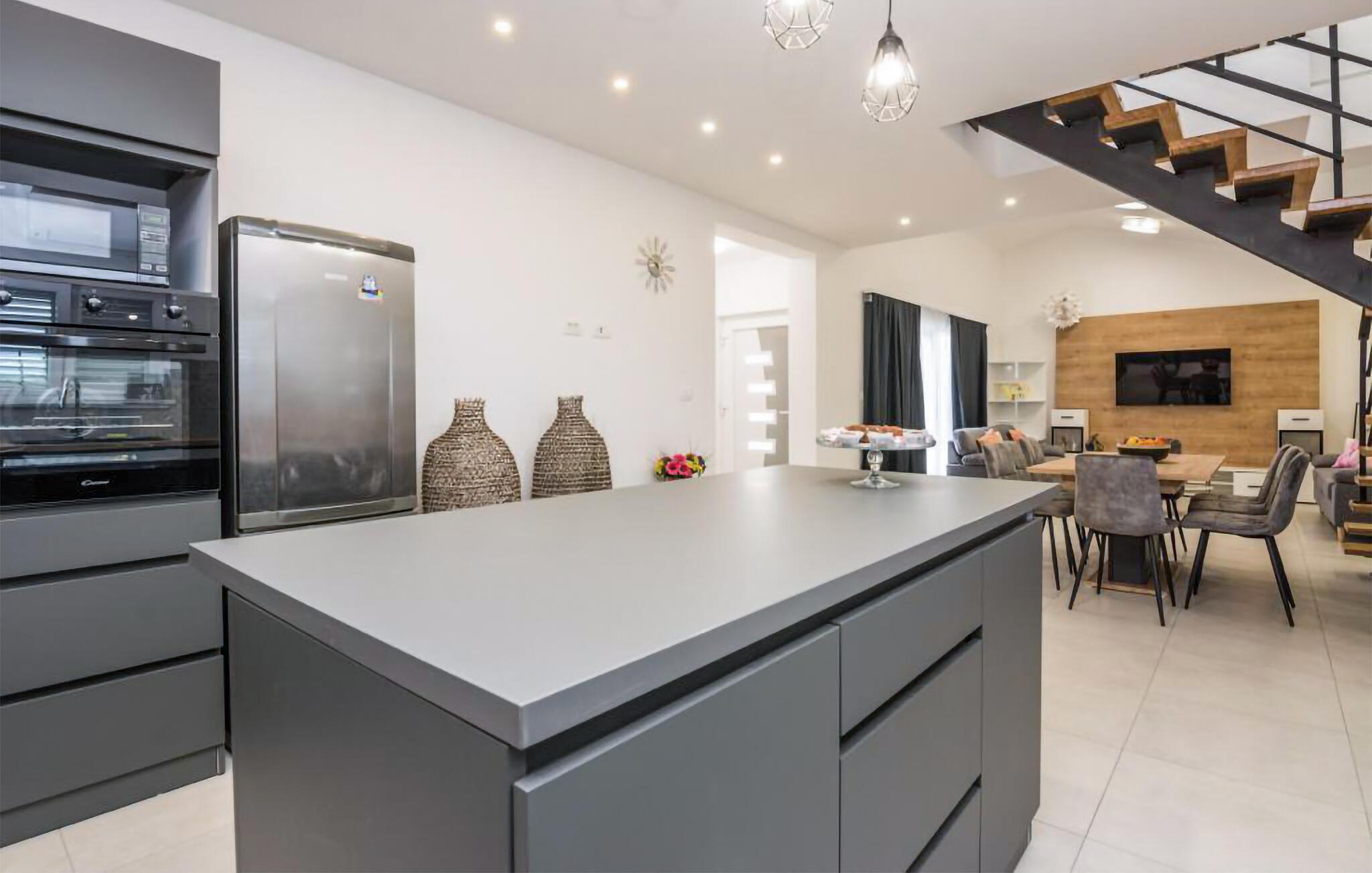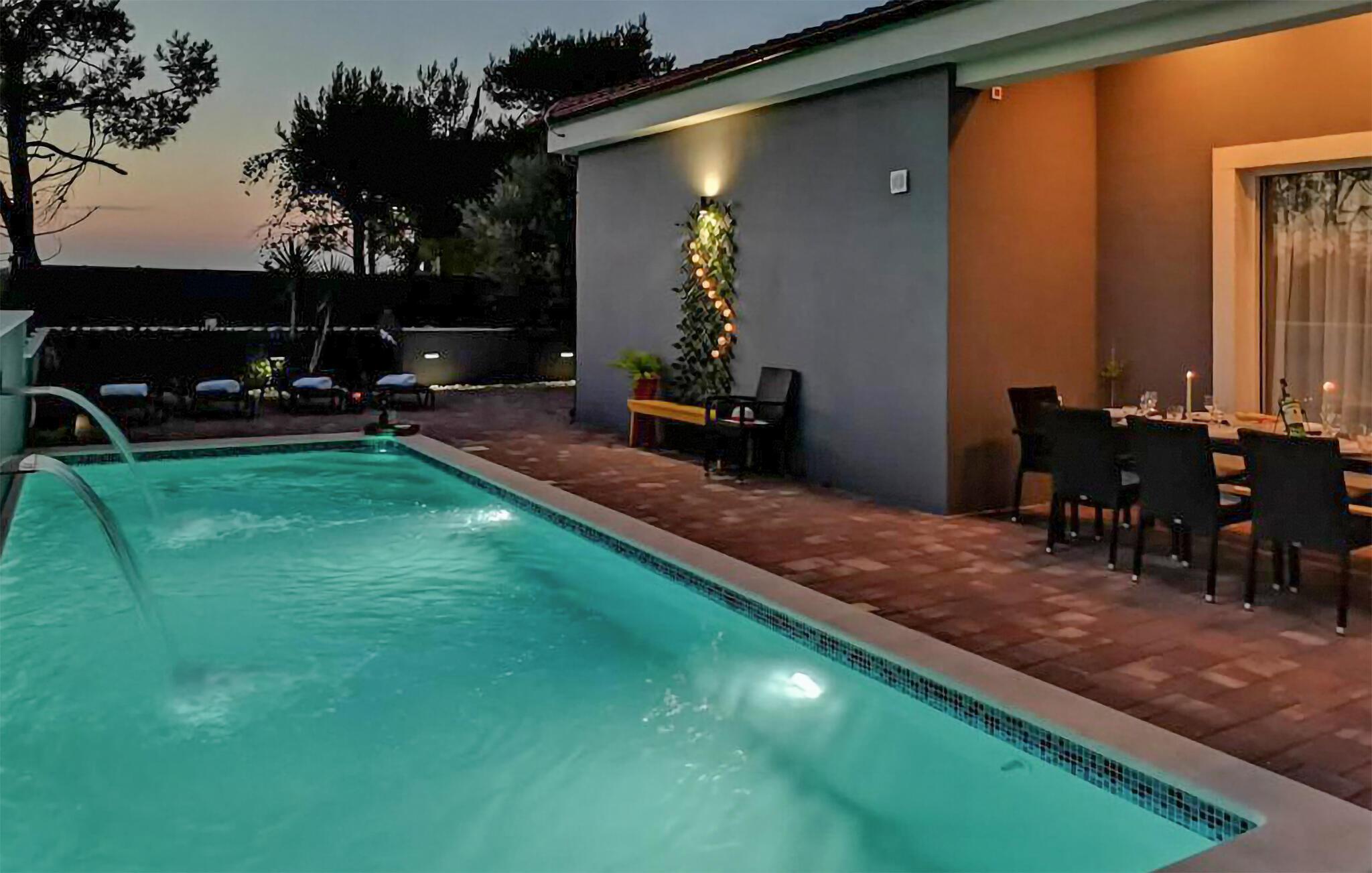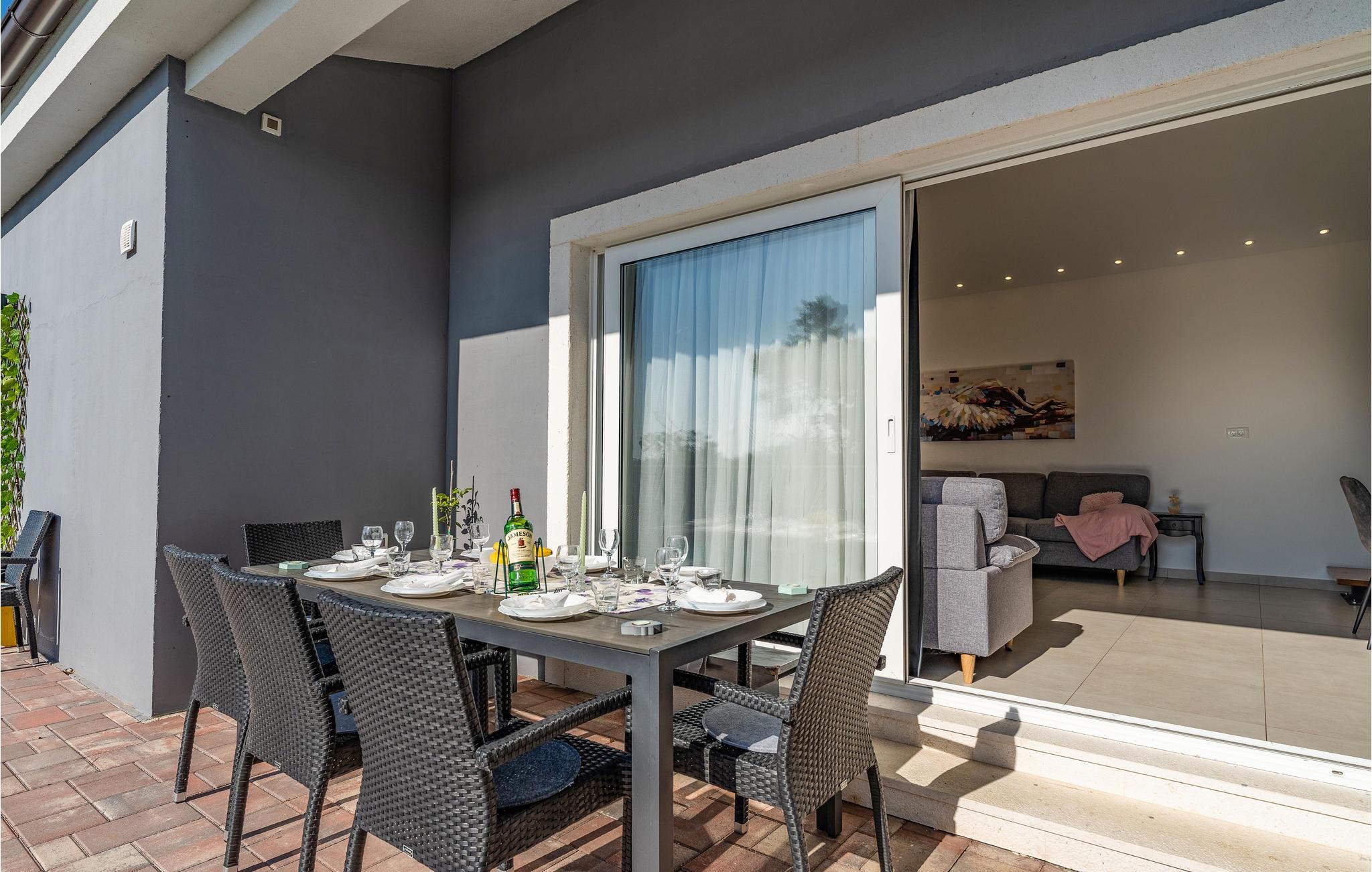 Dette store og hjemlige feriehus med pool venter jer mellem kystbyerne Nin og Pivlaka. Her vil I med garanti nyde komforten og den nydelige indretning, der med det samme skaber en behagelig 'feel-good'-stemning. Stuen har et stort terrassevindue og er forbundet med både terrasse og have. Derudover kan I finde et dejligt, roligt sted på balkonen på første sal, hvorfra I kan kigge ud over havet. Hop i poolen, bad i solen, spis noget lækkert mad og tænd op i grillen udendørs og glæd jer til nogle uforglemmelige stunder i både hus og hav.
