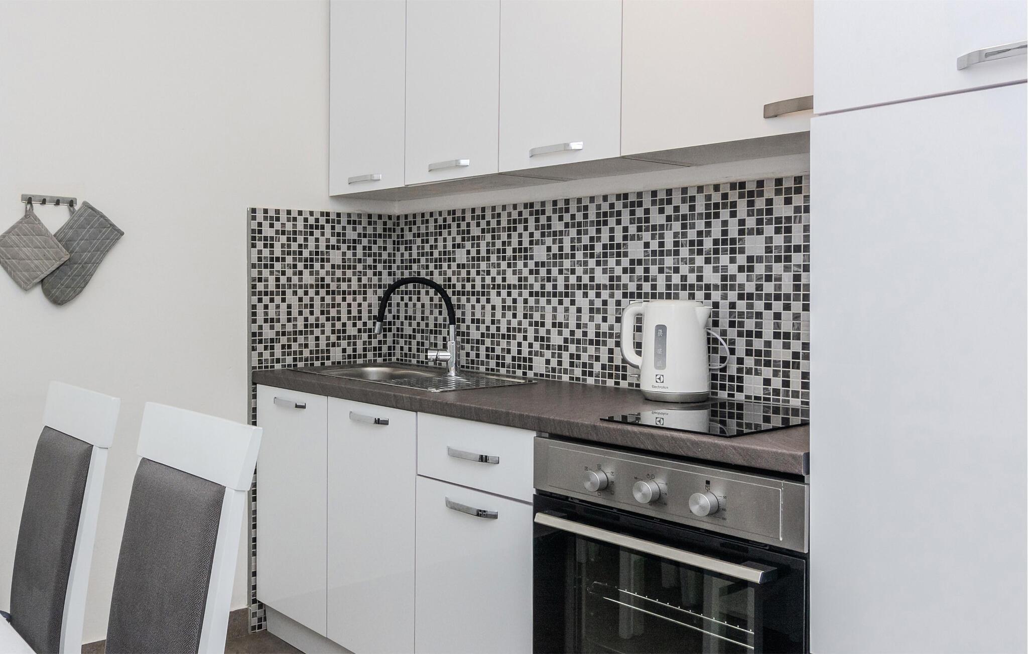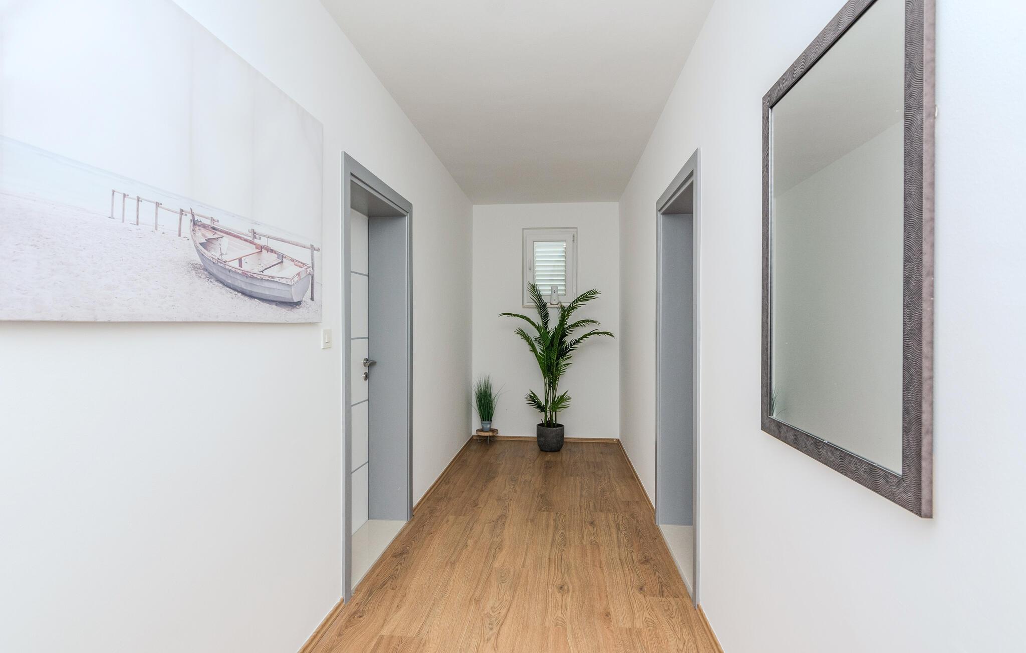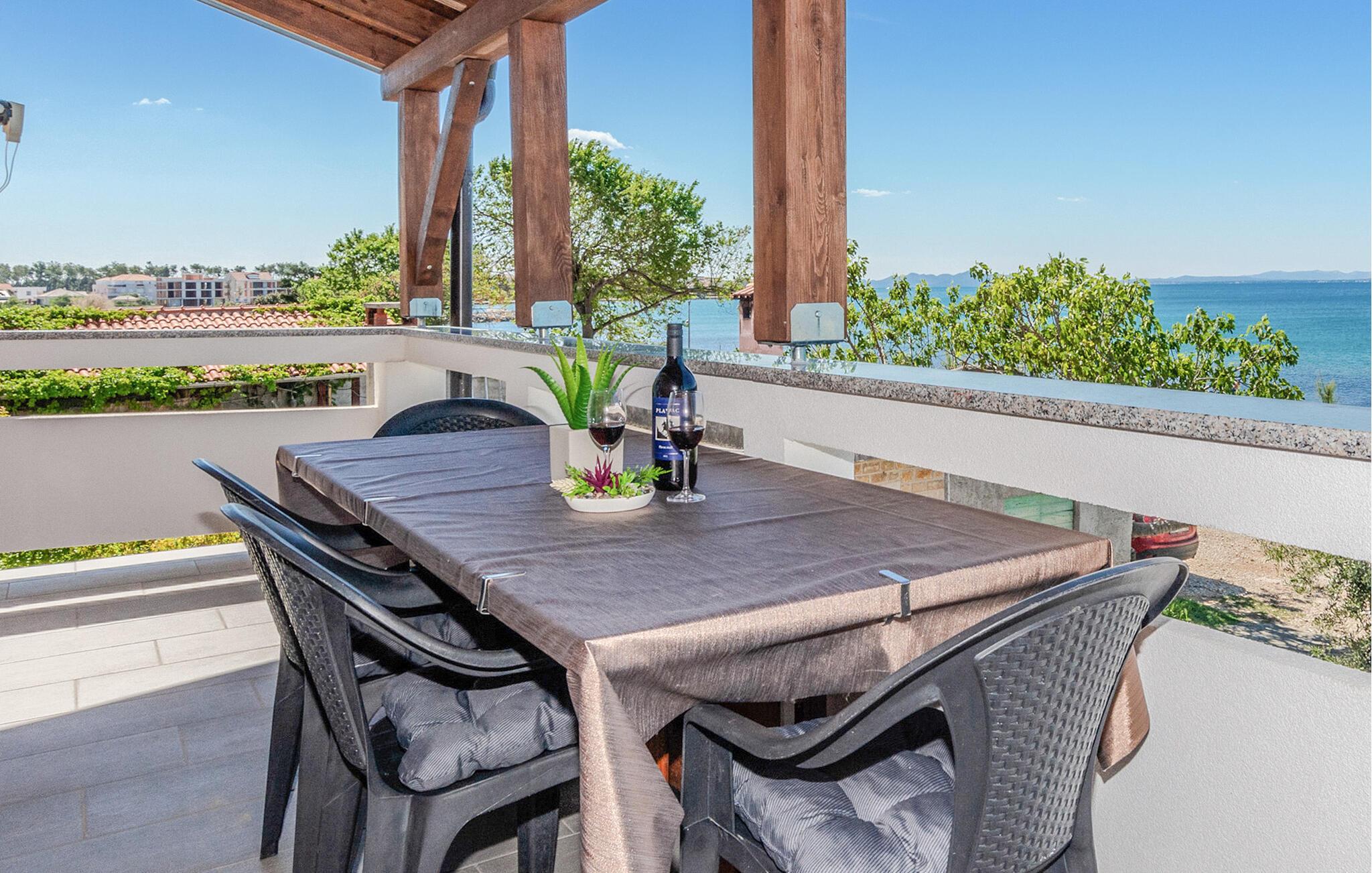 Tag den lille familie under armen og rejs til Privlaka, hvor der få skridt fra vandet venter jer en skøn base i denne fine lejlighed. I kommer til at bo på første sal i et feriehus, og udsigten over havet er virkelig fantastisk. Boligen er nydeligt indrettet med alle de faciliteter, I behøver for at kunne slappe af før og efter dagens udflugter tæt på havet.