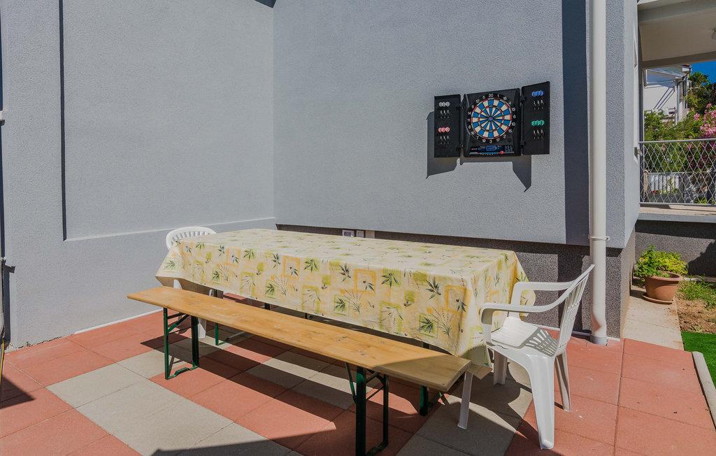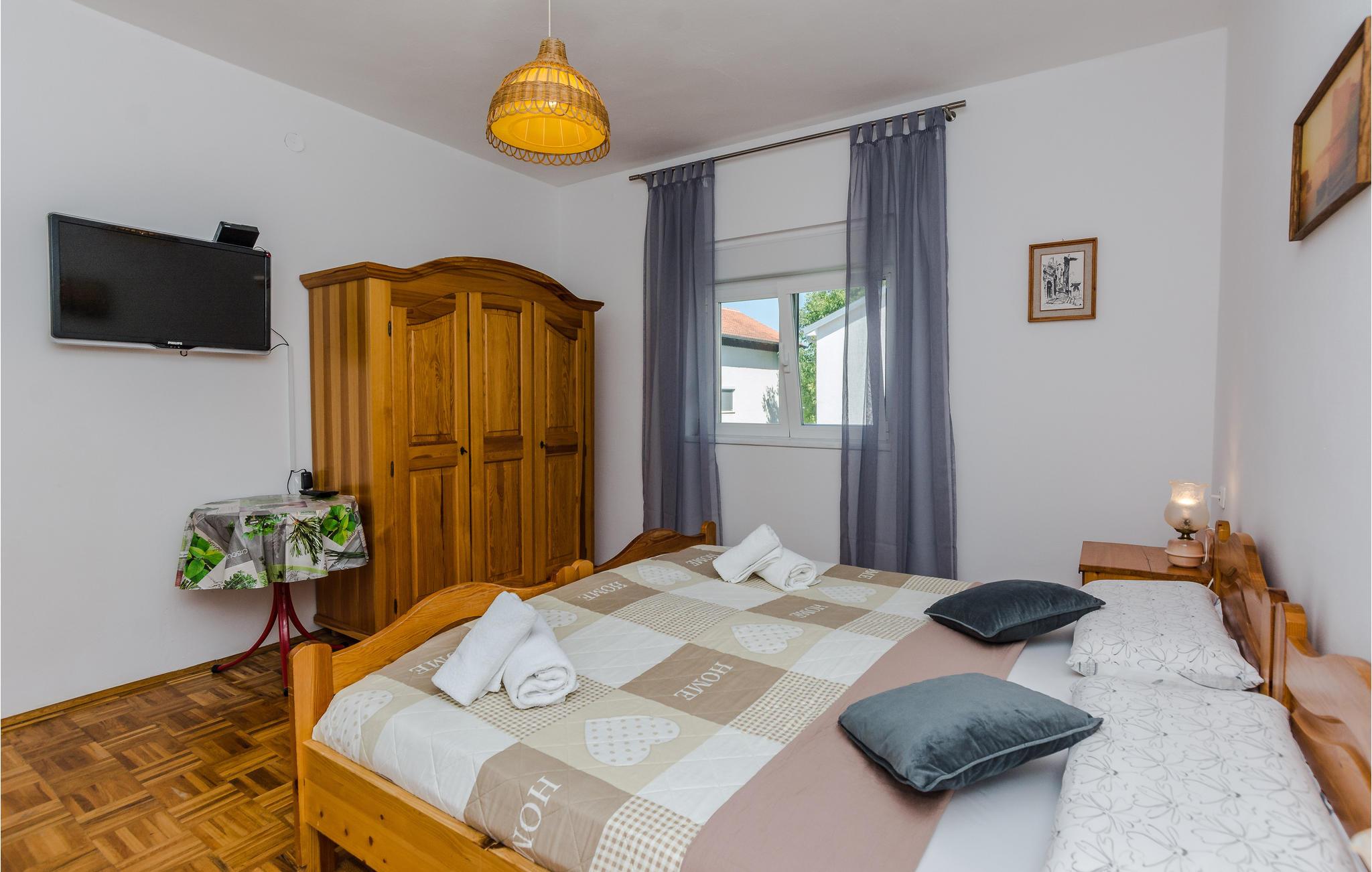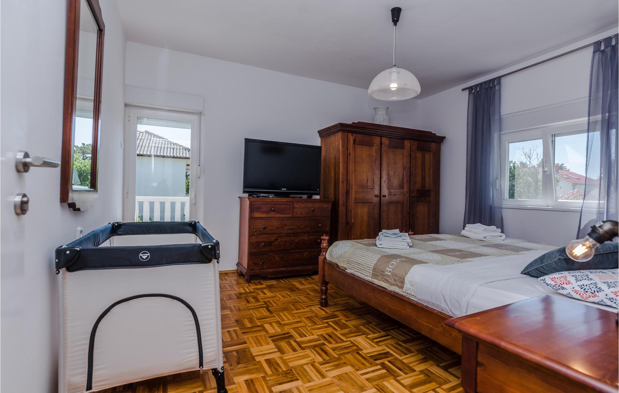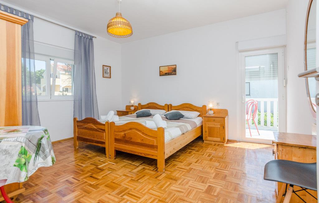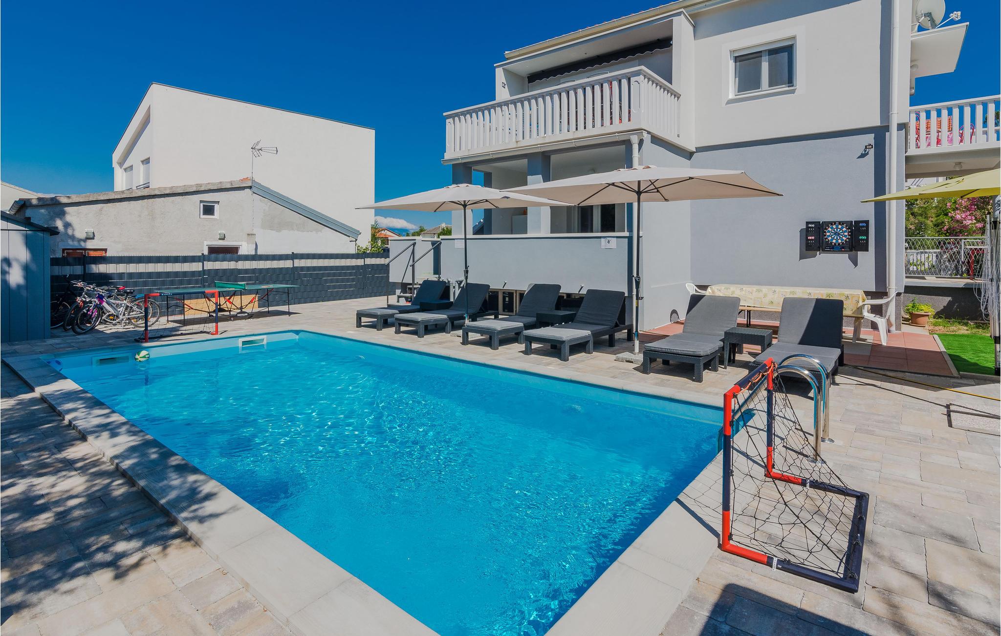 Familievenlig lejlighed med fælles pool og legeplads. Kom til Sabunike med din familie og tilbring en uforglemmelig ferie nær stranden. Lejligheden på 1. sal i et familiehus byder velkommen med en hyggelig atmosfære. Her kan du føle dig godt tilpas og slappe af, mens du laver mad og leger. Start dine feriedage med morgenmad på balkonen og gå derefter ned til den fælles pool. Bad og plaske rundt i poolen med dine børn eller se de små boltre sig på legeredskaberne. Som feriegæst har du adgang til et fitnesscenter i kælderen og kan fortsætte dit fitnessprogram på ferien. I gården ved siden af poolen er der et ølbord med bænke og en fælles muret grill, hvor I kan afslutte aftenen. Til underholdning er der også mål for vandpolo, dart og bordtennis. Sabunike er et lille, roligt og attraktivt turistmål velegnet til familier med små børn. Udforsk de mange lavvandede bugter og sandstrande i Sabunike. Du kan også bo på den velkendte Queen's Beach med en vidunderlig udsigt over strandene i Nin og Velebit. Især aktive gæster og atleter kan slippe dampen her. I den lille by Nin kan du lave en mudderkur, eller du kan besøge byen Zadar, 20 km væk, som byder på mange underholdnings- og shoppingmuligheder og et fantastisk sted at se solnedgangen. Hav det sjovt!