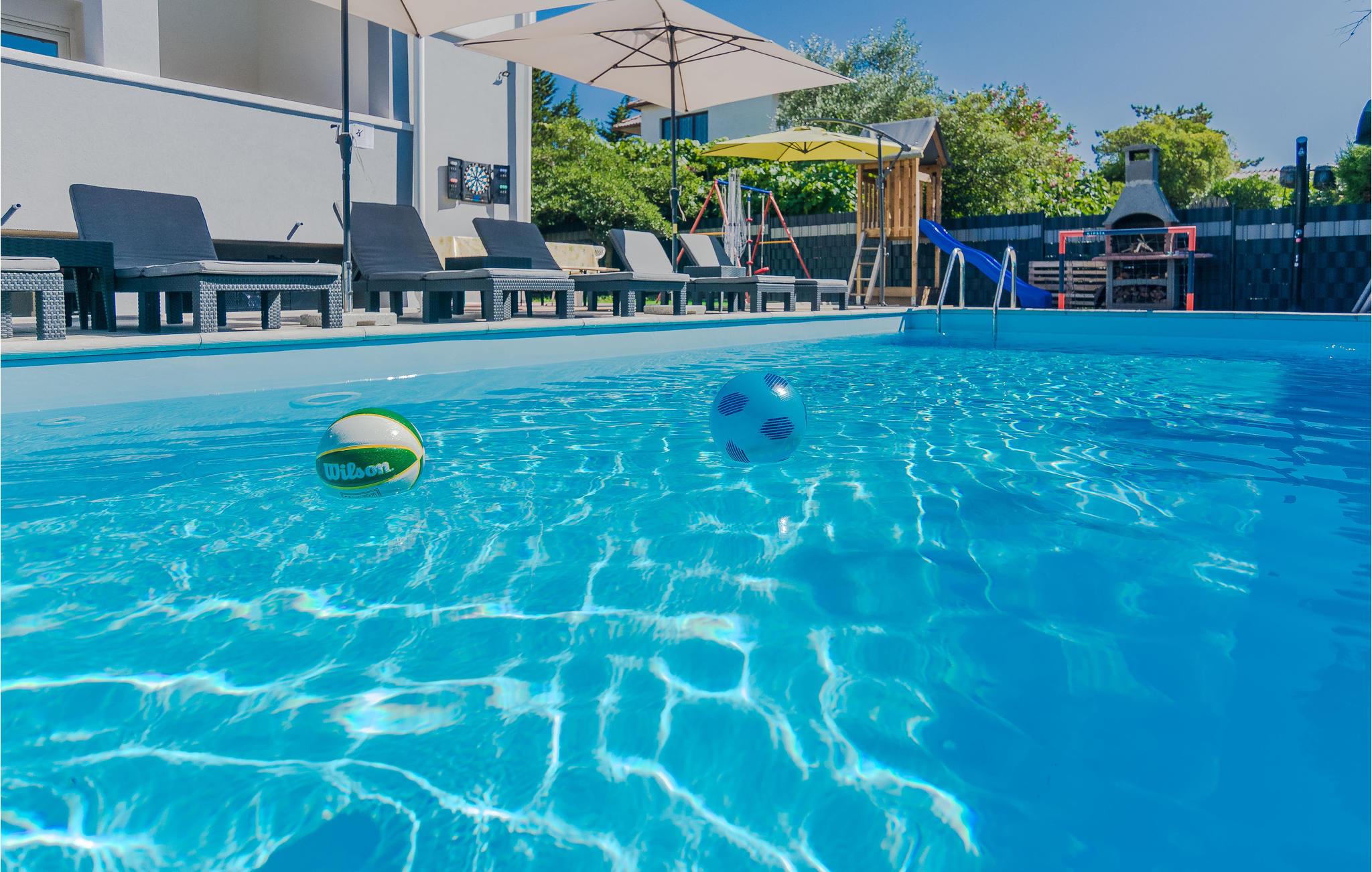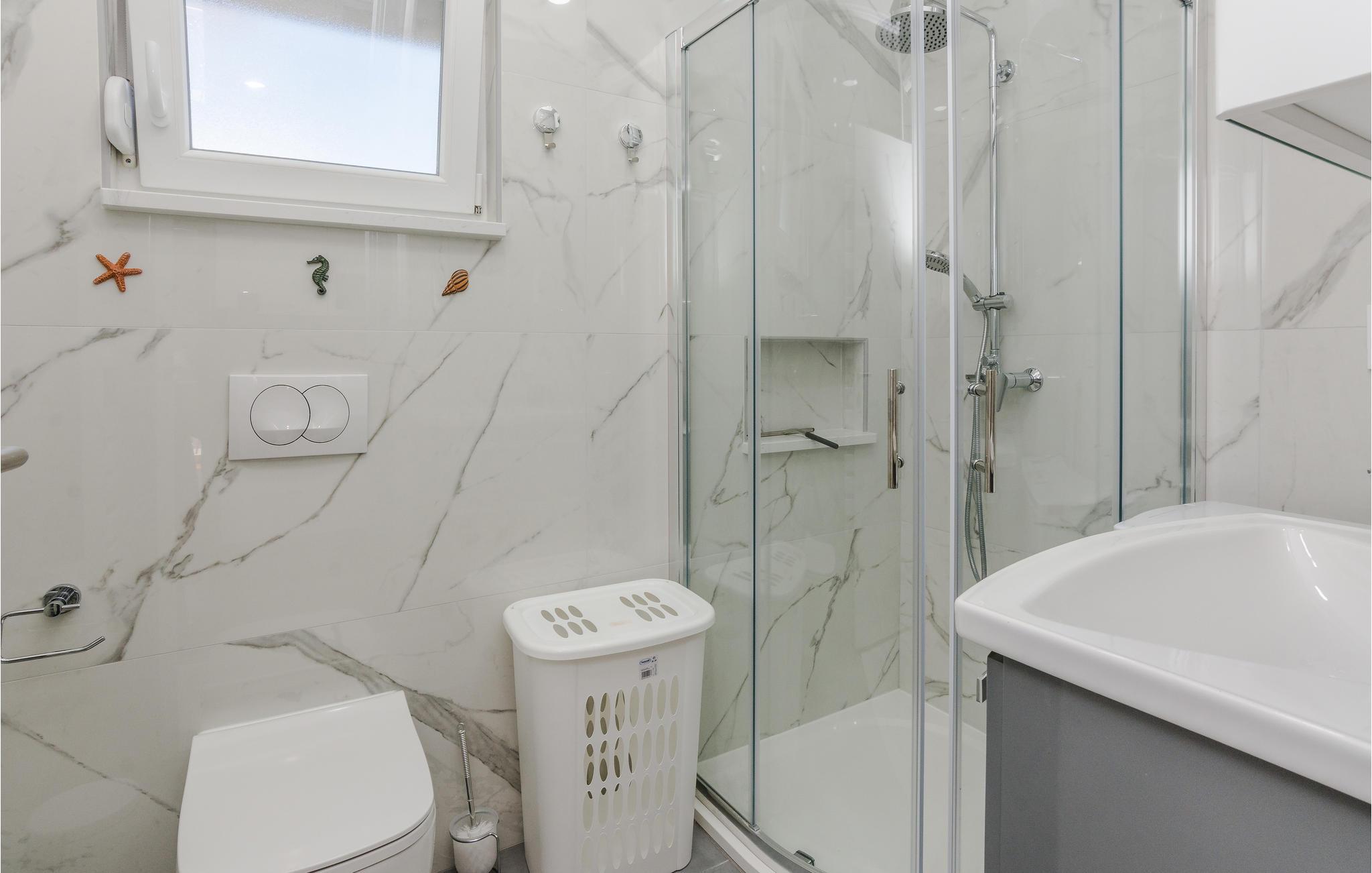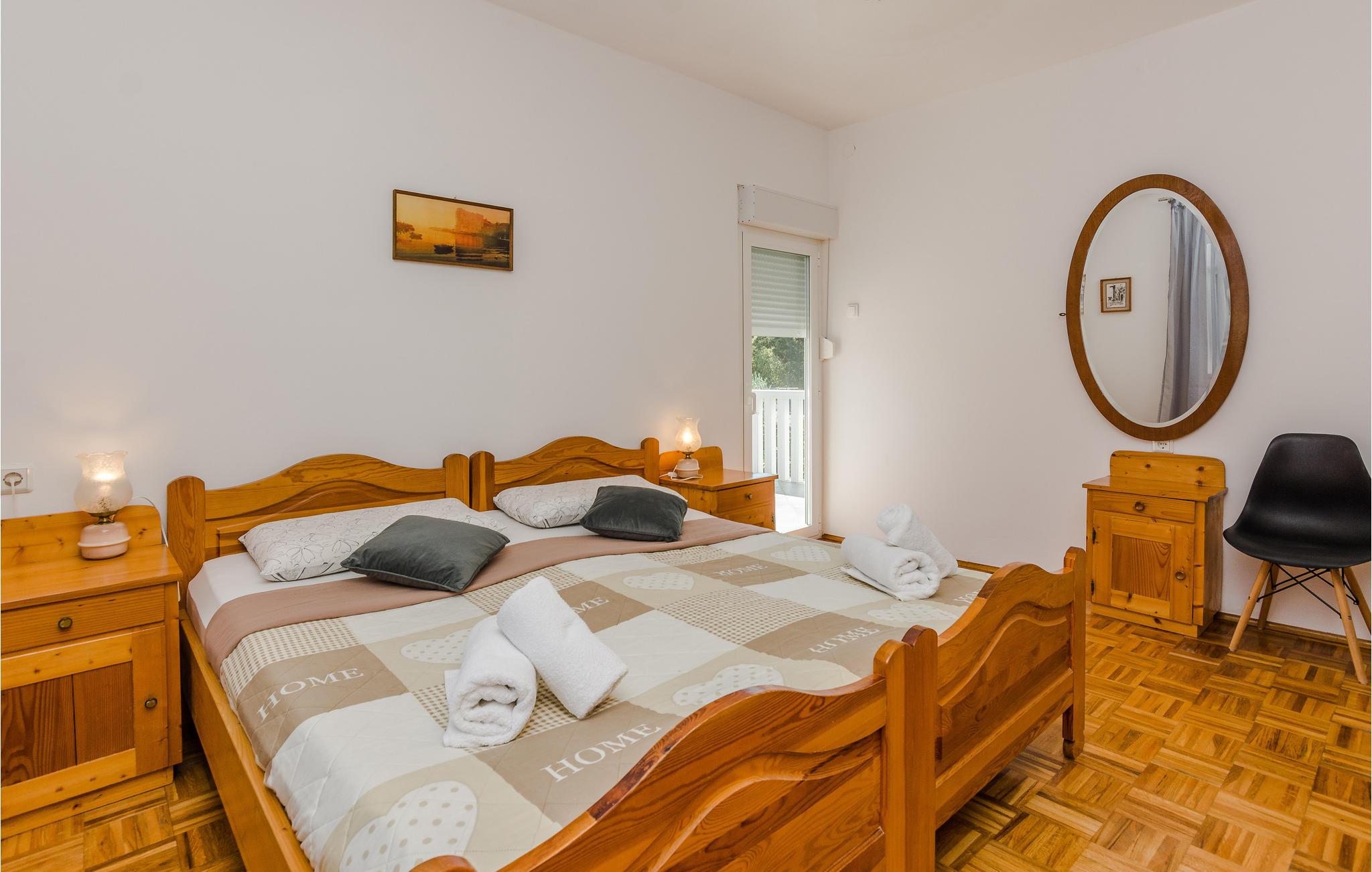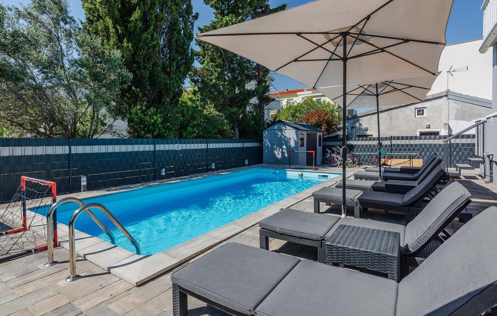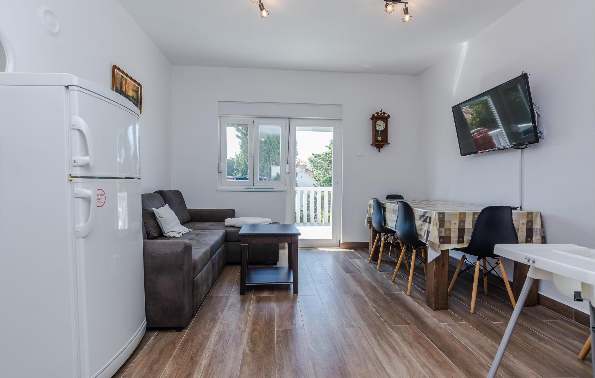 Familievenlig lejlighed med fælles pool og legeplads. Kom til Sabunike med din familie og tilbring en uforglemmelig ferie nær stranden. Lejligheden på 1. sal i et familiehus byder velkommen med en hyggelig atmosfære. Her kan du føle dig godt tilpas og slappe af, mens du laver mad og leger. Start dine feriedage med morgenmad på balkonen og gå derefter ned til den fælles pool. Bad og plaske rundt i poolen med dine børn eller se de små boltre sig på legeredskaberne. Som feriegæst har du adgang til et fitnesscenter i kælderen og kan fortsætte dit fitnessprogram på ferien. I gården ved siden af poolen er der et ølbord med bænke og en fælles muret grill, hvor I kan afslutte aftenen. Til underholdning er der også mål for vandpolo, dart og bordtennis. Sabunike er et lille, roligt og attraktivt turistmål velegnet til familier med små børn. Udforsk de mange lavvandede bugter og sandstrande i Sabunike. Du kan også bo på den velkendte Queen's Beach med en vidunderlig udsigt over strandene i Nin og Velebit. Især aktive gæster og atleter kan slippe dampen her. I den lille by Nin kan du lave en mudderkur, eller du kan besøge byen Zadar, 20 km væk, som byder på mange underholdnings- og shoppingmuligheder og et fantastisk sted at se solnedgangen. Hav det sjovt!