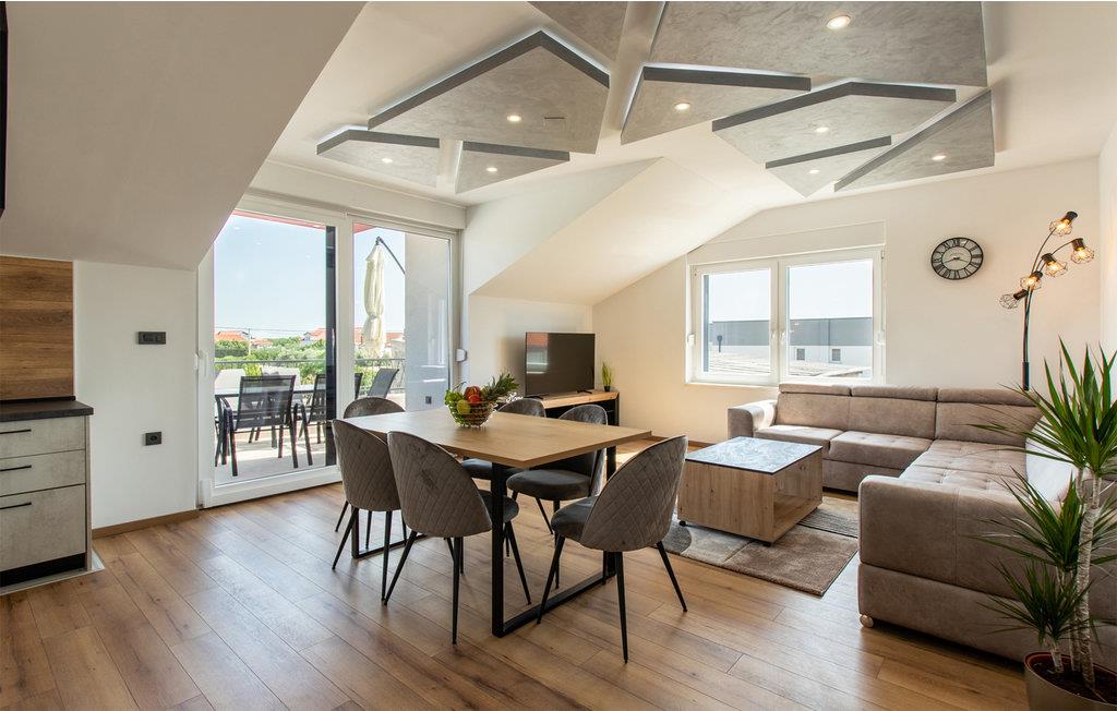 denne komfortable ferielejlighed med pooladgang bliver din ferie en fornøjelse. Velkommen til lejligheden, der byder dig velkommen ikke langt fra havet. De moderne og smagfuldt indrettede værelser gør lejligheden til det ideelle sted for en afslappende ferie, hvor du kan slappe af i hyggelige omgivelser. Nyd måltider med en smuk udsigt over det fri. Efter en travl dag kan du slå dig ned i den behagelige sofa og gennemgå dine oplevelser. Tilbered en lækker morgenmad og spis på terrassen, morgensolen giver lyst til at tage på spændende udflugter. På poolterrassen kan du nyde lange solbade og forfriske dig selv efter behag. Besøg den historiske by Nin, som ligger omkring 5 km væk. Udover badestrandene i Vrsi kan du også udforske dem i Privlaka, hvor der er flere sandstrande, som er særligt velegnede til børn. Nyd din ferie i dette attraktive feriehus.