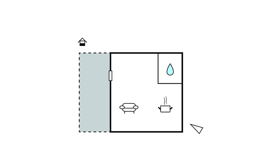 Komb. spisestue/køkken 18m2 - 2 Sovepladser. (Dobbeltseng(e)).