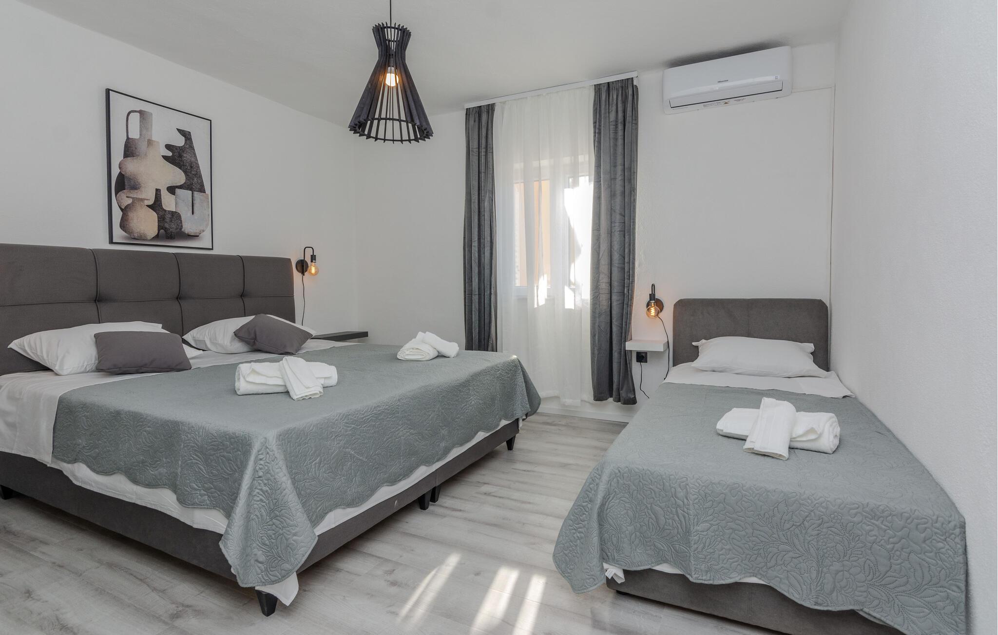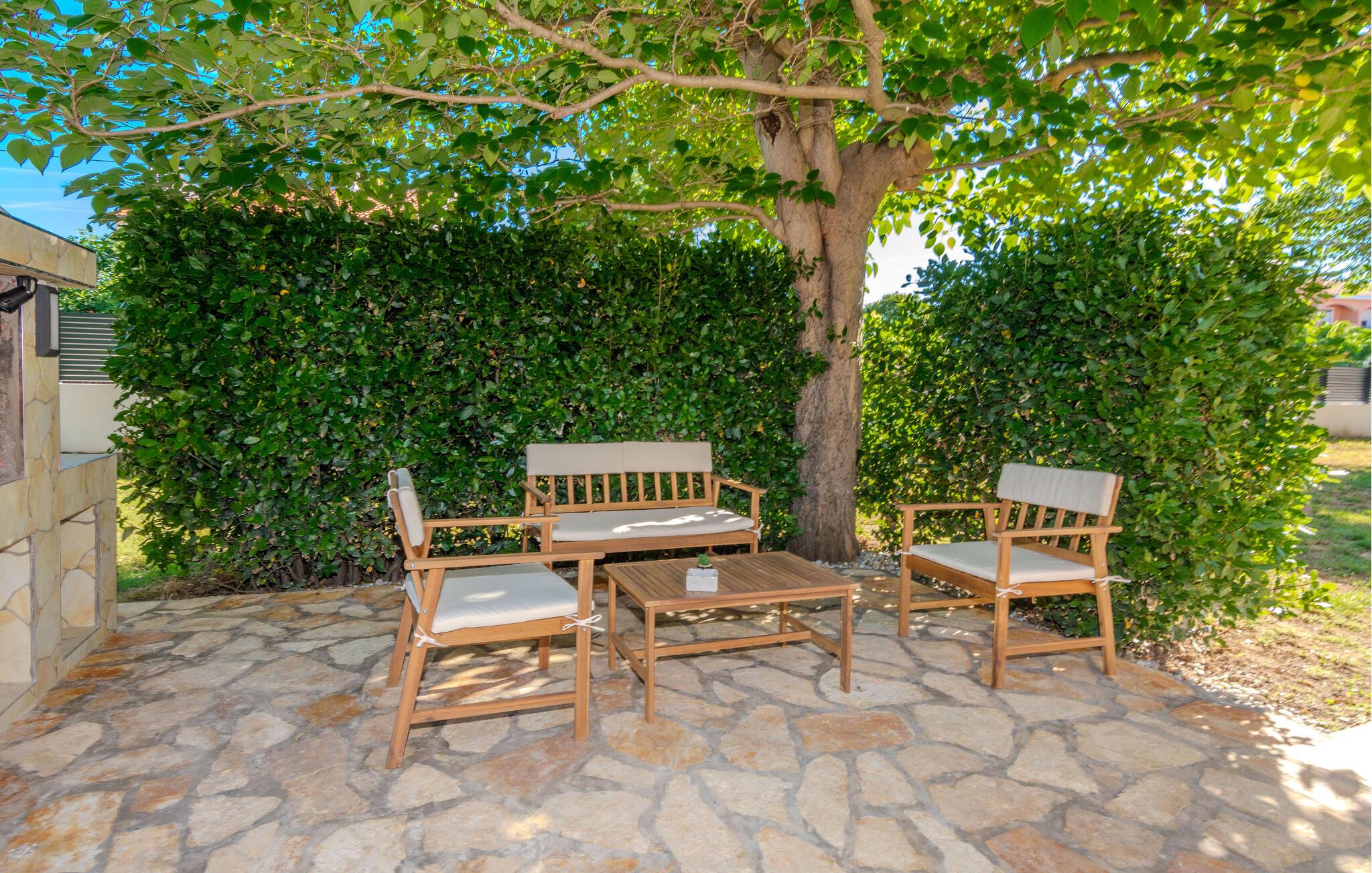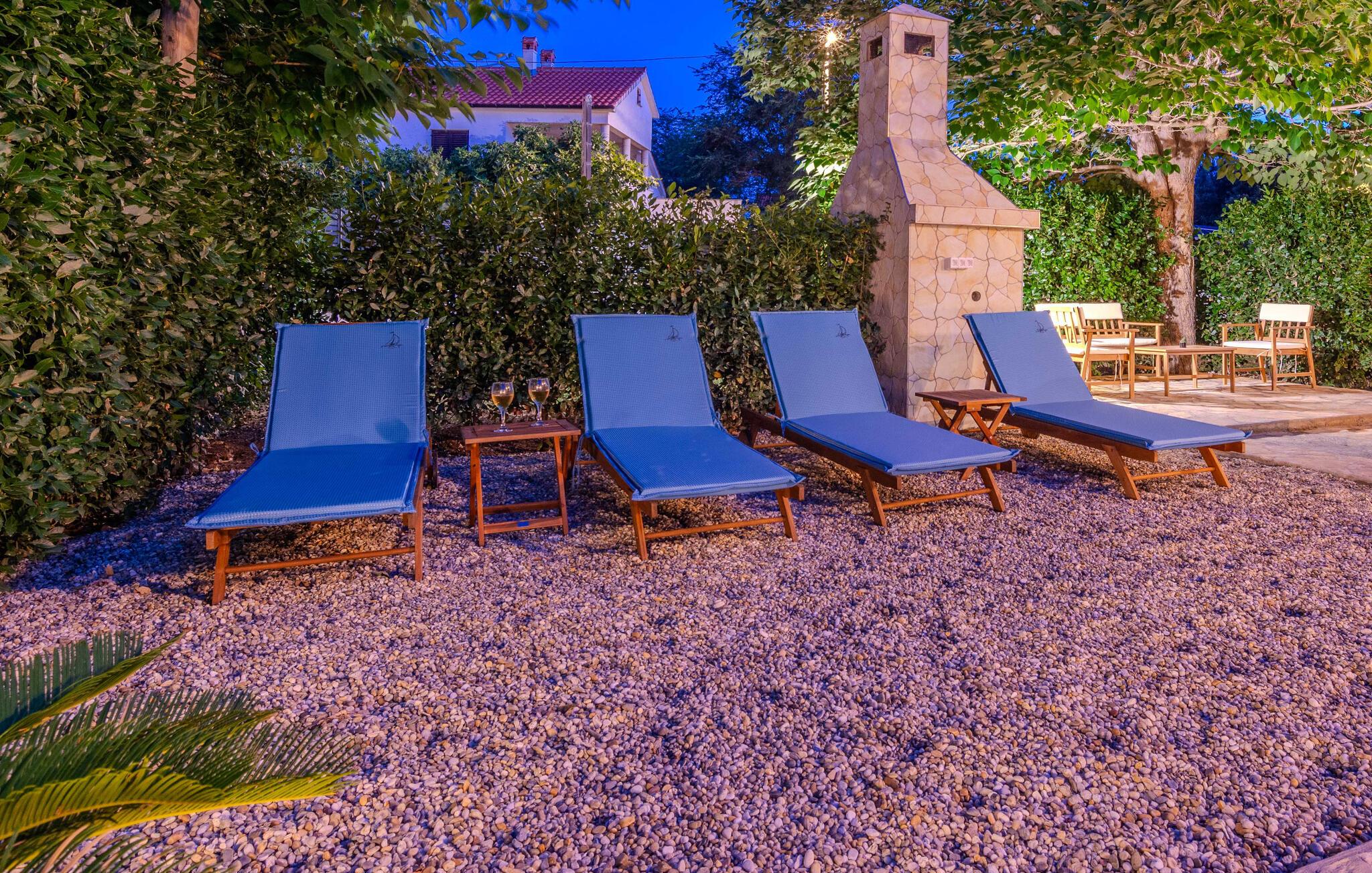 Hvis I er på udkig efter en rummelig bolig til årets ferie med den udvidede familie, og går I ikke af vejen for høj komfort, sjov og privatliv, er denne store villa i Nin det helt rigtige valg for jer. Huset er flot og smagfuldt indrettet med flere opholdsområder og køkkener, og soveværelserne har eget badeværelse, så I kan trække jer lidt tilbage, når behovet måtte opstå. Stueetagen og overetagen er forbundet via en udvendig trappe.