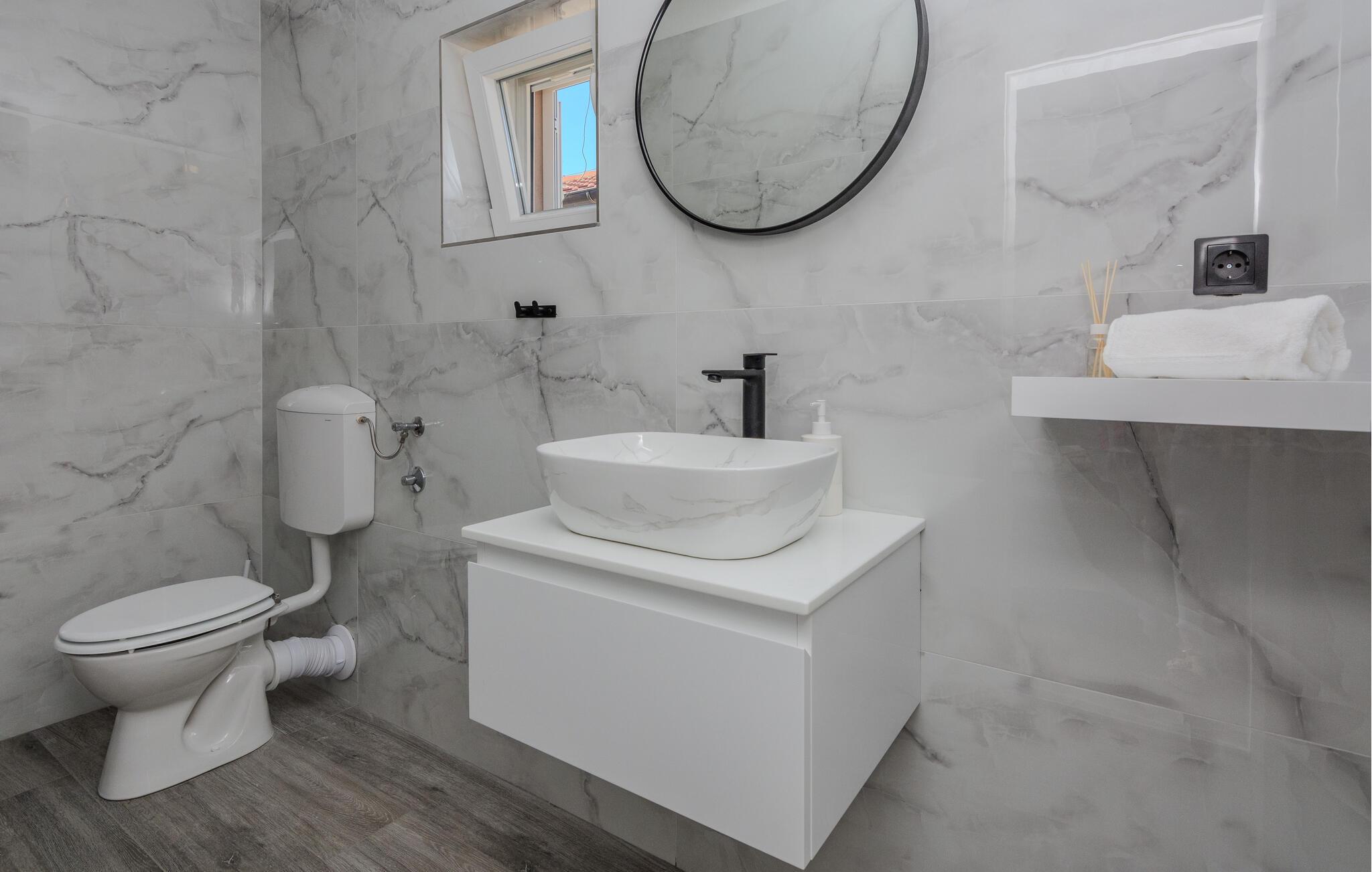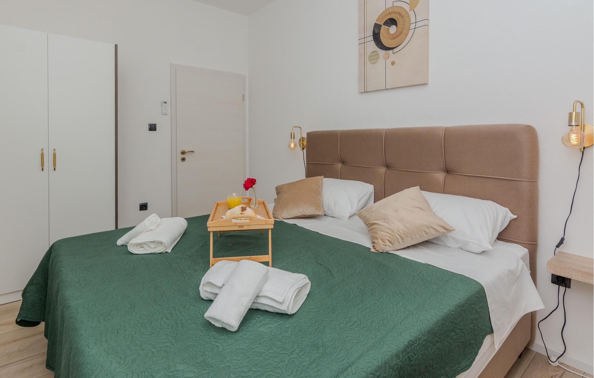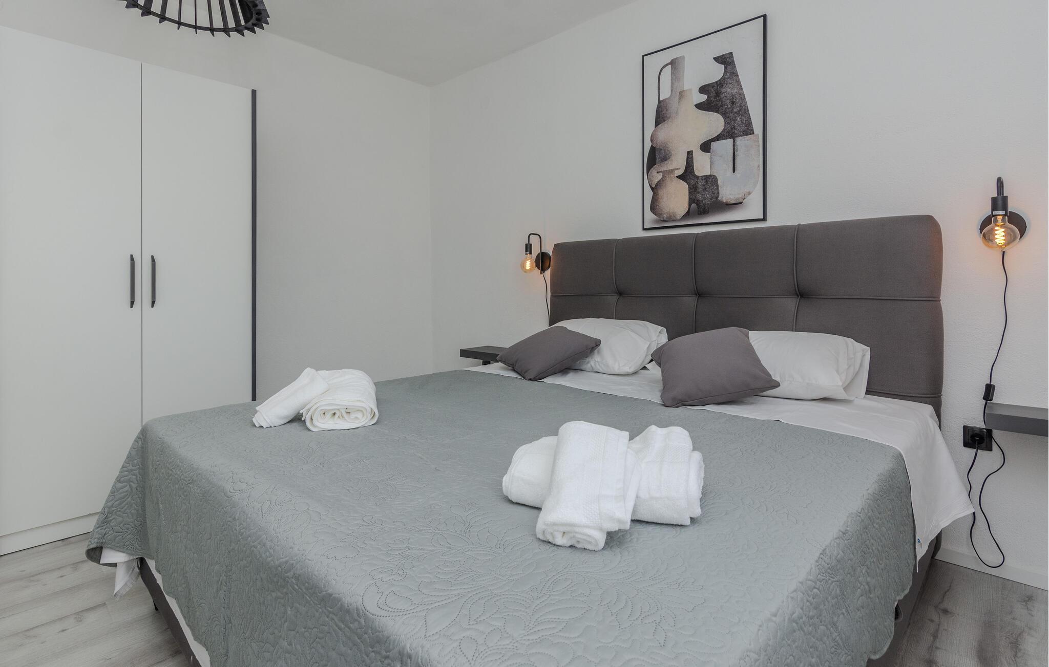 Hvis I er på udkig efter en rummelig bolig til årets ferie med den udvidede familie, og går I ikke af vejen for høj komfort, sjov og privatliv, er denne store villa i Nin det helt rigtige valg for jer. Huset er flot og smagfuldt indrettet med flere opholdsområder og køkkener, og soveværelserne har eget badeværelse, så I kan trække jer lidt tilbage, når behovet måtte opstå. Stueetagen og overetagen er forbundet via en udvendig trappe.