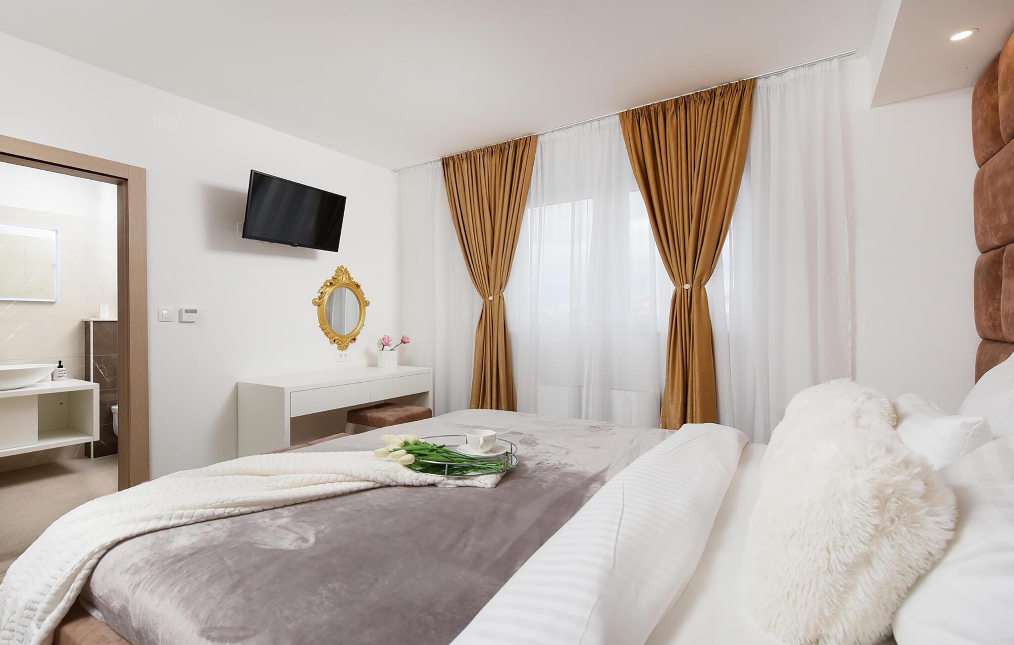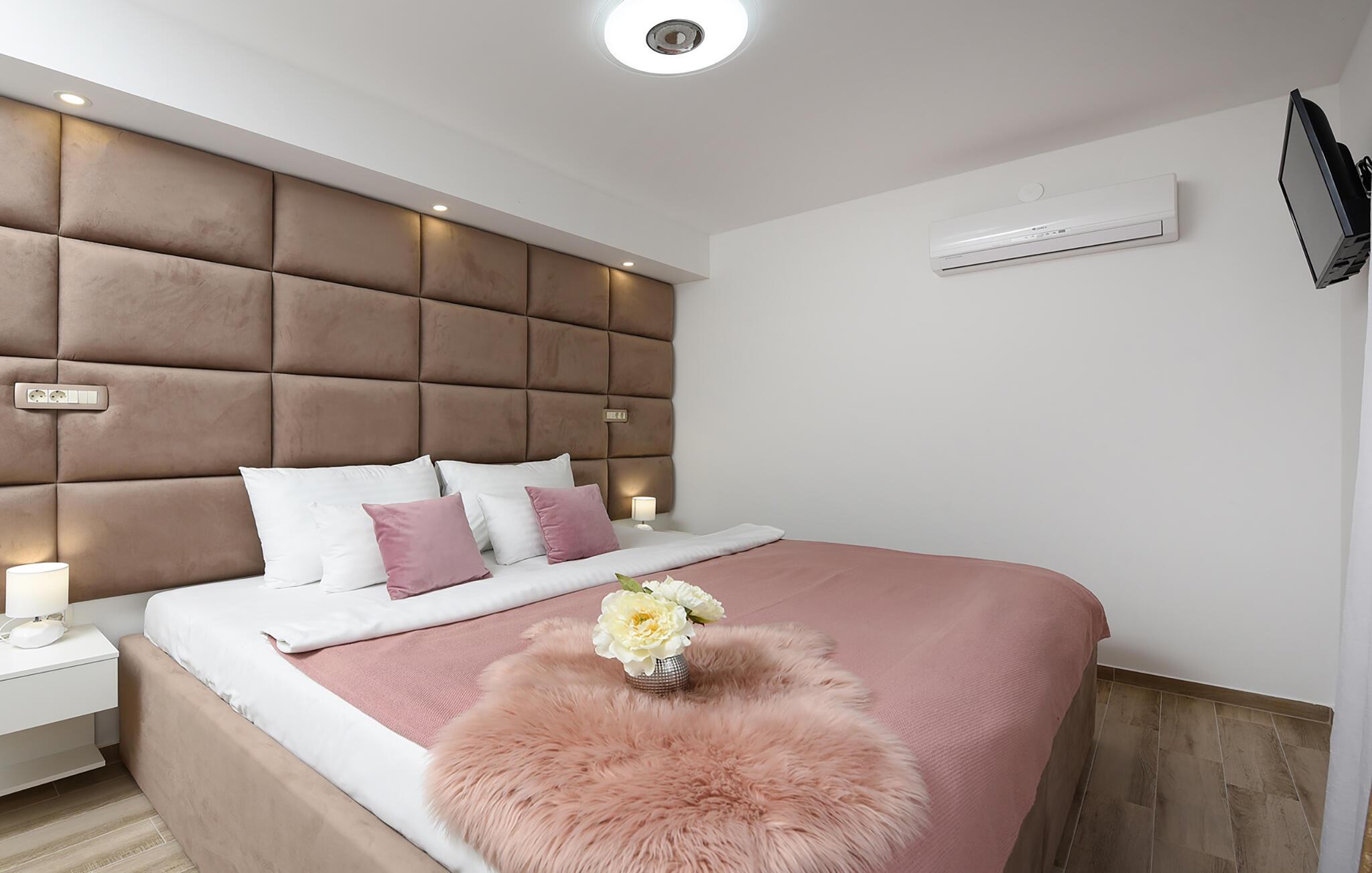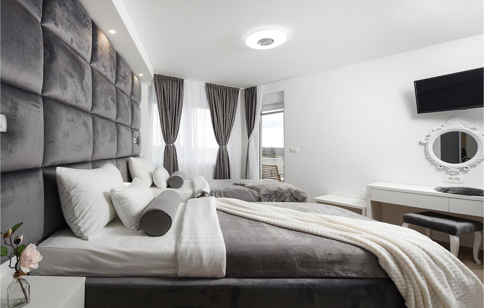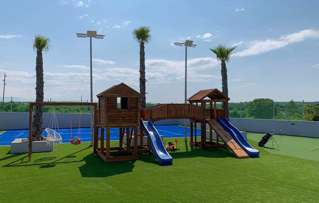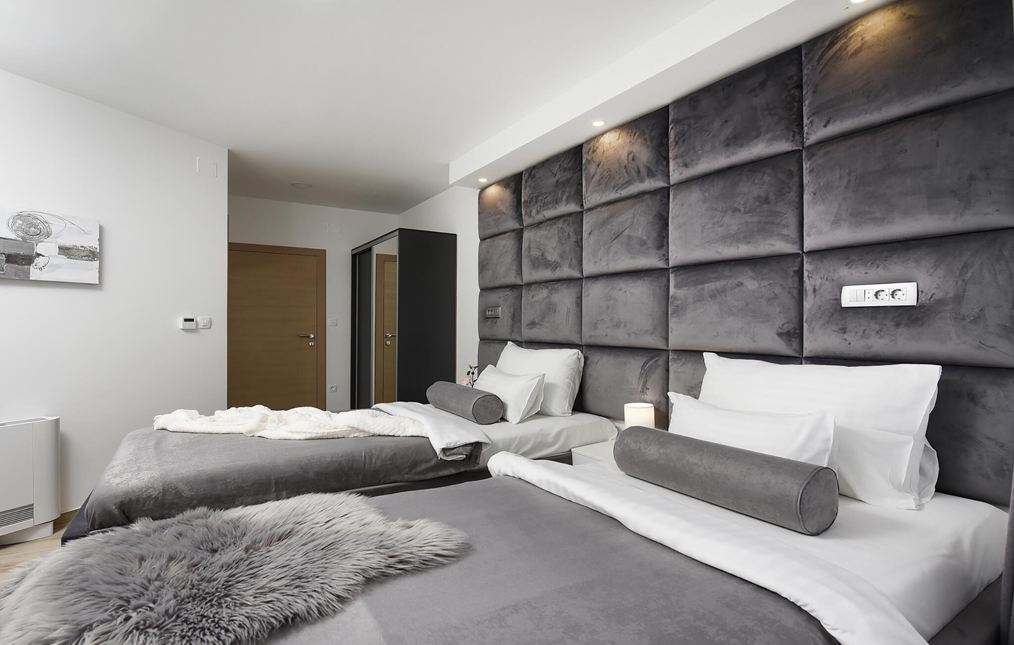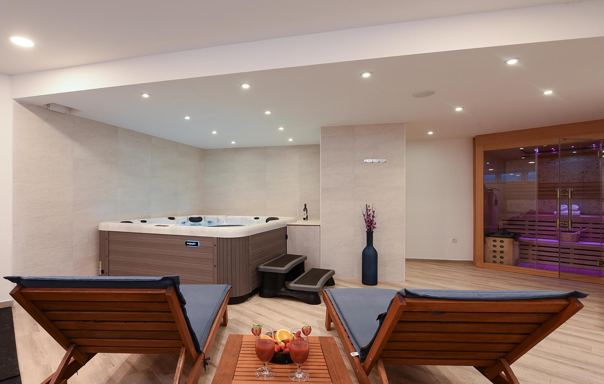 Tilbring en drømmeferie i dette luksuriøse feriehus med pool, spabad og sauna nær havet. Denne moderne villa lover en førsteklasses ferie. Elegante møbler, et komfortabelt sofaområde overfor tv'et og et fuldt udstyret køkken skaber en atmosfære, hvor I hurtigt kan slappe af og genoplade. For en forfriskende dukkert kan I hoppe i spabadet, og dem, der er i humør til lidt motion, kan spille et spil billard eller træne i fitnessrummet. Den store grund indbyder til motion eller afslapning når som helst. Svøm baner i poolen som det første om morgenen, eller hav det sjovt med at spille vandpolo. Bagefter kan I solbade, mens jeres børn rutsjer og leger i legehuset. Spil badminton, volleyball, fodbold eller tennis, afhængigt af hvad I har lyst til. Cykler er også tilgængelige. Tag en tur til sandstranden, måske endda på cykel, hvor I kan svømme eller blot nyde solen. Tag en tur til den nærliggende by Zadar og oplev dens imponerende gamle bydel med romerske og venetianske spor. Om aftenen kan I nyde det unikke skue af Havorglet og "Hilsen til Solen" direkte på havnepromenaden. Udforsk Kožinos charmerende omgivelser med dens idylliske kyststier og maleriske udsigter.