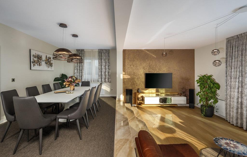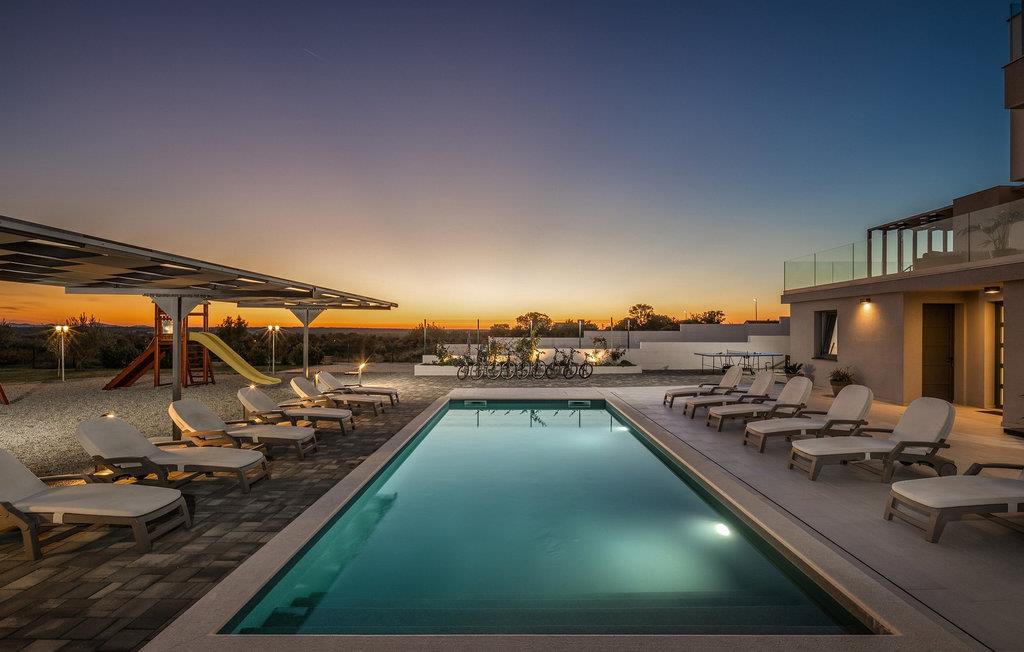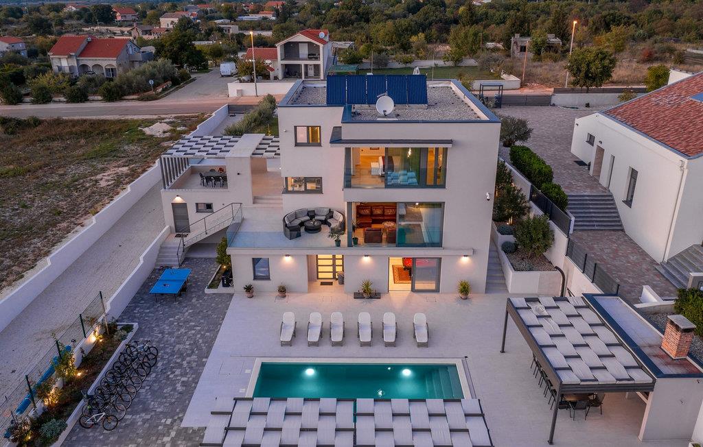 Nyd fred og ro i denne stilfulde villa med en fantastisk have omgivet af betagende natur. Fordyb jer i den afslappede atmosfære i Villa Orijana i Poljica Brig, hvor moderne elegance og minimalistisk design sikrer en eksklusiv ferieoplevelse. Udforsk villaen, som er fordelt på flere etager. Det fuldt udstyrede køkken, den lyse spiseplads og den hyggelige stue skaber et indbydende rum til fælles øjeblikke. Efter en aktiv dag kan I slappe af i den luksuriøse sauna eller afslutte aftenen med billard og bordtennis i spillelokalet. Den opvarmede pool og den store have med olivenlund lægger op til hyggestunder, mens børnene kan boltre sig på legepladsen. Slap af på den storslåede tagterrasse og lad jeres blik vandre over landskabet. Udforsk skatterne omkring Poljica Brig. Villaen er den perfekte base for at opdage den rige historie og natur i Zadar-regionen. Nyd cykelture til de nærliggende byer Nin, Kroatiens ældste kongelige by eller nyd de uberørte strande i Vrsi. Byen Zadar med sine kulturelle højdepunkter og fremragende restauranter ligger kun få kilometer væk og tilbyder et varieret program for enhver smag. Bemærk: Poolopvarmning er tilgængelig mod et ekstra gebyr, der betales på stedet.