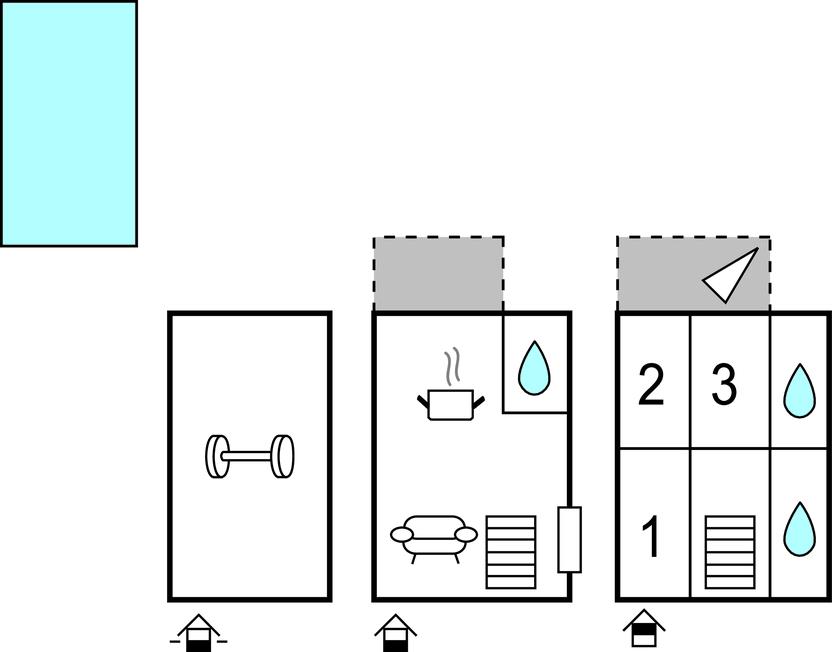 Badeværelse 6m2 (nr. 3) - WC. Varmt og koldt vand. Bruser