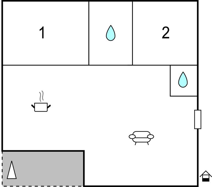 Badeværelse 6m2 (nr. 1) - WC. Varmt og koldt vand. Bruser