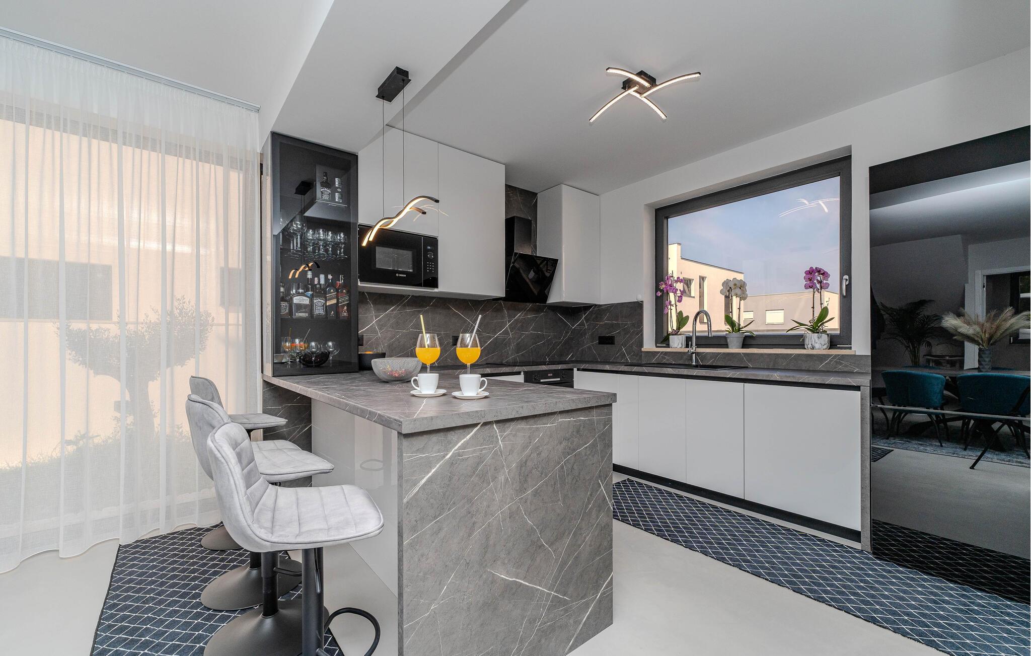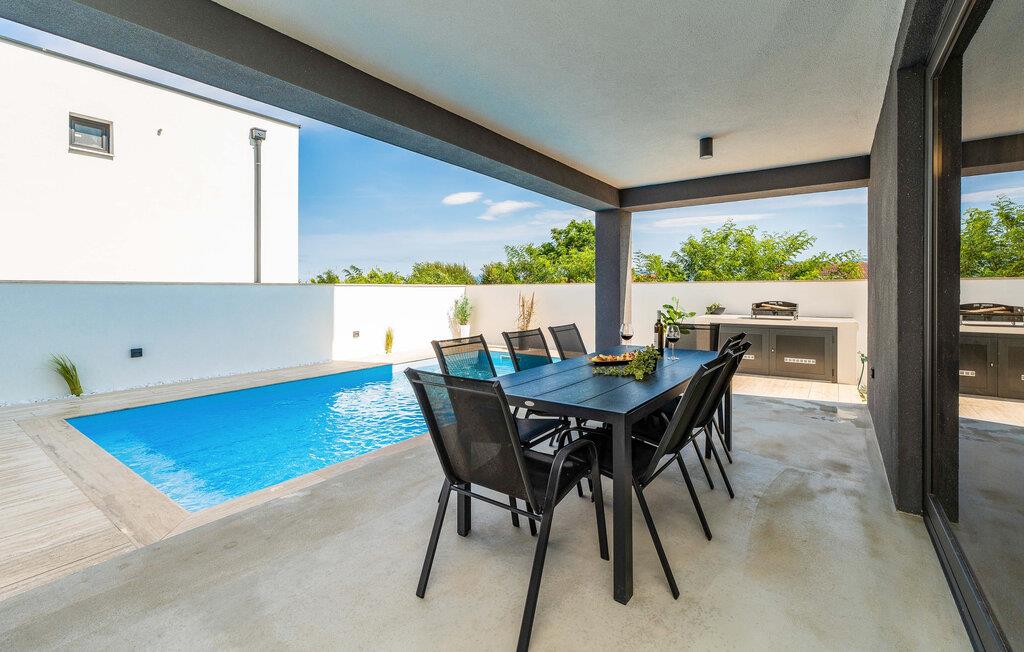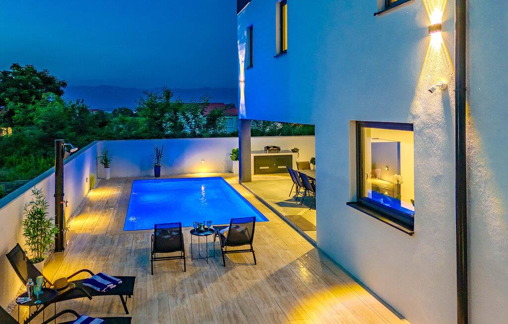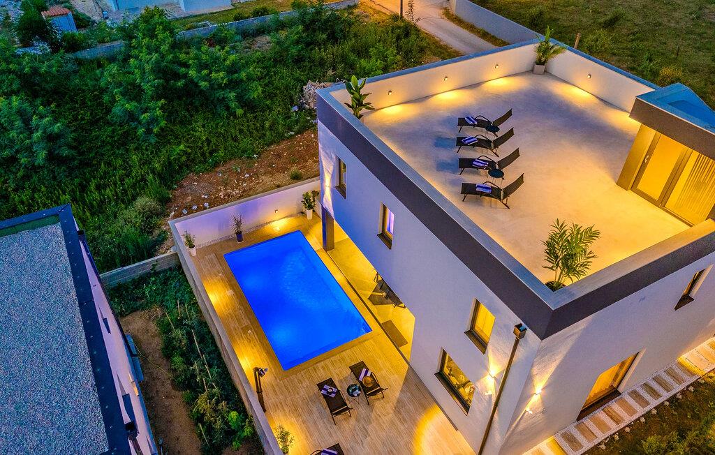 Forkæl jer selv med luksus og afslapning i dette skønne feriehus med havudsigt og pool. Velkommen til jeres rummelige feriehus i Privlaka, hvor moderne design møder indbydende komfort. Interiøret vil glæde jer med nøje udvalgte møbler og individuelle farveaccenter, der giver hvert af de mange soveværelser et særligt præg. Det åbne rumskoncept skaber en harmonisk atmosfære, der lægger op til at blive hængende og slappe af. Nyd forfriskende dage ved poolen eller tilbring hyggelige timer på den overdækkede terrasse i haven. Familier vil sætte pris på legepladsen i haven, mens voksne vil nyde tagterrassen med en vidunderlig udsigt over havet og de omkringliggende øer og solens stråler. Privlaka-området tilbyder jer et væld af muligheder for eventyr og afslapning. De nærliggende strande er optimale til en dag fuld af sol og vandaktiviteter. Udforsk den charmerende kystlinje med dens skjulte bugter og klare vand perfekt til svømning og snorkling. For en kulturel udflugt kan I besøge den historiske by Zadar, hvor I kan udforske gamle kirker, det berømte Havorgel og den livlige gamle bydel. Her er noget for enhver smag.