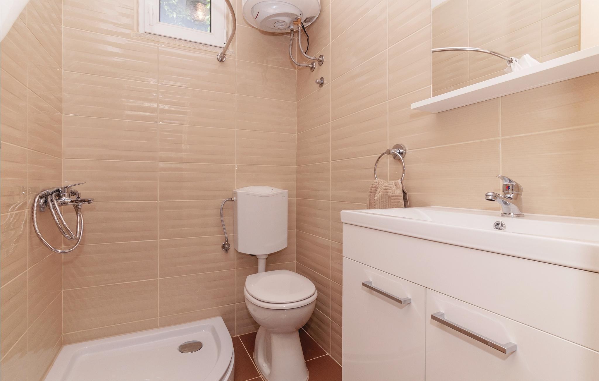 Badeværelse (nr. 1) - WC. Varmt og koldt vand. Bruser