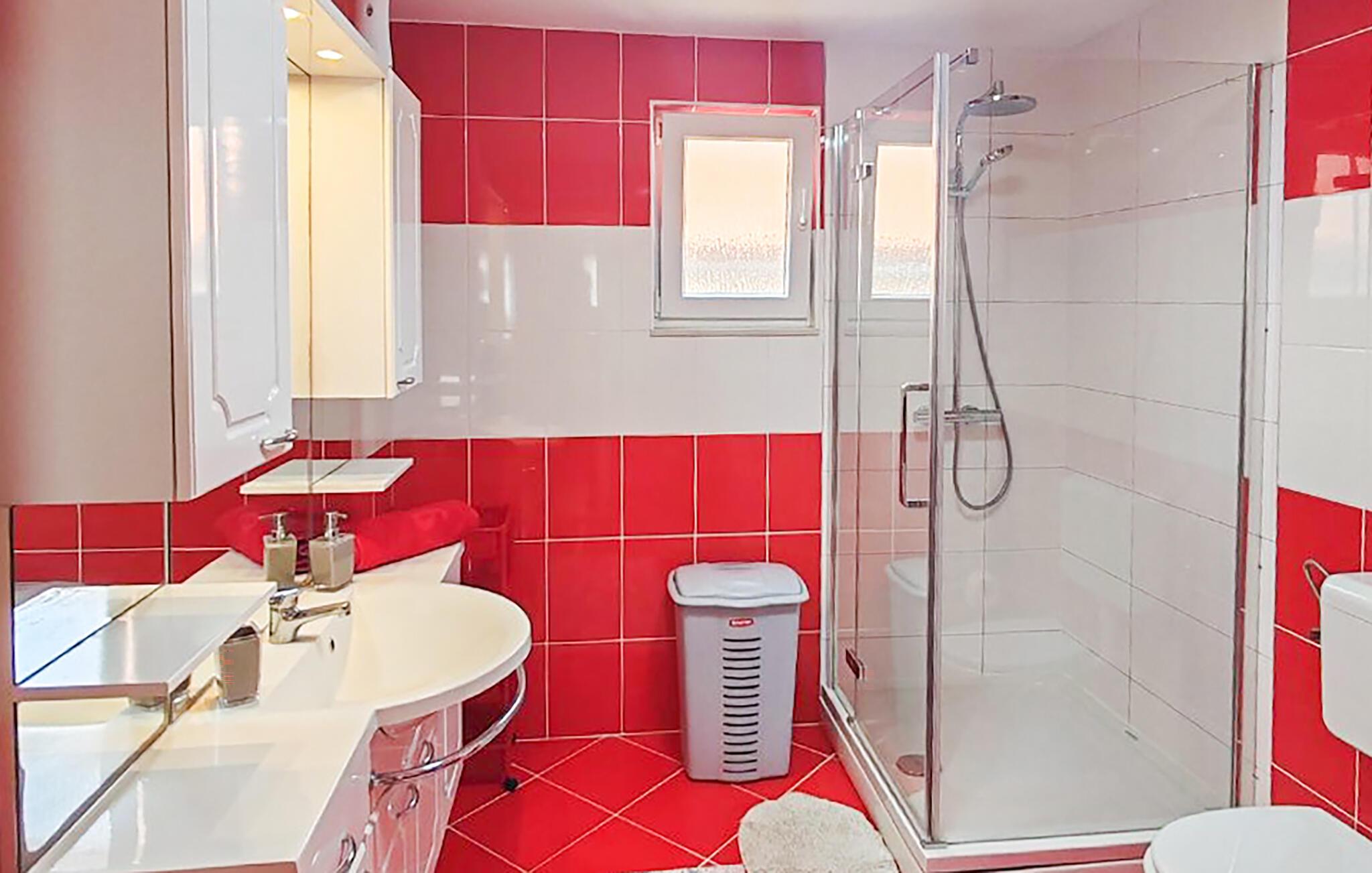 Badeværelse (nr. 1) - WC. Varmt og koldt vand. Bruser