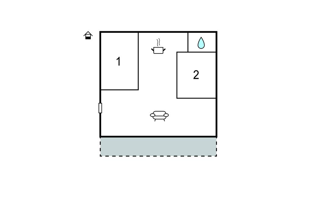 Opholdsstue/køkken 10m2 - 1 Soveplads. (Sofa, madras eller lignende).