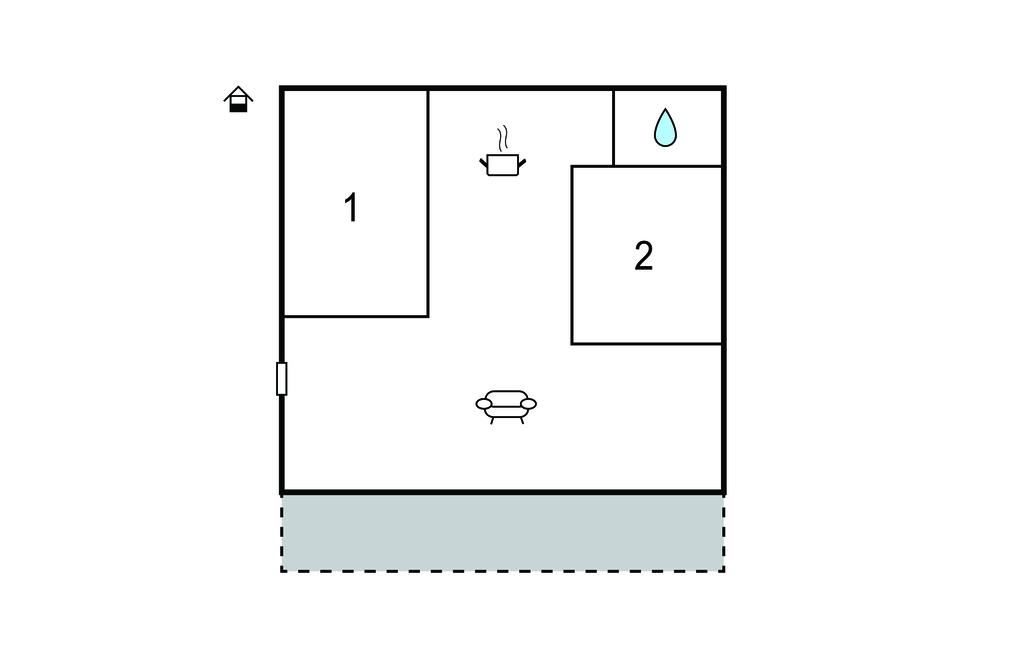 Opholdsstue/køkken 10m2 - 1 Soveplads. (Sofa, madras eller lignende).