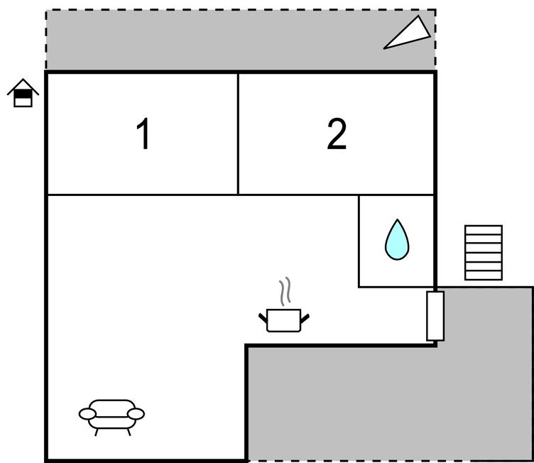 Opholdsstue/køkken - 2 Sovepladser. (Sofa, madras eller lignende).