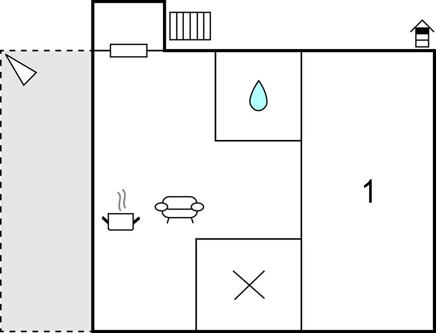 Soveværelse (nr. 1) - 2 Sovepladser. (Enkeltseng(e)). 2 Sovepladser. (Dobbeltseng(e)).