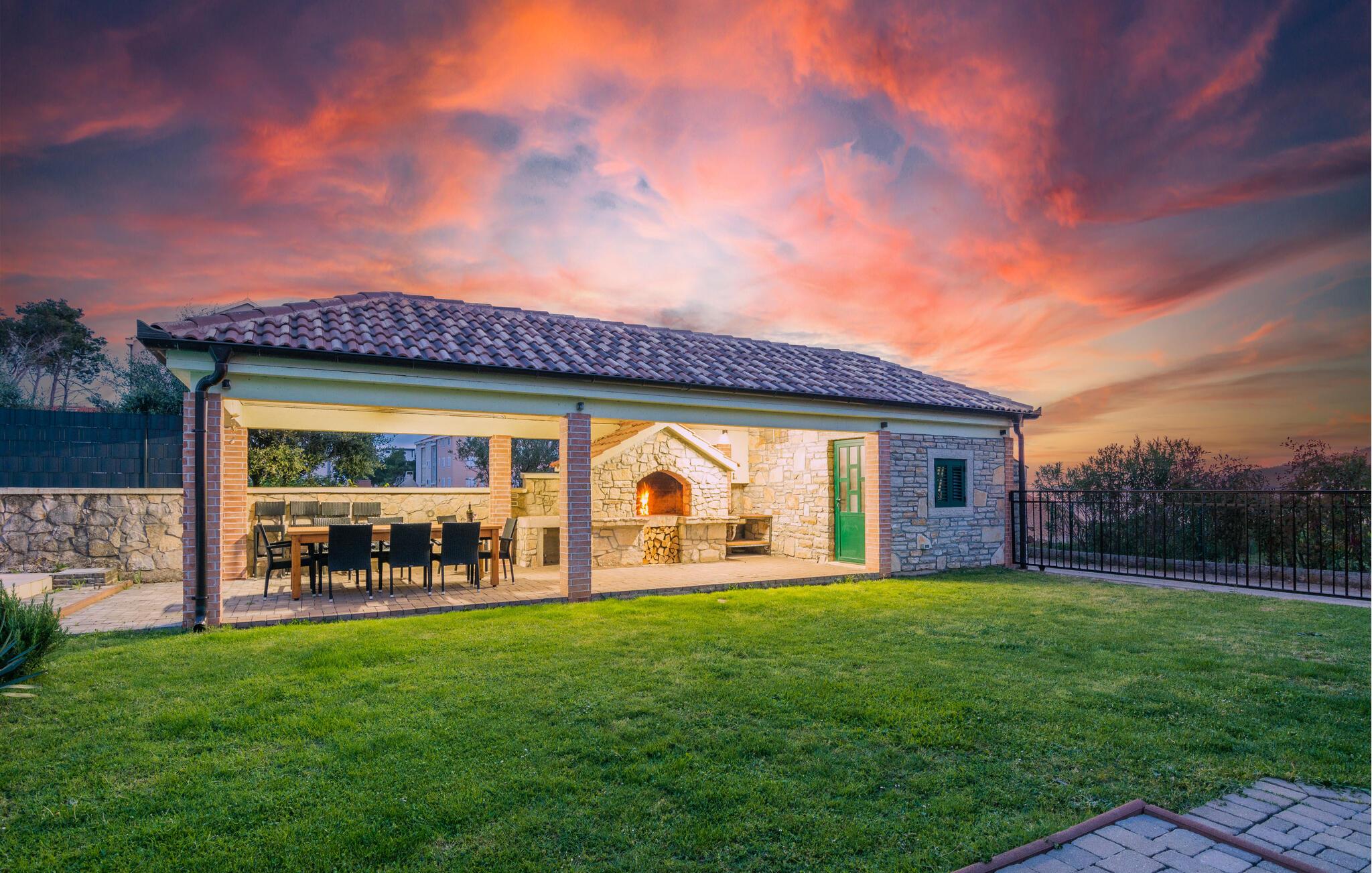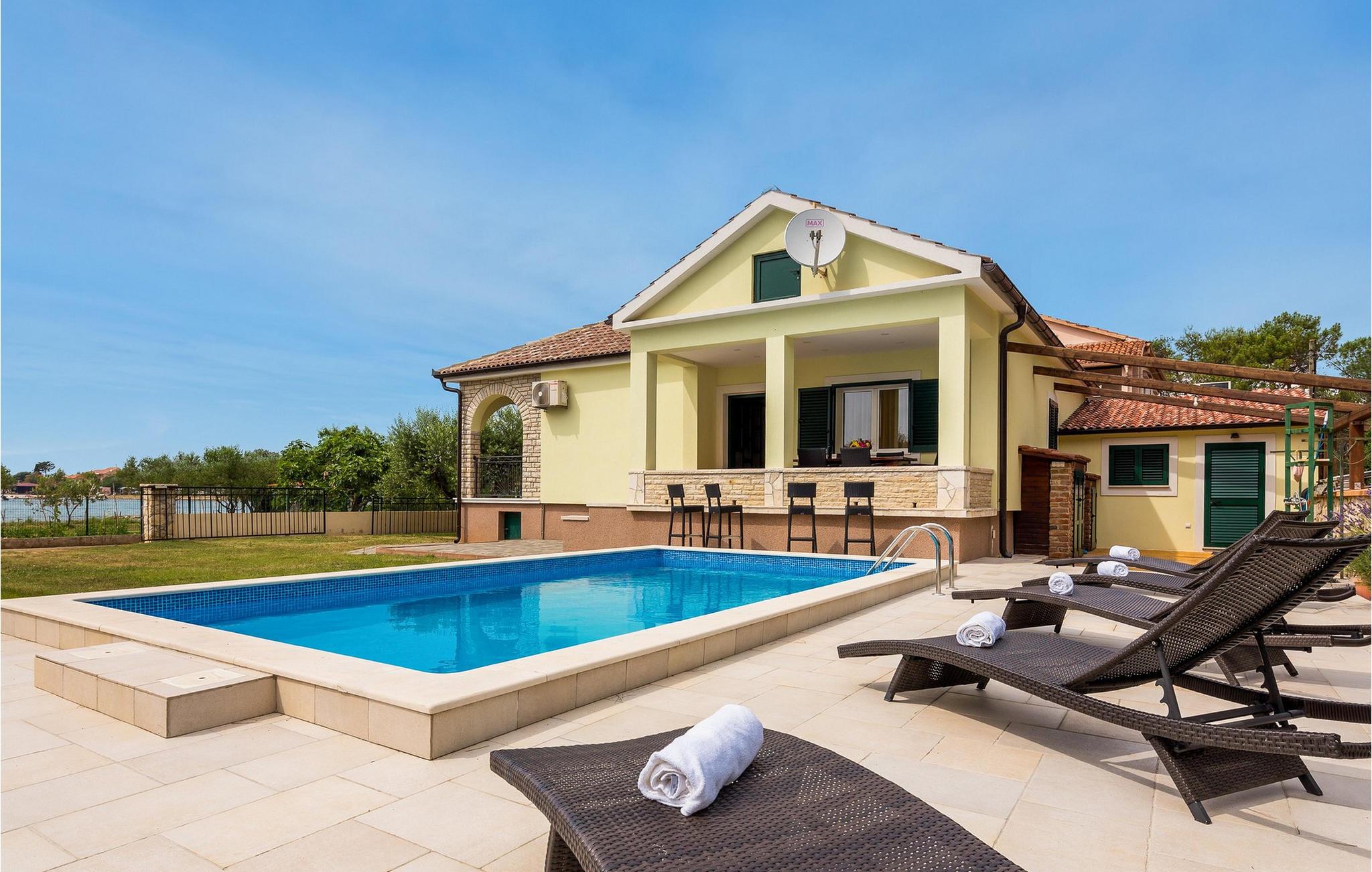 Nyd ren afslapning i denne stilfulde villa nær stranden. Oplev uforglemmelige ferier i den smagfulde og indbydende Villa Curta i Privlaka, som byder jer velkommen med en privat swimmingpool, liggestole og en smuk have. Det attraktive køkken med tilhørende spiseplads og den hyggelige stue skaber en indbydende atmosfære, der lægger op til at slappe af. De behagelige møbler, et bibliotek på stedet og en vingård giver det lille ekstra. Udenfor venter en rummelig og overdækket grillplads og en udendørs spiseplads, mens børnene kan boltre sig på trampolinen. Nyd en dukkert i poolen med hele familien, das på liggestolene eller grib strandtasken og gå de få meter til stranden. Privlaka tilbyder den perfekte blanding af ro og aktivitet. Den nærliggende sandstrand lægger op til at svømme i Adriaterhavets krystalklare vand, mens restauranter og barer tilbyder kulinariske lækkerier. Tag på udflugter til den historiske by Nin, kendt for sine saltmarker og charmerende gamle bydel eller udforsk den pulserende by Zadar med dens berømte seværdigheder som Havorglet.