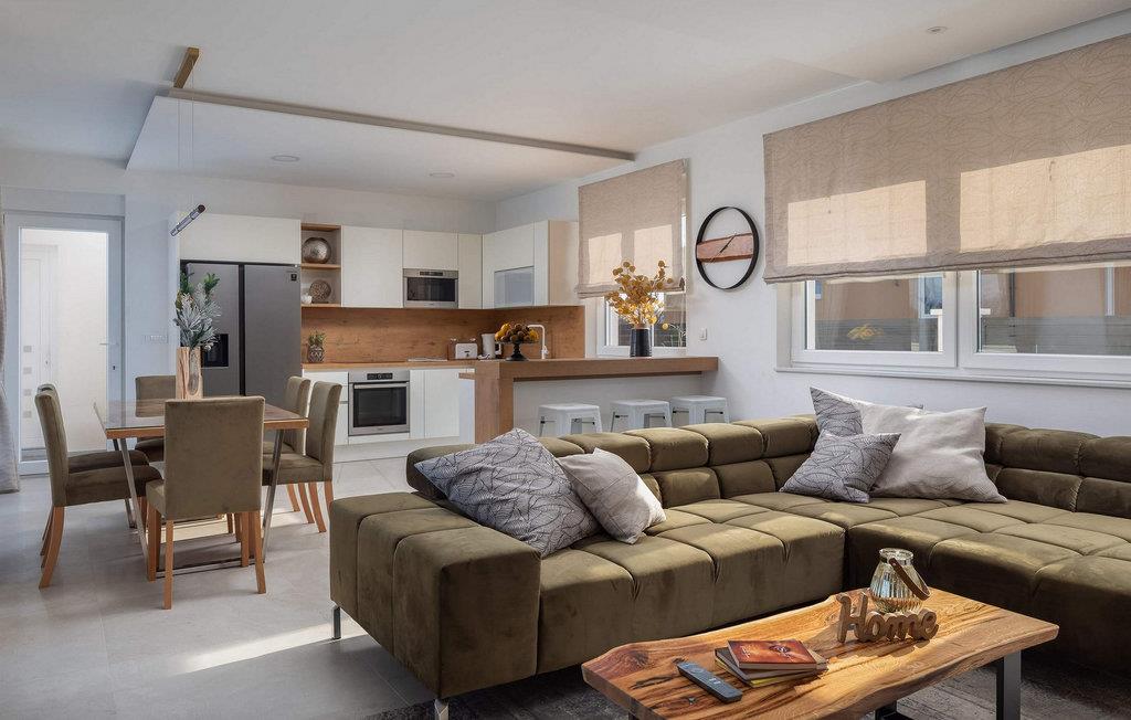 Villa Katarina har en harmonisk blanding af moderne design og middelhavsstil. Møblerne er stilfulde, men hyggelige, med varme farver, trædetaljer og gennemtænkte accenter. Den lyse opholdsstue åbner ud til terrassen med en fantastisk udsigt over poolen eller havet. Lyt til god musik, nyd en sjov spilleaften eller test jeres evner med en runde bordfodbold. Tilbered lækre måltider i køkkenet og nyd dem sammen.