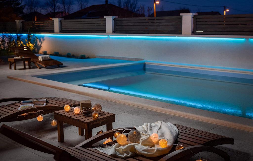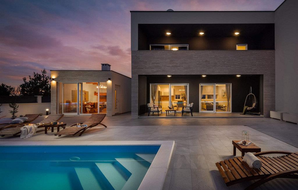 Begynd dagene med en forfriskende dukkert i den store pool og svøm et par afslappende baner. Slap af på solterrassen med en kølig drink, læn jer tilbage med en god bog eller slap blot af på liggestolene. Det overdækkede siddeområde giver skygge og er perfekt til udendørs spisning eller afslappende aftener med et glas vin. En murstensgrill er også tilgængelig til at tilberede sprøde retter - nyd den dalmatiske sommer fuldt ud.