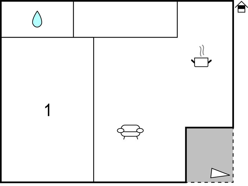 Opholdsstue/køkken - 2 Sovepladser. (Sofa, madras eller lignende).