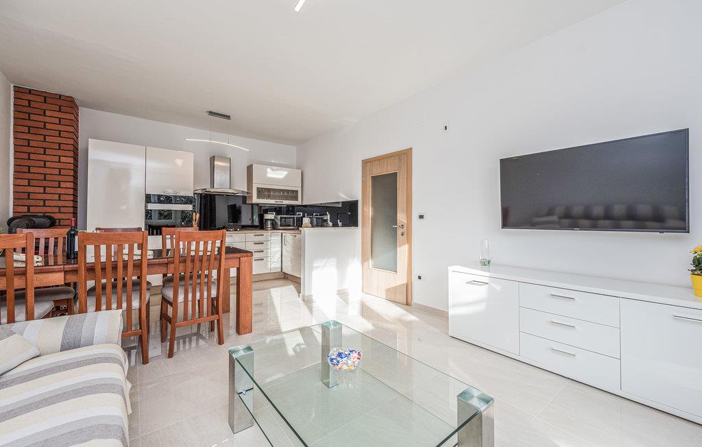 Det rummelige og venligt indrettede feriehus er et ideelt valg til en afslappende ferie med familien eller vennerne. Lejlighederne ligger på høj stueplan. Huset råder over tre soveværelser, tre badeværelser og en stue med køkken. I baggården kan I sidde på den overdækkede terrasse og tilberede lækre grillretter på fællesgrillen eller nyde et godt glas vin i dejligt selskab. Det lille hus bag ved feriehuset bliver af og til brugt af ejeren. I landsbyen findes der flere dejlige strande og der er kun få kilometer til byerne Nin og Privlaka, hvor der også er skønne sandstrande.