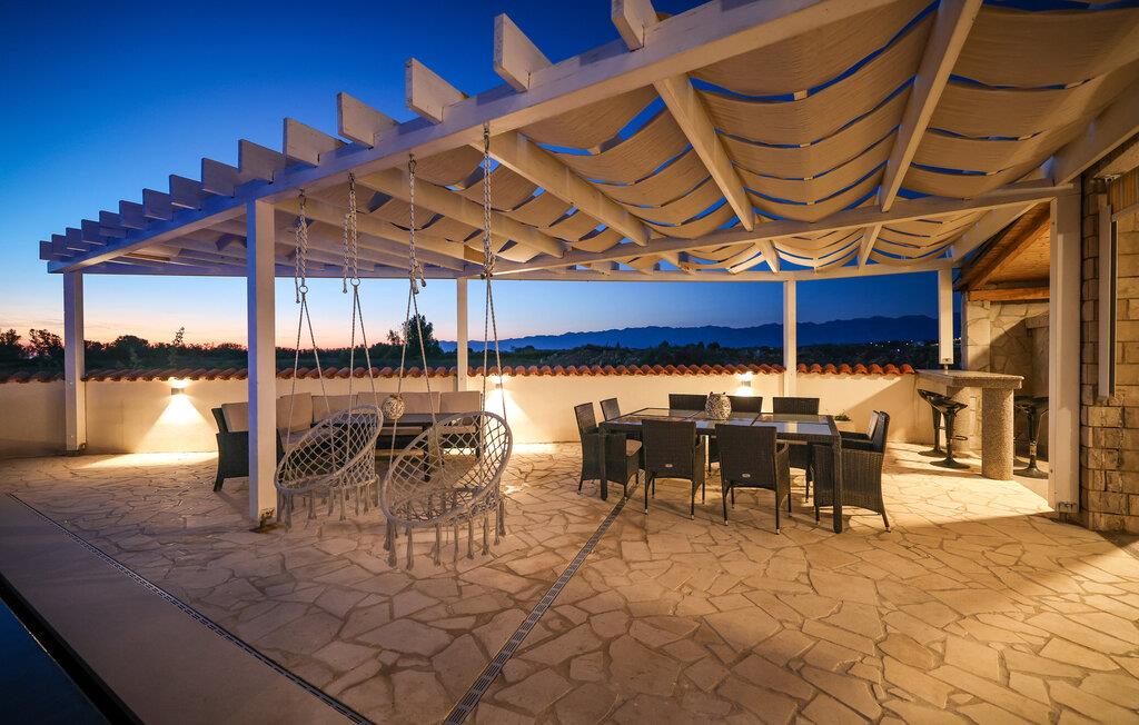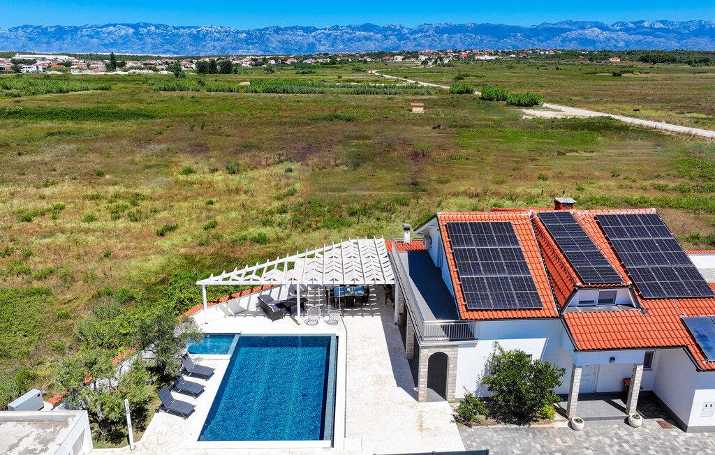 Komfortabelt feriehus med pool, huset er fordelt på to etager, ideelt hvis to familier vil på ferie sammen. I kan hoppe i poolen lige når I har lyst, for den bruges kun af jer. Lav mad på grillen, der står skyggefuldt, og spis den udendørs helt frisk. Haven er indhegnet, så I kan trygt lade jeres børn tumle sig. I kan ikke kun slappe af i solen, men også cykle, vandre, dykke eller surfe. Vi anbefaler udflugter til de nærliggende natur- og nationalparker, samt den fine lille by Nin, der kun ligger tre km væk. Besøg også den interessante by Zadar som bugner af historiske arkitektoniske seværdigheder, men også helt moderne bygninger og installationer.
