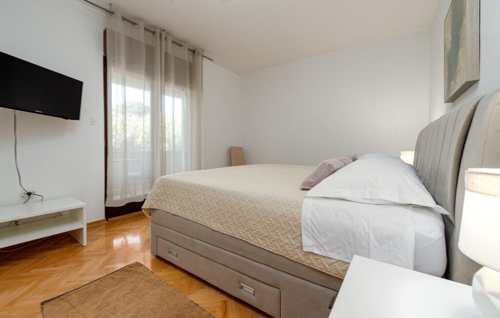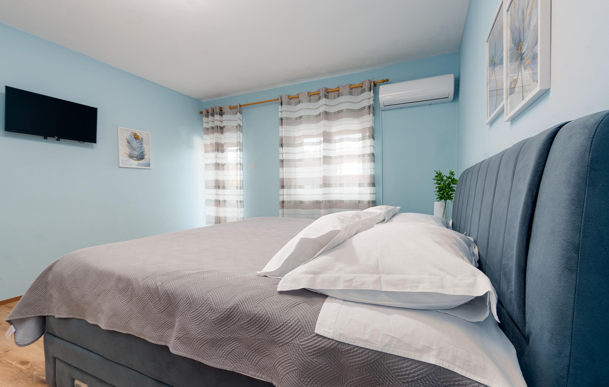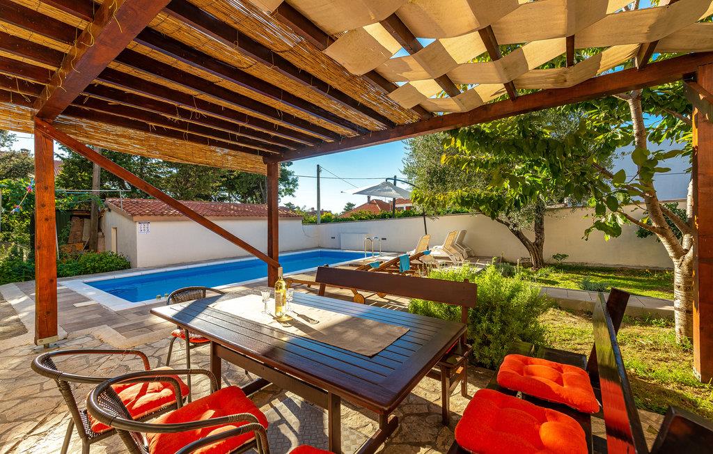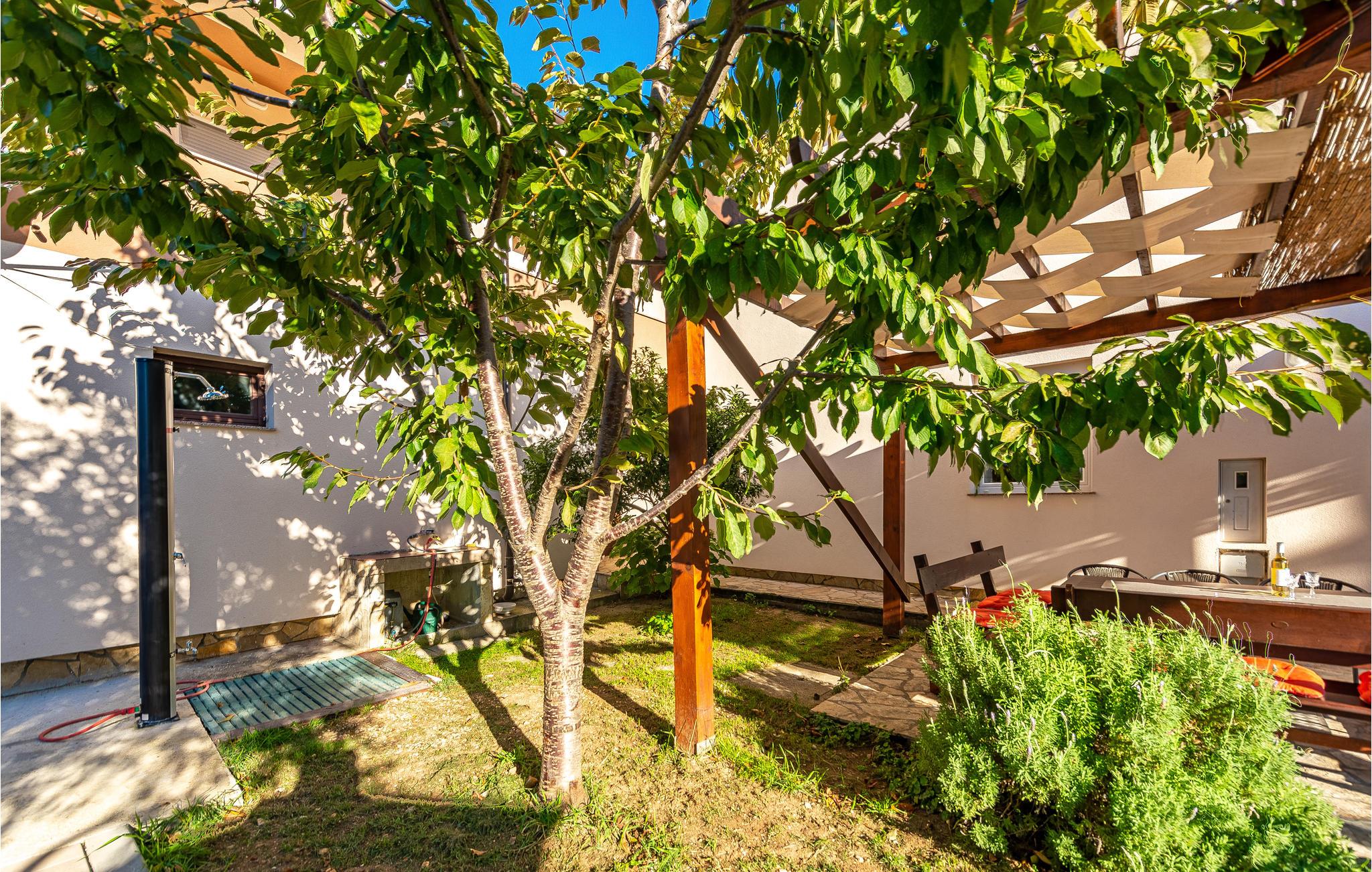 Dette praktiske feriehus ligger i byen Vrsi, i nærheden af et væld af strande. Stuen ligger i åben forbindelse med køkkenet, sammen med et badeværelse i stueplan, mens der på første sal er både to soveværelser og et badeværelse. De andre to soveværelser og det tredje badeværelse nås udefra, de ligger også på første sal. Haven indbyder til hyggeligt samvær, evt. med noget godt på tallerknerne der er lavet på grillen. Det varer kun få minutter at gå til de nærmeste strande, lidt længere væk, i byerne Nin og Privlaka, er der også sandstrande.