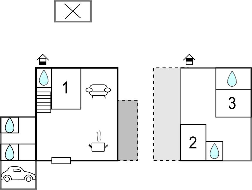 Opholdsstue/køkken 50m2 - 2 Sovepladser. (Sofa, madras eller lignende).