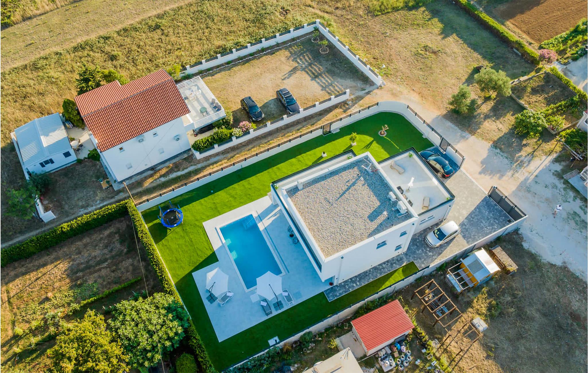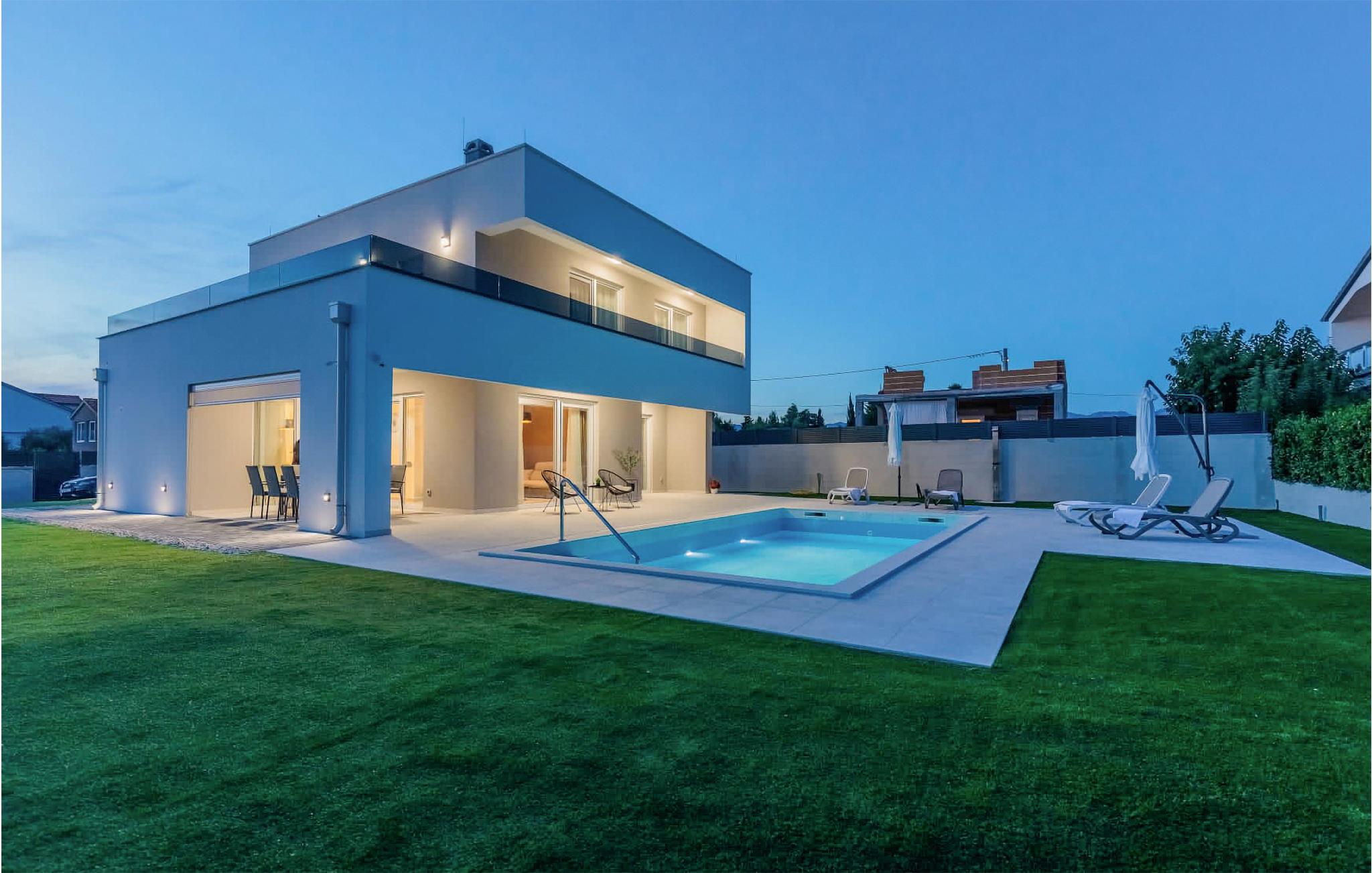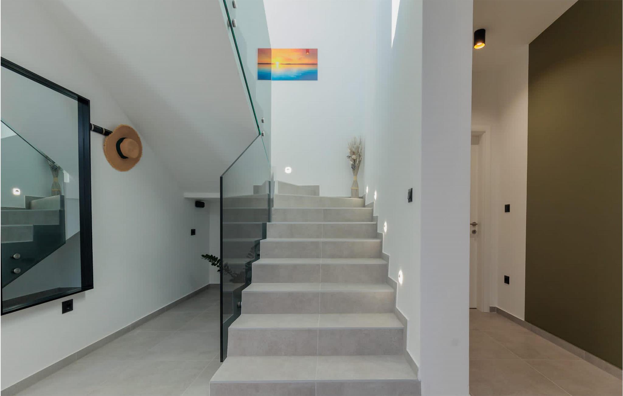 Glæd jer til dette komfortable og attraktive feriehus, som byder på private soveværelser med eget badeværelse i to etager. De smukt designede værelser, med møbler og udstyr af høj kvalitet, skaber en ægte oase af velvære for jer. Find jer godt til rette med familien og tilbring mange timer i haven eller på tagterrassen med havudsigt. Svøm i poolen, mens børnene er på trampolinen, og kom sammen om aftenen til grillretter.