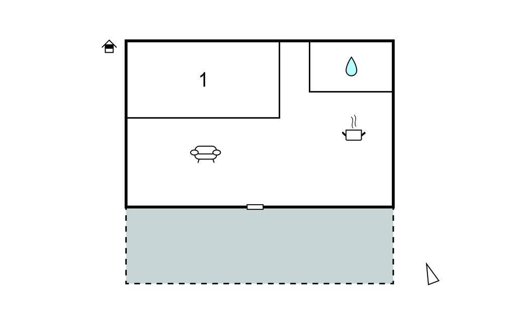 Opholdsstue/køkken 20m2 - 2 Sovepladser. (Sofa, madras eller lignende).
