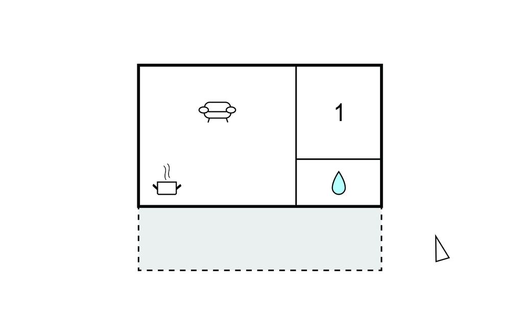 Opholdsstue/køkken 34m2 - 2 Sovepladser. (Sofa, madras eller lignende).