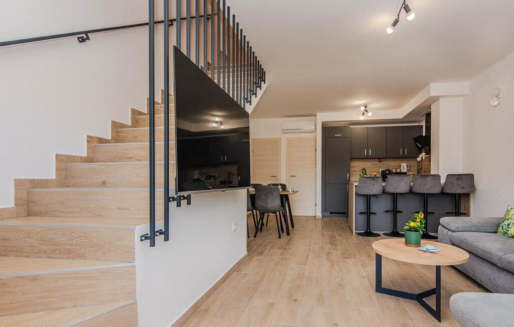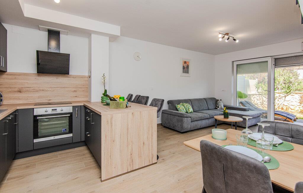 Velkommen til denne lyse, smagfulde ferielejlighed, der lover jer afslappende dage ved kysten. Begynd dagene med morgenmad ved den elegante disk og tilbered lækre middelhavsretter i det åbne køkken. Efter en lang dag kan I slå jer ned i den hyggelige sofa, streame en film eller smage en kroatisk vin.