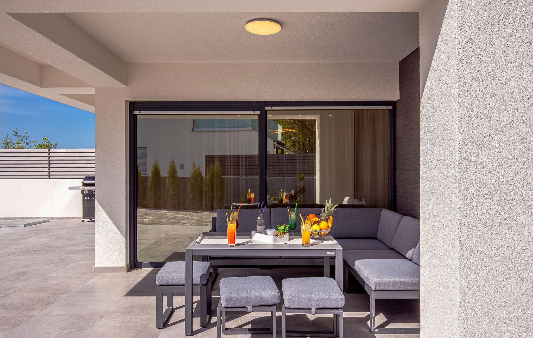Nyd jeres ferie i denne stilfulde villa ikke langt fra maleriske strande. Glæd jer til jeres ferie i dette komfortable feriehus. Den moderne designede Villa Bura tilbyder en åben opholdsstue med en behagelig sofa, videospil og dart til socialt samvær. I det fuldt udstyrede køkken kan I lave mad sammen og nyde jeres måltider ved køkkenbordet/spisebordet. En infrarød sauna venter jer i stueetagen til afslappende øjeblikke. Udendørs inviterer det overdækkede opholdsområde og siddepladserne jer til hyggestunder, mens den store pool i haven sørger for forfriskninger. børnene vil nyde legepladsen, mens I tilbereder en lækker middag på den udendørs grill. Zaton og det omkringliggende område tilbyder en imponerende kombination af natur og kultur. Oplev sandstrandene i Nin og Privlaka eller de historiske skatte i Zadar. Tag på udflugter til øen Vir eller udforsk den gamle bydel i Nin med dens historiske seværdigheder. Uanset om I leder efter afslapning eller eventyr, vil I opleve uforglemmelige dage her.