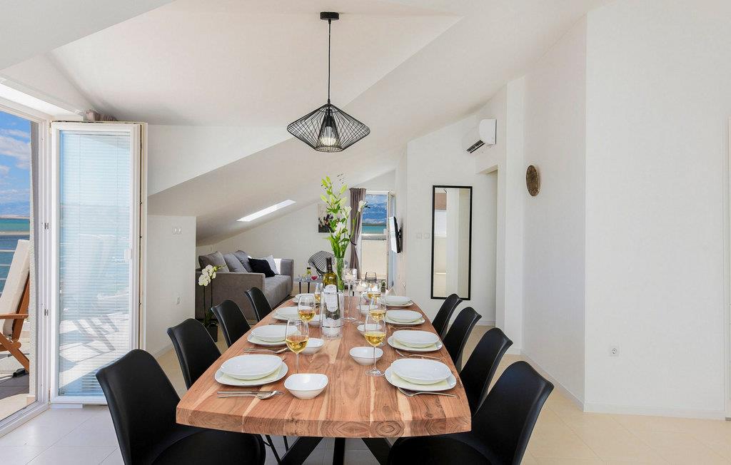 Nyd havudsigten fra denne rummelige og komfortable ferielejlighed. Denne moderne lejlighed, Anica, i Nin, ligger på øverste etage i en smuk lejlighedsbygning med lyse værelser og stilfulde indretningsløsninger. Det fuldt udstyrede køkken og den hyggelige stue lægger op til at slappe af. Slap af i de komfortable soveværelser og nyd en solid morgenmad på jeres terrasse. Nyd lune aftener i den velholdte have med grillplads og slap af på jeres balkon, hvor I kan nyde uhindret udsigt over Adriaterhavet. Næste dag kan I starte jeres dag med en dukkert i det krystalklare hav fra jeres private anløbsbro og solbade i haven. Anløbsbroen kan også bruges til at fortøje en båd (efter anmodning). Udforsk den charmerende gamle bydel i Nin med dens rige historie, verdens mindste katedral og den berømte Dronningestrand. De helbredende mudder- og saltsletter tilbyder særlige naturoplevelser. Vandsport, afslappende stranddage og udflugter til Zadar, kun en kort køretur væk, vil gøre jeres ophold uforglemmeligt. Bemærk venligst: Ejendommen accepterer ikke ungdomsgrupper under 23 år eller polterabender. Bookinger fra sådanne grupper vil blive afvist, selv ved ankomst eller under opholdet, uden refusion.