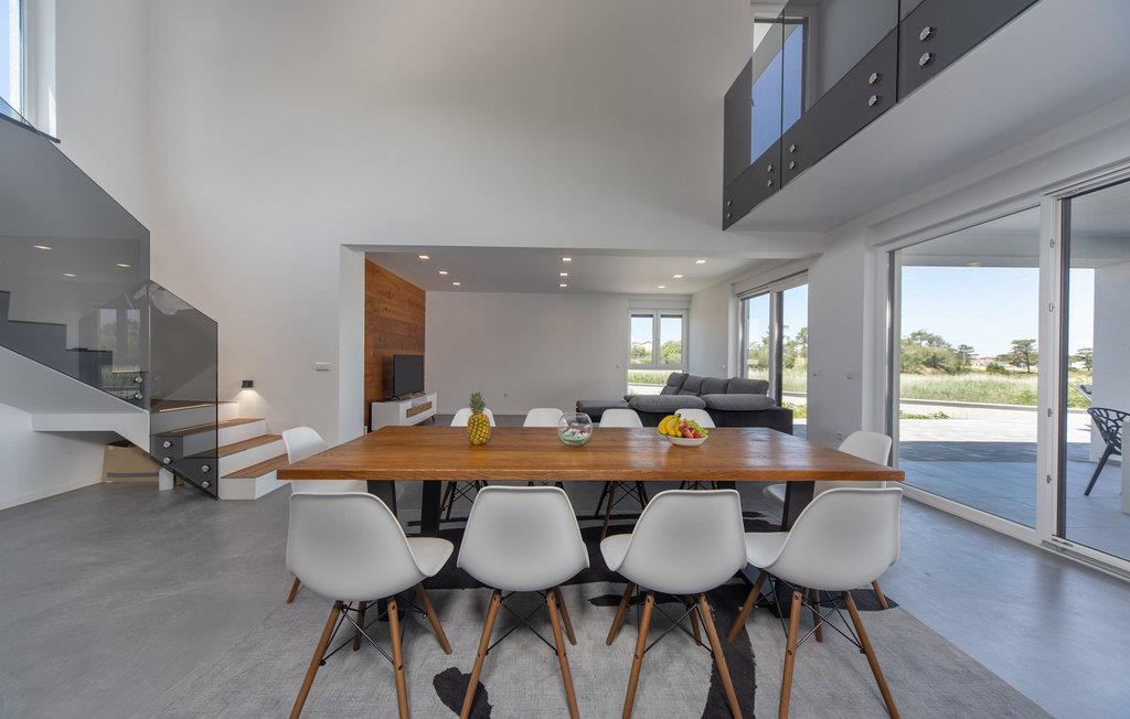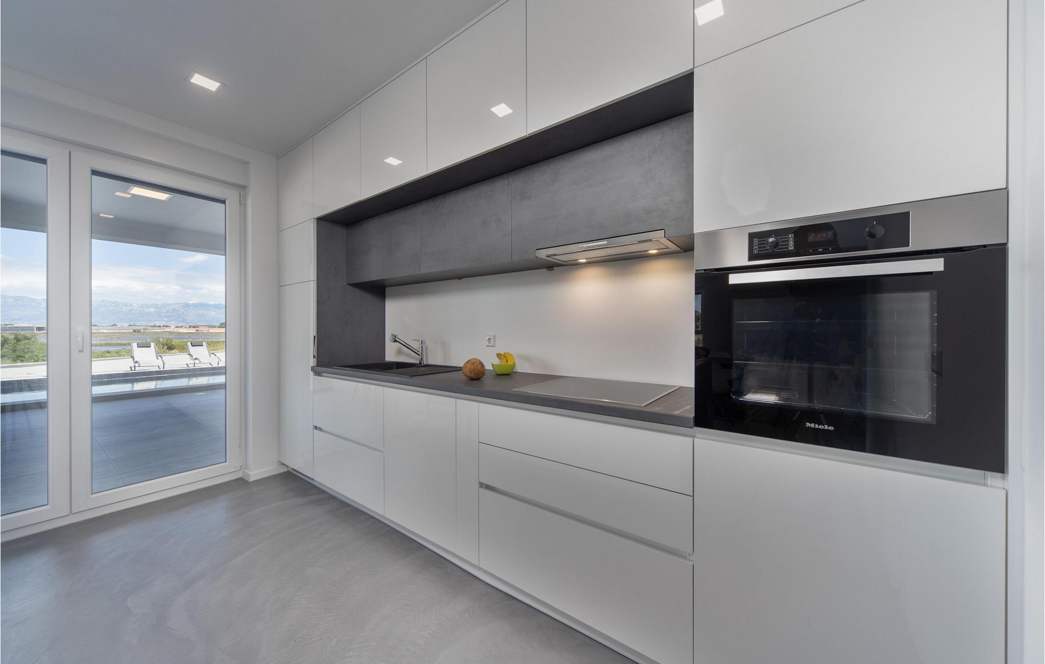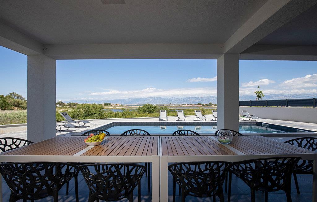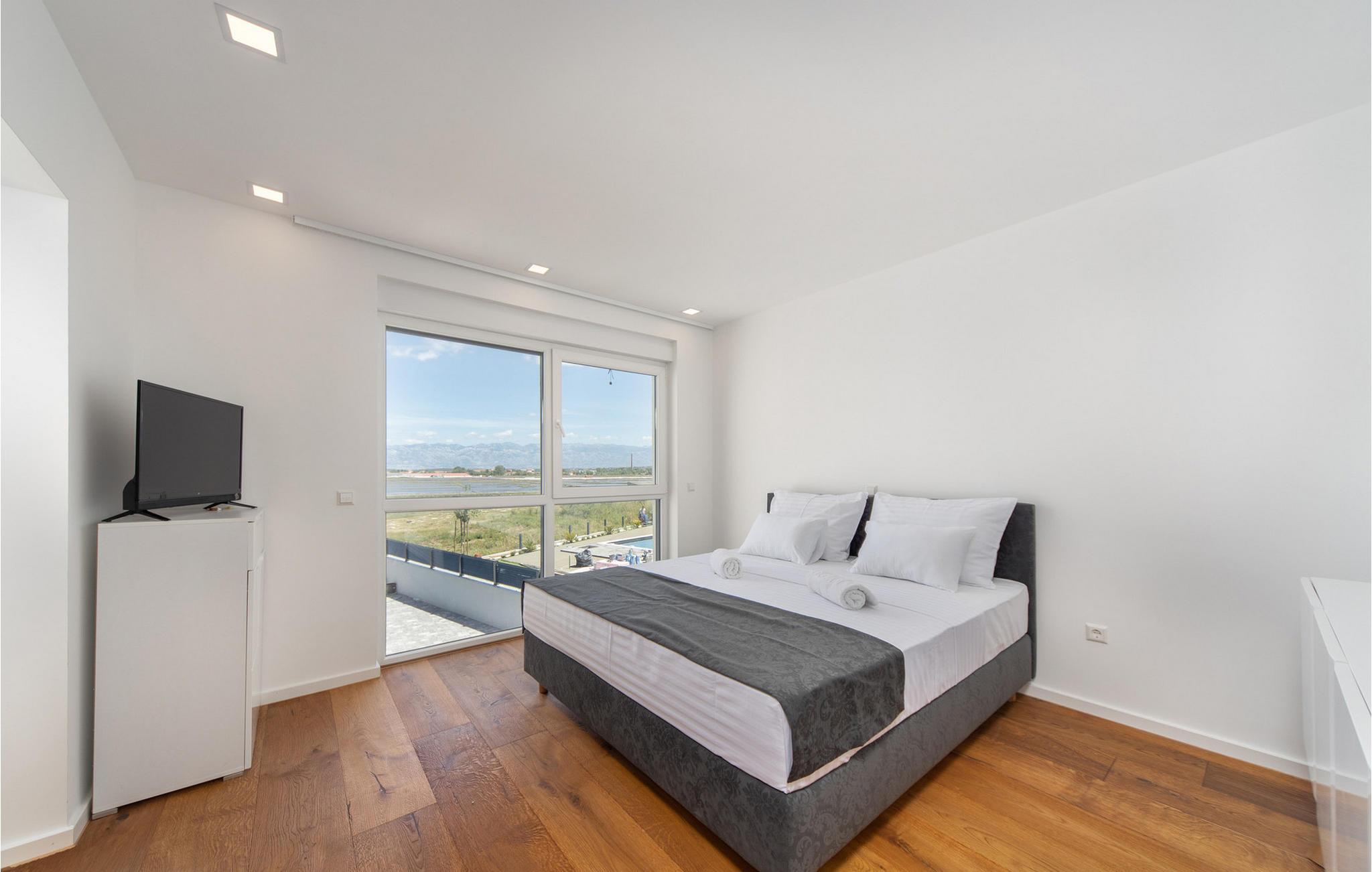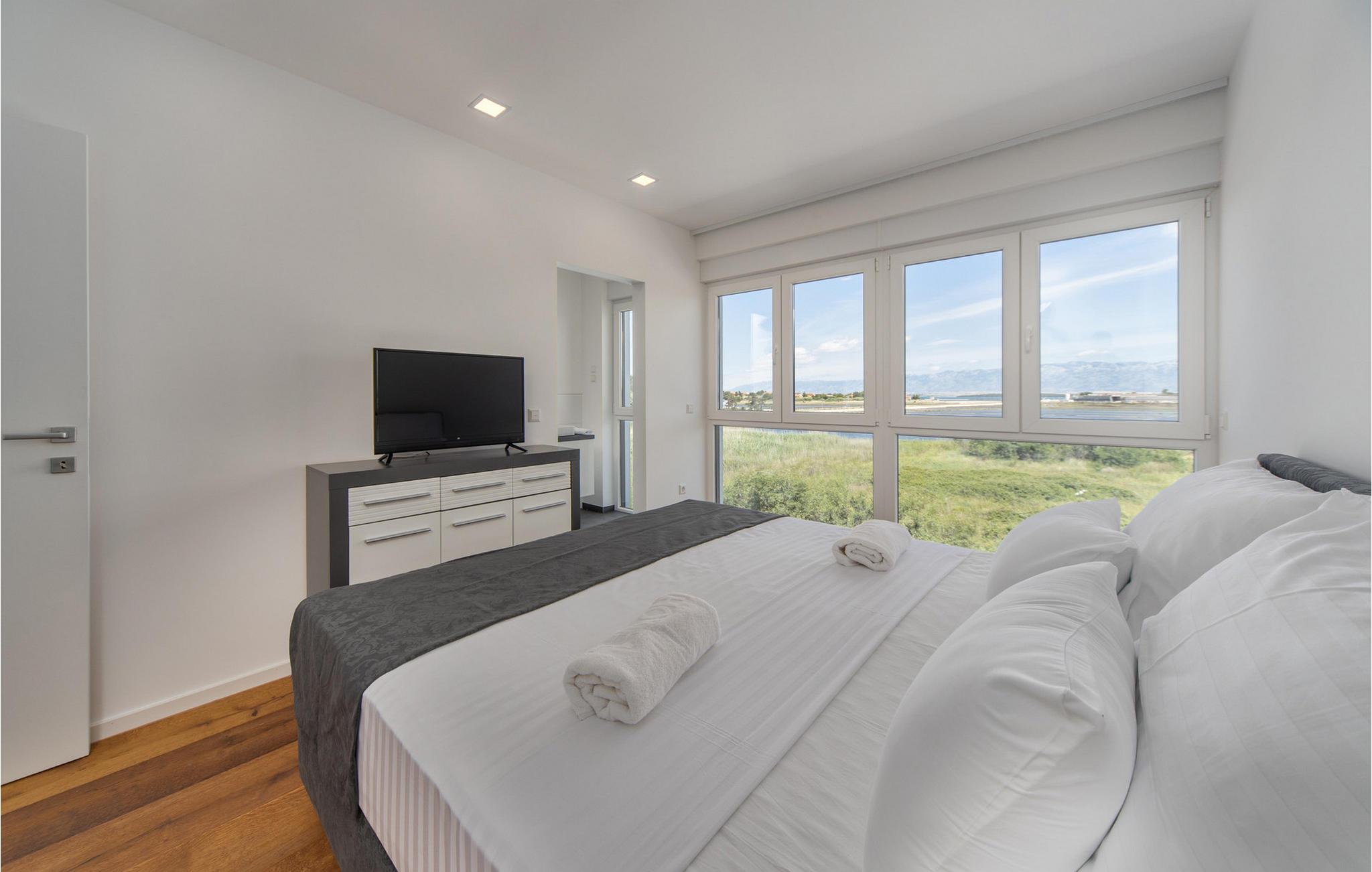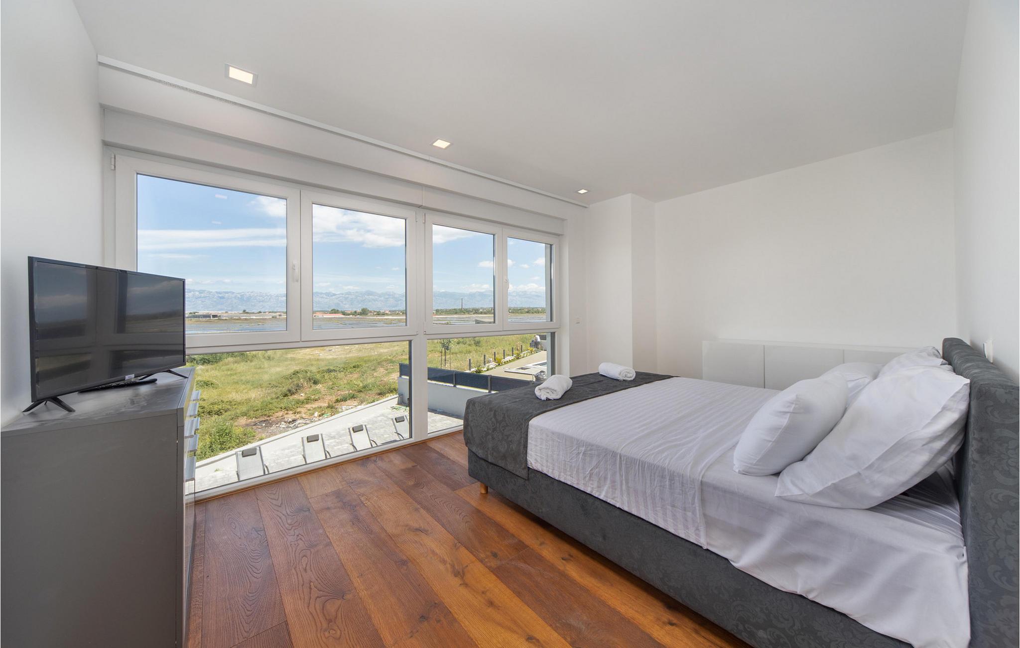 Glæd jer til en afslappende ferie i dette luksuriøse feriehus med pool og havudsigt. Den moderne Villa Nin ligger i en lavvandet lagune og byder jer velkommen med et minimalistisk og eksklusivt interiør. Store vinduer tilbyder udsigt over det maleriske landskab helt ned til havet og giver de rummelige værelser masser af naturligt dagslys. Nyd kulinariske lækkerier med venner, sæt jer ved det stilfulde spisebord, hold jer i form på træningsmaskinerne eller nyd Nintendo Wii. Vågn op lige efter I er vågnet, og tag en afslappende svømmetur i den elegante pool. Den overdækkede terrasse er det ideelle sted for middelhavsretter på varme sommerdage, og komfortable liggestole lægger op til at slappe af i timevis. Forkæl jer selv med et glas kroatisk vin ved solnedgang, og fejr jeres tid sammen med stemningsfulde grillmad. Oplev regionens mange smukke klippe- og sandstrande, og forkæl jer selv med en svømmetur i det berømte helbredende mudder i Nin. Gå en tur gennem den historiske gamle bydel i Nin, og prøv regionale specialiteter. Prøv windsurfing og kajaksejlads eller oplev undervandsverdenen, mens I snorkler eller dykker. Se flamingoer i saltpanderne, vandre i Velebitbjergene, og gå ikke glip af Zadar med havorglet og "Hilsen til solen".