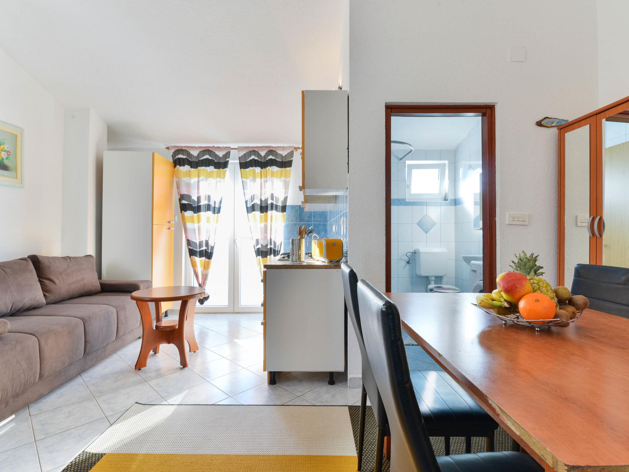 "Jadran", 2-room apartment 40 m2 on 2nd floor. Living/dining room with 1 double sofabed, satellite TV and air conditioning. Exit to the balcony. 1 room with 1 french bed (160 cm, length 200 cm). Exit to the balcony. Open kitchen (1 hot plate, oven, 3 gas rings, toaster, kettle, microwave, freezer, electric coffee machine). Shower/WC. No heating option. Balcony 8 m2. Balcony furniture. Facilities: washing machine. Internet (WiFi, free). Please note: non-smoking house. Maximum 1 pet/ dog allowed.