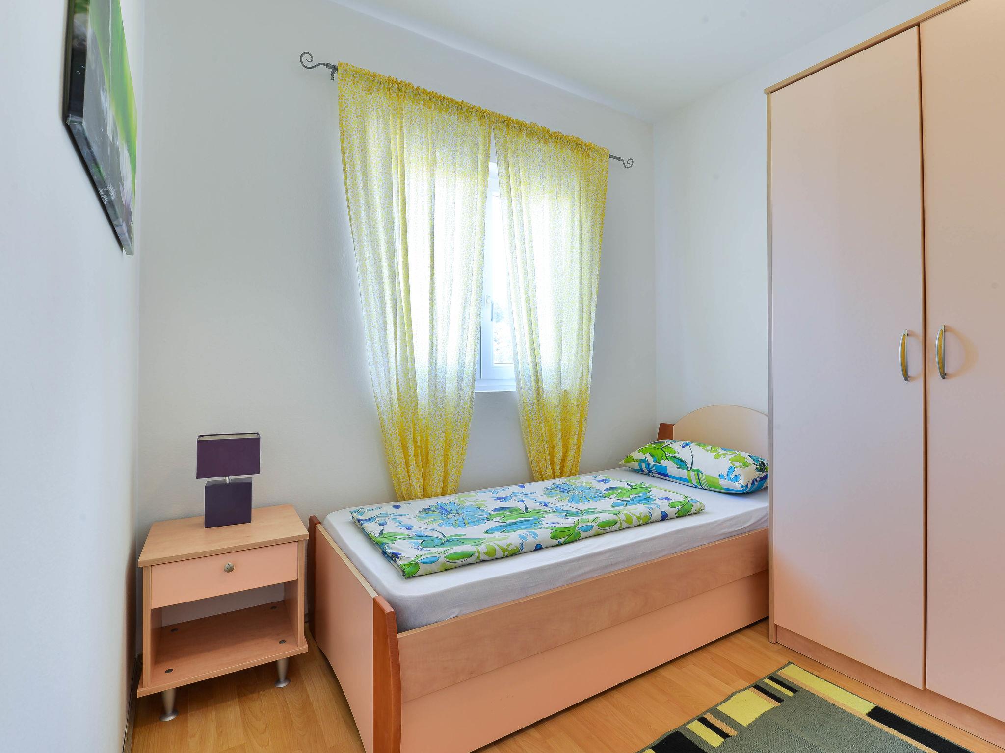 "Jadran", 3-room apartment 50 m2 on 1st floor. Living/dining room with 1 sofabed, satellite TV and air conditioning. Exit to the balcony. 1 room with 1 french bed (160 cm, length 200 cm). Exit to the balcony. 1 room with 2 beds (90 cm, length 200 cm). Exit to the balcony. Open kitchen (4 hot plates, oven, toaster, kettle, microwave, freezer, electric coffee machine). Shower/WC. No heating option. Balcony 8 m2. Balcony furniture. Facilities: washing machine. Internet (WiFi, free). Please note: non-smoking house. Maximum 1 pet/ dog allowed.