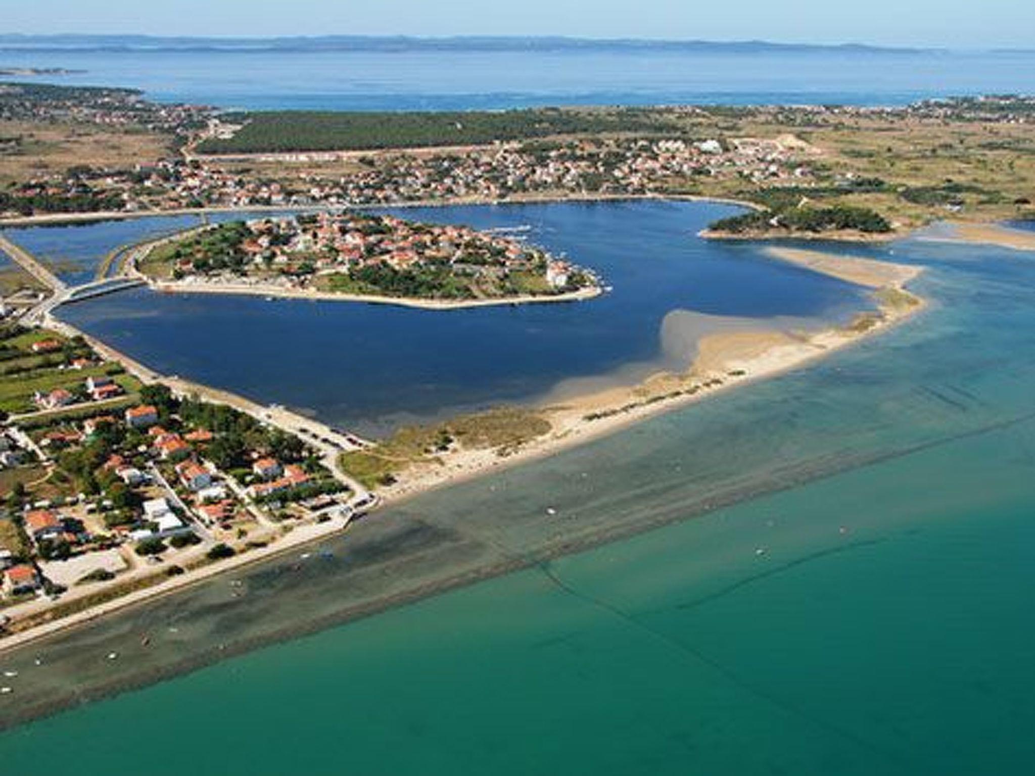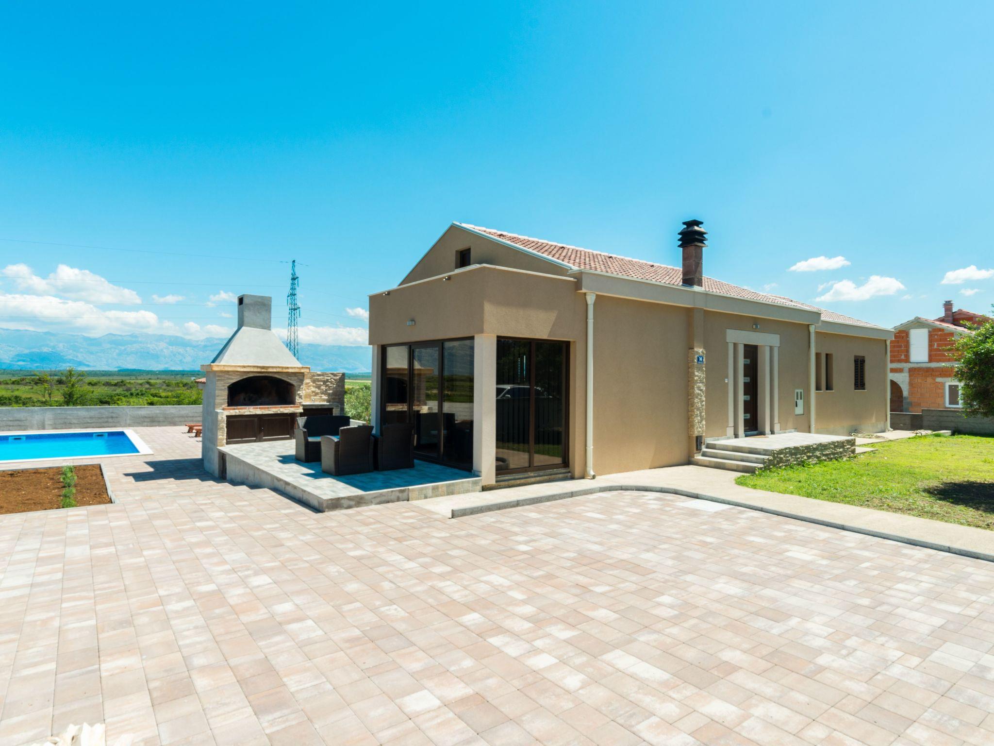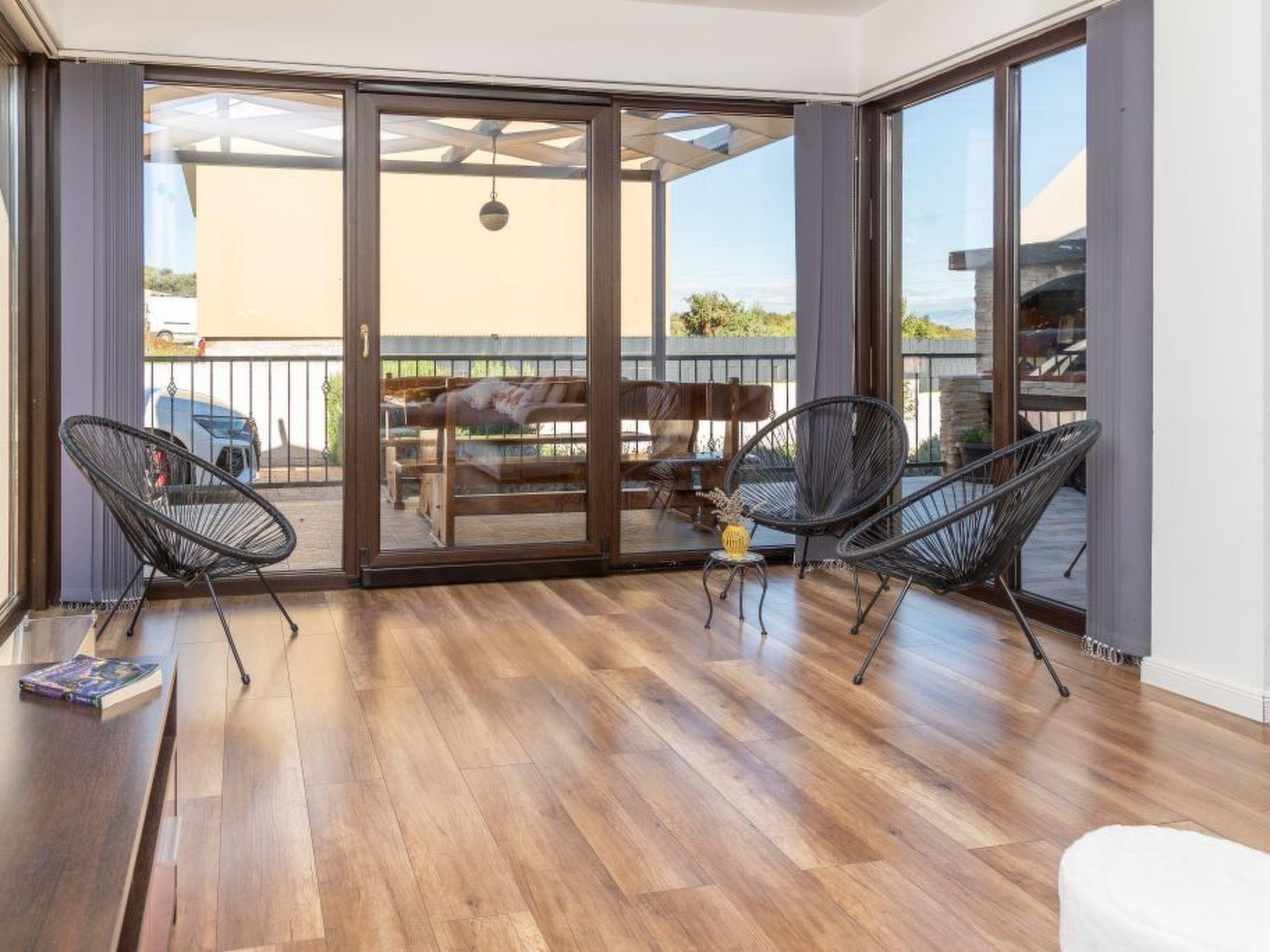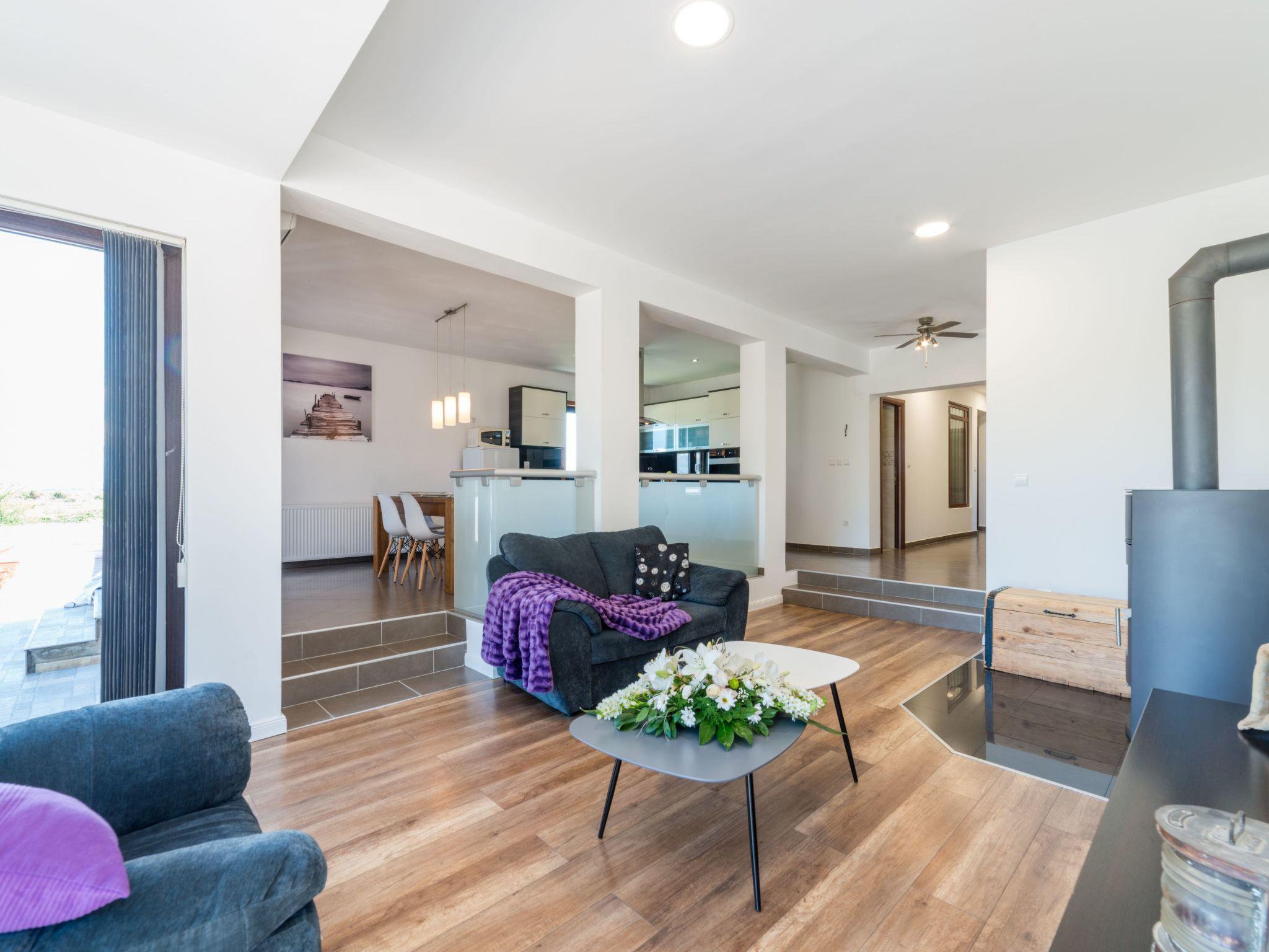 A modern villa with an outdoor private pool and three bedrooms can host up to eight people. Guests can expect a spacious living room with lots of natural light, a kitchen equipped with a dishwasher, microwave, and coffee machine, a dining room two bathrooms, and a separate toilet. The villa is ideal for families with children or a larger group. Special emphasis is placed on a large terrace with deckchairs and a pool from which guests can observe spectacular sunset. A large wooden table on the terrace invites guests to enjoy a delicious dinner prepared on the fire in the fireplace. Calm, fresh mornings are ideal for coffee with a view of Velebit before actively exploring a real historical treasure - the town of Nin and its beautiful beaches, healing mud, and the Salt Museum.
