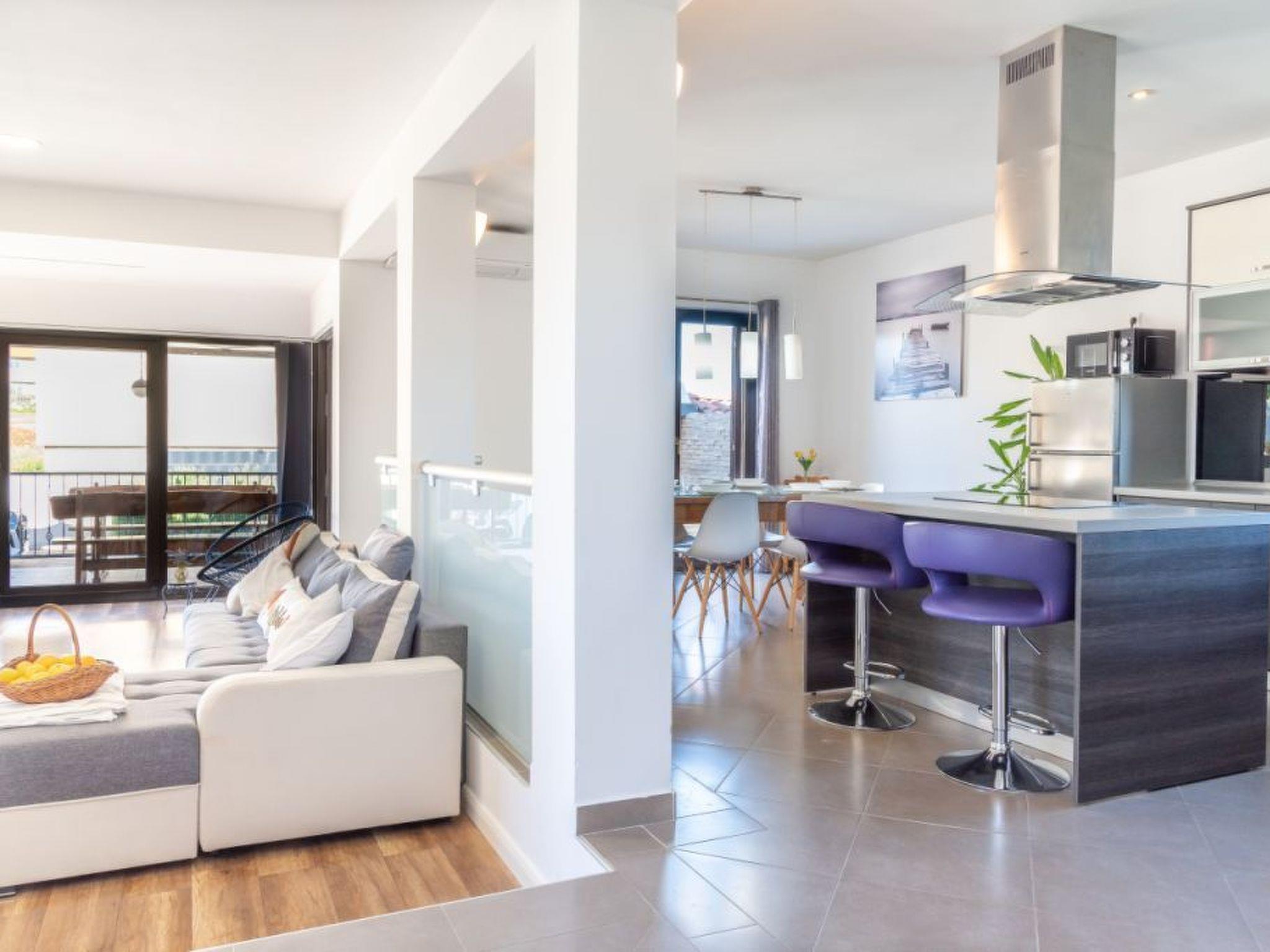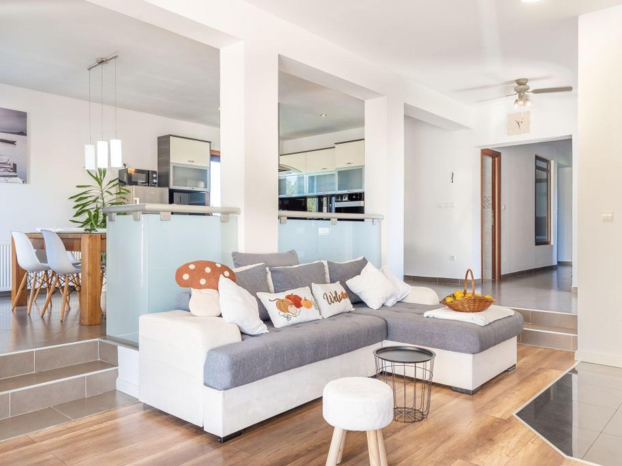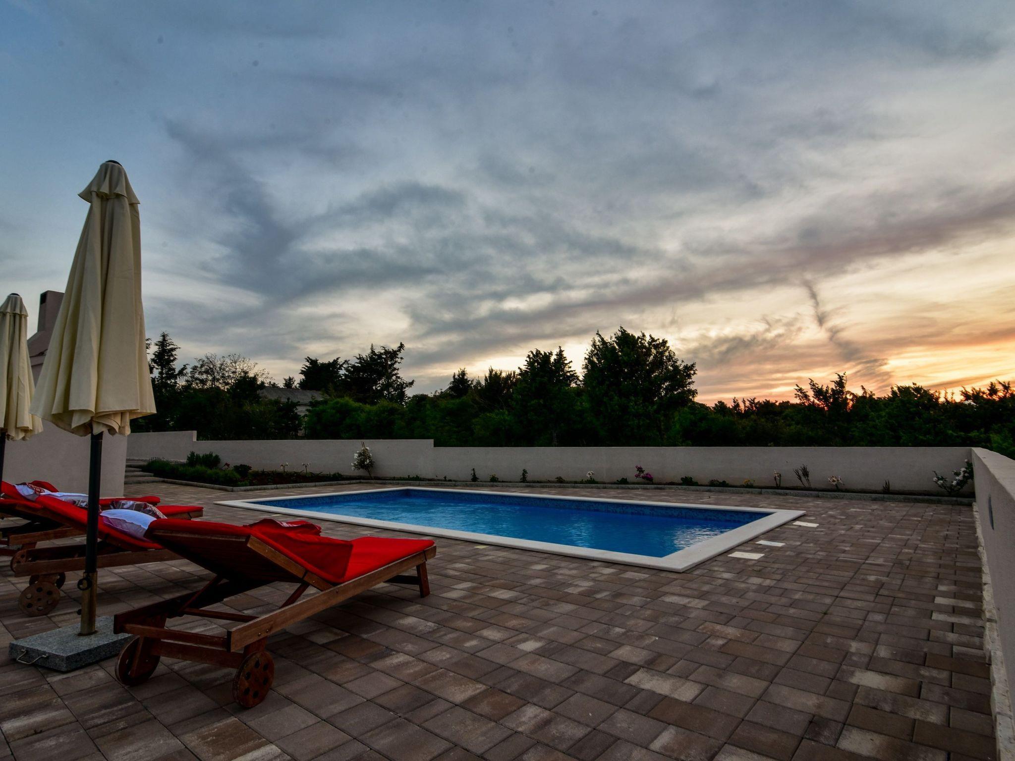 A modern villa with an outdoor private pool and three bedrooms can host up to eight people. Guests can expect a spacious living room with lots of natural light, a kitchen equipped with a dishwasher, microwave, and coffee machine, a dining room two bathrooms, and a separate toilet. The villa is ideal for families with children or a larger group. Special emphasis is placed on a large terrace with deckchairs and a pool from which guests can observe spectacular sunset. A large wooden table on the terrace invites guests to enjoy a delicious dinner prepared on the fire in the fireplace. Calm, fresh mornings are ideal for coffee with a view of Velebit before actively exploring a real historical treasure - the town of Nin and its beautiful beaches, healing mud, and the Salt Museum.
