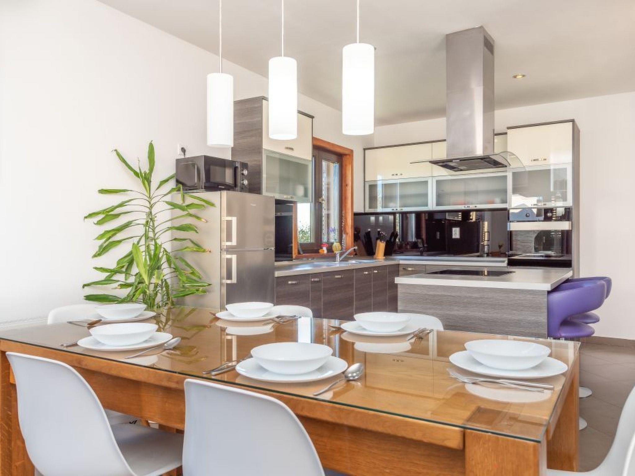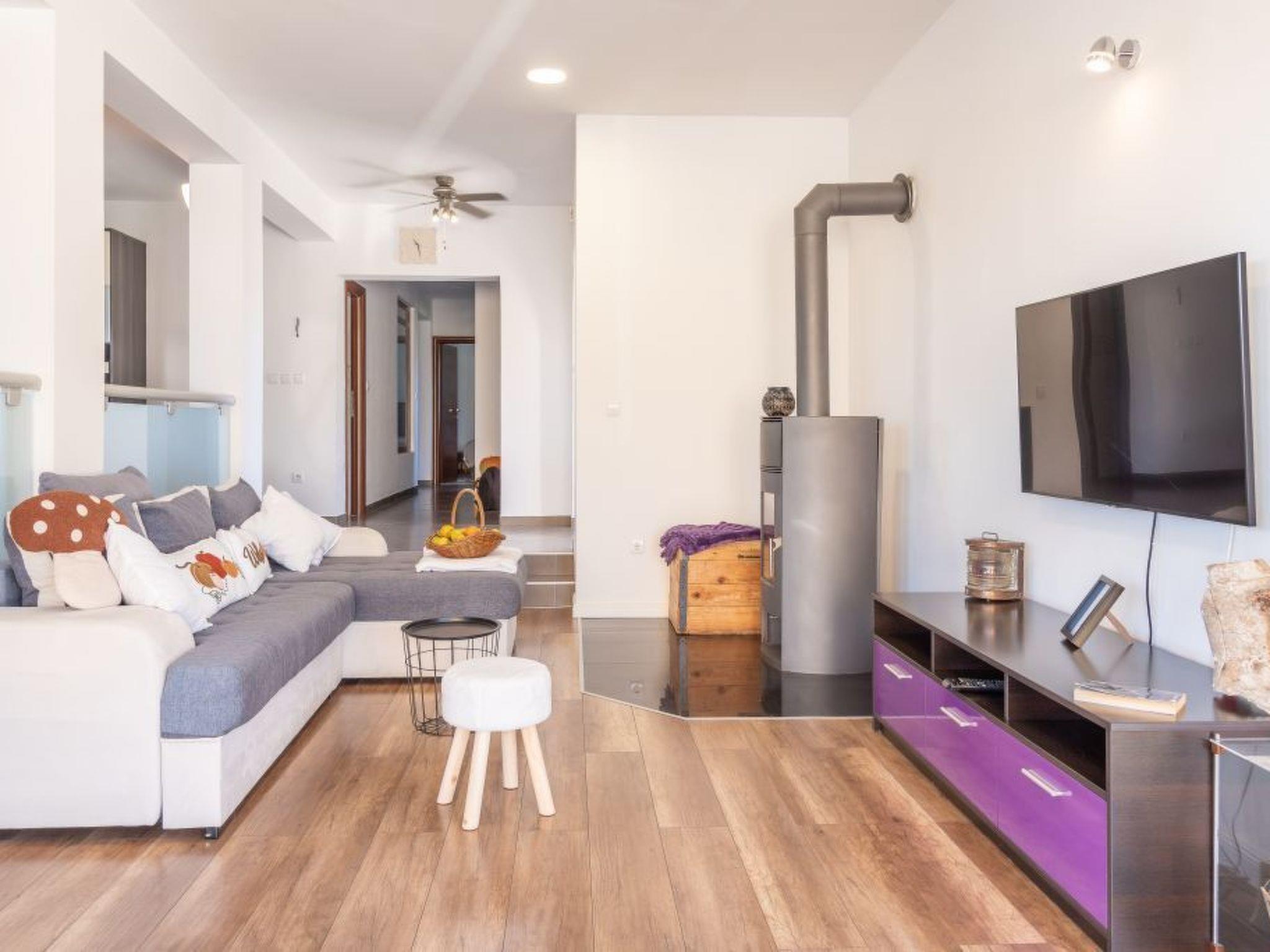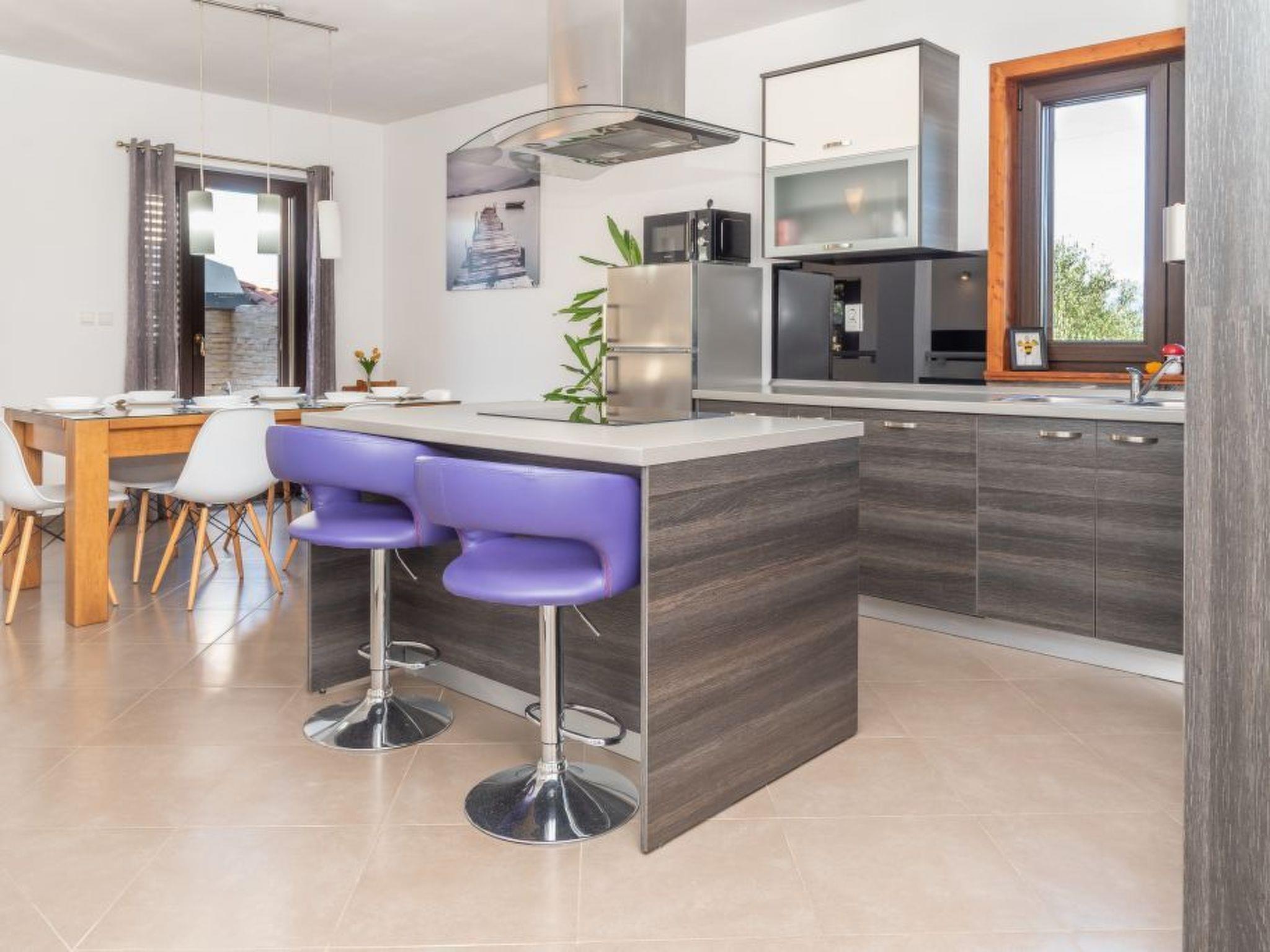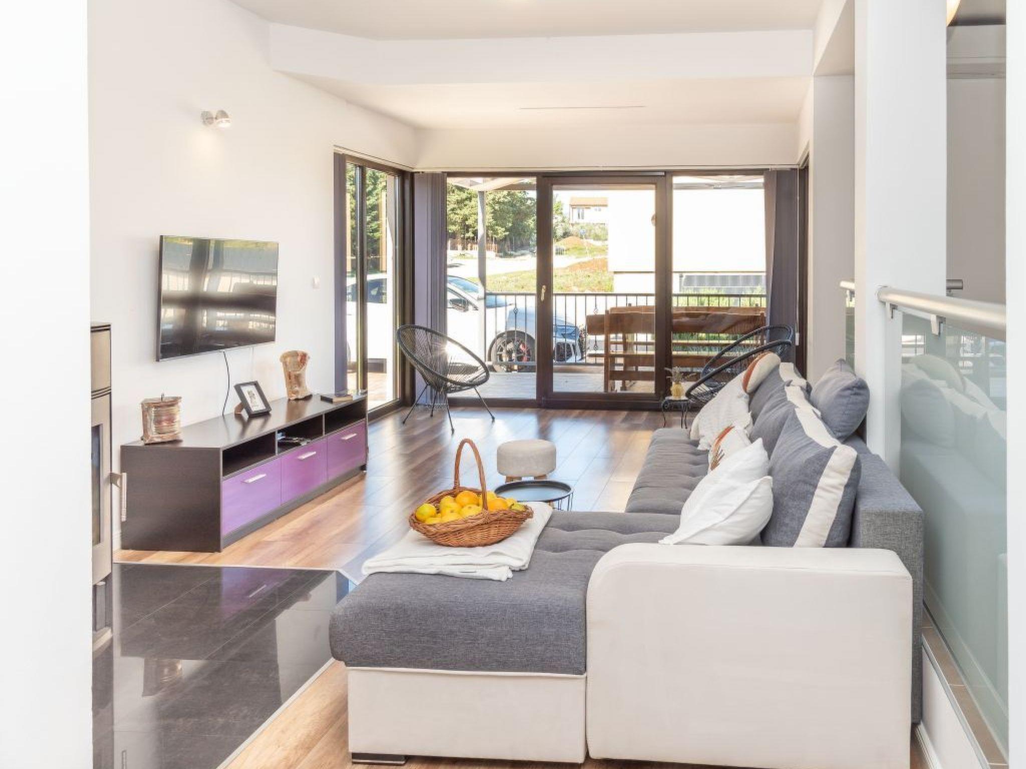 A modern villa with an outdoor private pool and three bedrooms can host up to eight people. Guests can expect a spacious living room with lots of natural light, a kitchen equipped with a dishwasher, microwave, and coffee machine, a dining room two bathrooms, and a separate toilet. The villa is ideal for families with children or a larger group. Special emphasis is placed on a large terrace with deckchairs and a pool from which guests can observe spectacular sunset. A large wooden table on the terrace invites guests to enjoy a delicious dinner prepared on the fire in the fireplace. Calm, fresh mornings are ideal for coffee with a view of Velebit before actively exploring a real historical treasure - the town of Nin and its beautiful beaches, healing mud, and the Salt Museum.