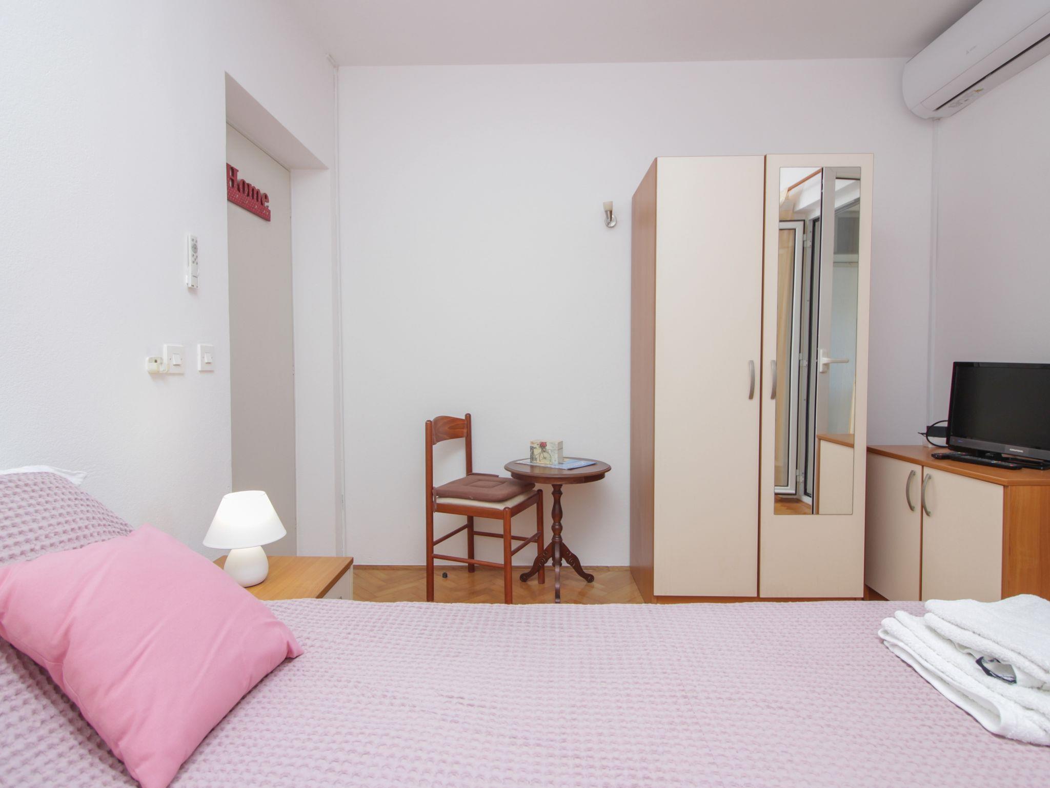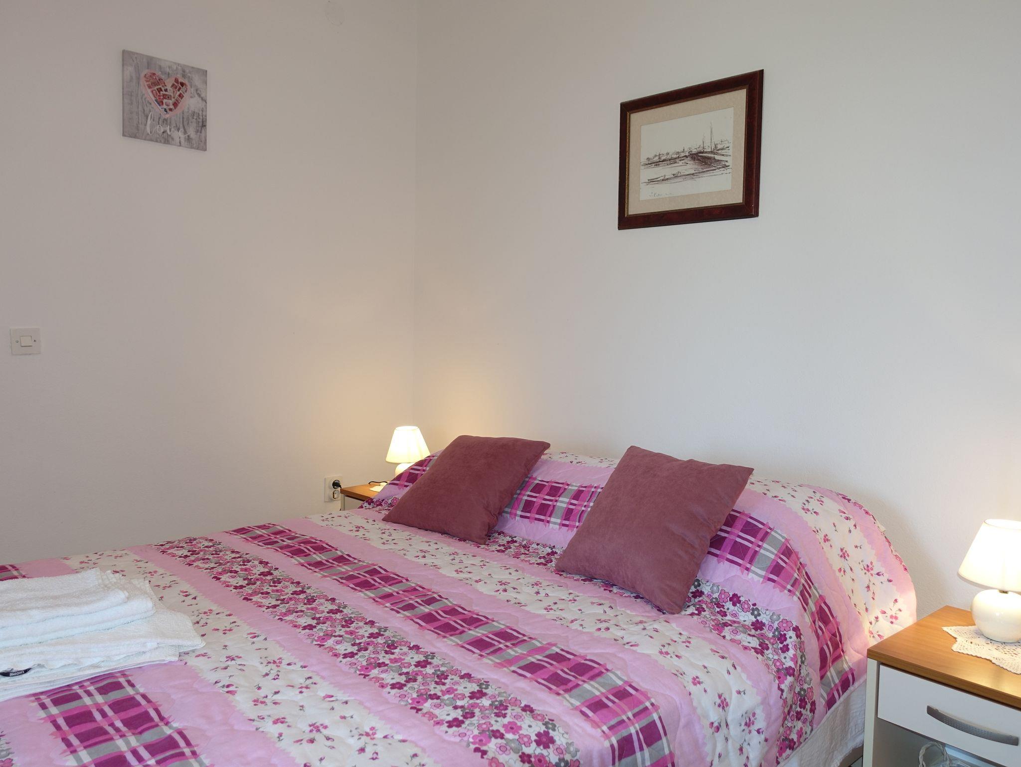 Zimmer bietet Platz für 2 Gäste. Die Betten sind in Schlafzimmern, die es 1 gibt, innerhalb einer Gesamtfläche von 17m2, angeordnet. Die Gäste haben eine eigene Terrasse zur Verfügung, auf der sie in warmen Sommernächten genießen können. Das Zimmer bietet Meerblick. Es ist erlaubt, Speisen auf dem Gemeinschafts-Grill vorzubereiten. IM PREIS INBEGRIFFEN: Kurtaxe, Endreinigung, Klimatisierung, Parkplatz, Internet, Bootsanlegeplatz, Bügeleisen, Bügelbrett, Föhn. VERBINDLICHE ZUSÄTZLICHE KOSTEN: Aufzahlung für Kurzaufenthalte (prozentualer Zuschlag pro Nächtigungsanzahl: 30% - 1, 20% - 2, 10% - 3). Die Verfügbarkeit zusätzlicher Dienstleistungen in Ihrem reservierten Termin und die Preise derselben (falls nicht aufgeführt) müssen im Voraus überprüft werden. Zusätzliche Dienstleistungen die in der Zahlungsaufforderung nicht aufgeführt sind werden direkt beim Vermieter bezahlt, angenommen der Gast nutzt auch diese.