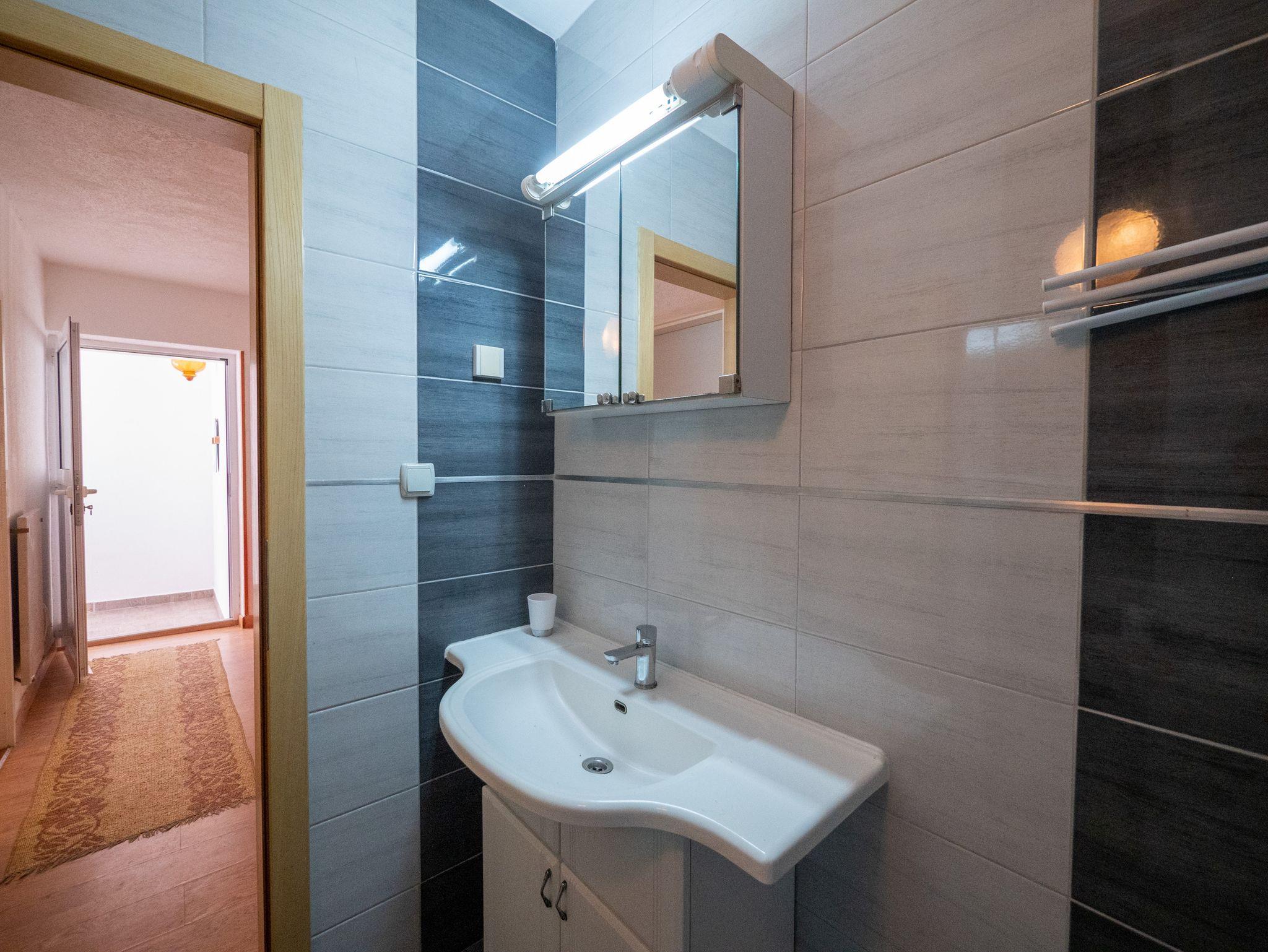 Ferienwohnung bietet Platz für 5 Gäste. Die Betten sind in Schlafzimmern, die es 2 gibt, und in Wohnzimmer, innerhalb einer Gesamtfläche von 33m2, angeordnet. Die Gäste haben eine eigene Terrasse zur Verfügung, auf der sie in warmen Sommernächten genießen können. Es ist erlaubt, Speisen auf dem Gemeinschafts-Grill vorzubereiten. In der Unterkunftseinheit besteht die Möglichkeit des Mitbringens von Haustieren gegen Aufpreis. Unterkunftseinheit hat Räume, die von dem Rest der Einheit abgetrennt werden. IM PREIS INBEGRIFFEN: Kurtaxe, Endreinigung, Klimatisierung, Parkplatz, Internet. VERBINDLICHE ZUSÄTZLICHE KOSTEN: Aufzahlung für Kurzaufenthalte (prozentualer Zuschlag pro Nächtigungsanzahl: 30% - 1, 20% - 2, 10% - 3). UNVERBINDLICHE ZUSÄTZLICHE KOSTEN: Haustiere (10,00 € pro Nacht), Zusatzbett (10,00 € pro Nacht). Die Verfügbarkeit zusätzlicher Dienstleistungen in Ihrem reservierten Termin und die Preise derselben (falls nicht aufgeführt) müssen im Voraus überprüft werden. Zusätzliche Dienstleistungen die in der Zahlungsaufforderung nicht aufgeführt sind werden direkt beim Vermieter bezahlt, angenommen der Gast nutzt auch diese.