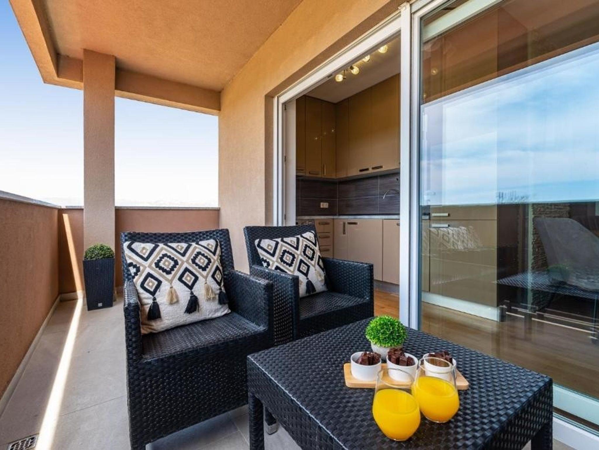 Ferienwohnung bietet Platz für 3 Gäste. Die Betten sind in Schlafzimmern, die es 2 gibt, innerhalb einer Gesamtfläche von 42m2, angeordnet. Die Gäste haben einen eigenen Balkon zur Verfügung, auf der sie in warmen Sommernächten genießen können. Das Apartment bietet Meerblick. IM PREIS INBEGRIFFEN: Kurtaxe, Endreinigung, Klimatisierung, Parkplatz, Internet, Fahrrad, Kinderbett, Föhn, 1 Bett für Kinder (im Preis enthalten). VERBINDLICHE ZUSÄTZLICHE KOSTEN: Aufzahlung für Kurzaufenthalte (prozentualer Zuschlag pro Nächtigungsanzahl: 30% - 1, 20% - 2, 10% - 3). Die Verfügbarkeit zusätzlicher Dienstleistungen in Ihrem reservierten Termin und die Preise derselben (falls nicht aufgeführt) müssen im Voraus überprüft werden. Zusätzliche Dienstleistungen die in der Zahlungsaufforderung nicht aufgeführt sind werden direkt beim Vermieter bezahlt, angenommen der Gast nutzt auch diese.