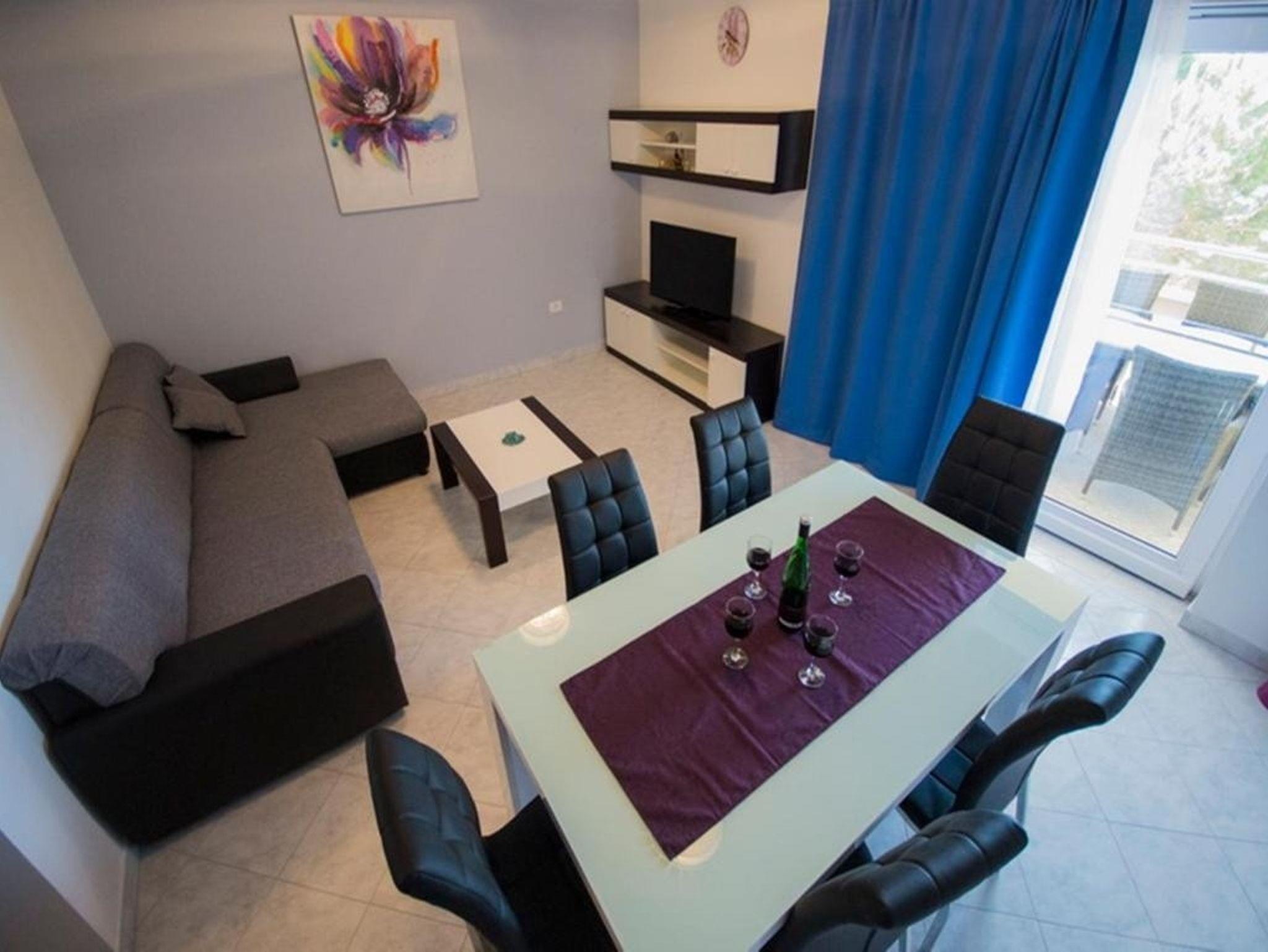 Ferienwohnung bietet Platz für 6 Gäste. Die Betten sind in Schlafzimmern, die es 2 gibt, und in Wohnzimmer, innerhalb einer Gesamtfläche von 52m2, angeordnet. Die Gäste haben eine eigene Terrasse zur Verfügung, auf der sie in warmen Sommernächten genießen können. Das Apartment bietet Meerblick. Es ist erlaubt, Speisen auf dem Gemeinschafts-Grill vorzubereiten. In der Unterkunftseinheit besteht die Möglichkeit des Mitbringens von Haustieren gegen Aufpreis. IM PREIS INBEGRIFFEN: Kurtaxe, Endreinigung, Klimatisierung, Parkplatz, Internet, Kinderbett, Bügeleisen, Bügelbrett, Föhn, Liegestühle. VERBINDLICHE ZUSÄTZLICHE KOSTEN: Aufzahlung für Kurzaufenthalte (prozentualer Zuschlag pro Nächtigungsanzahl: 30% - 1, 20% - 2, 10% - 3). UNVERBINDLICHE ZUSÄTZLICHE KOSTEN: Haustiere (15,00 € pro Nacht). Die Verfügbarkeit zusätzlicher Dienstleistungen in Ihrem reservierten Termin und die Preise derselben (falls nicht aufgeführt) müssen im Voraus überprüft werden. Zusätzliche Dienstleistungen die in der Zahlungsaufforderung nicht aufgeführt sind werden direkt beim Vermieter bezahlt, angenommen der Gast nutzt auch diese.