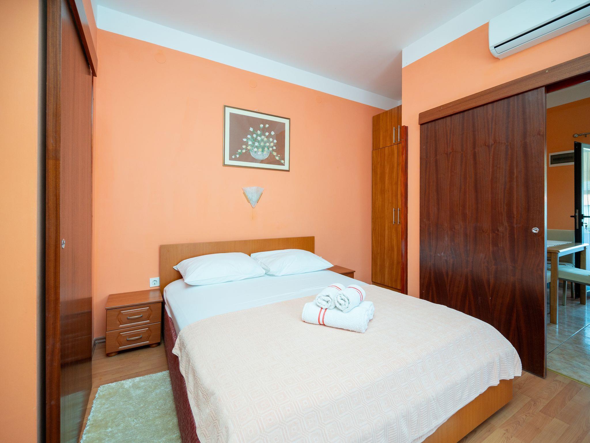 Ferienwohnung bietet Platz für 4 Gäste. Die Betten sind in Schlafzimmern, die es 2 gibt, innerhalb einer Gesamtfläche von 27m2, angeordnet. Die Gäste haben eine eigene Terrasse zur Verfügung, auf der sie in warmen Sommernächten genießen können. Es ist erlaubt, Speisen auf dem Gemeinschafts-Grill vorzubereiten. IM PREIS INBEGRIFFEN: Kurtaxe, Endreinigung, Klimatisierung, Parkplatz, Internet, Wäschewaschen, Kinderbett, Bügeleisen, Föhn. Die Verfügbarkeit zusätzlicher Dienstleistungen in Ihrem reservierten Termin und die Preise derselben (falls nicht aufgeführt) müssen im Voraus überprüft werden. Zusätzliche Dienstleistungen die in der Zahlungsaufforderung nicht aufgeführt sind werden direkt beim Vermieter bezahlt, angenommen der Gast nutzt auch diese.