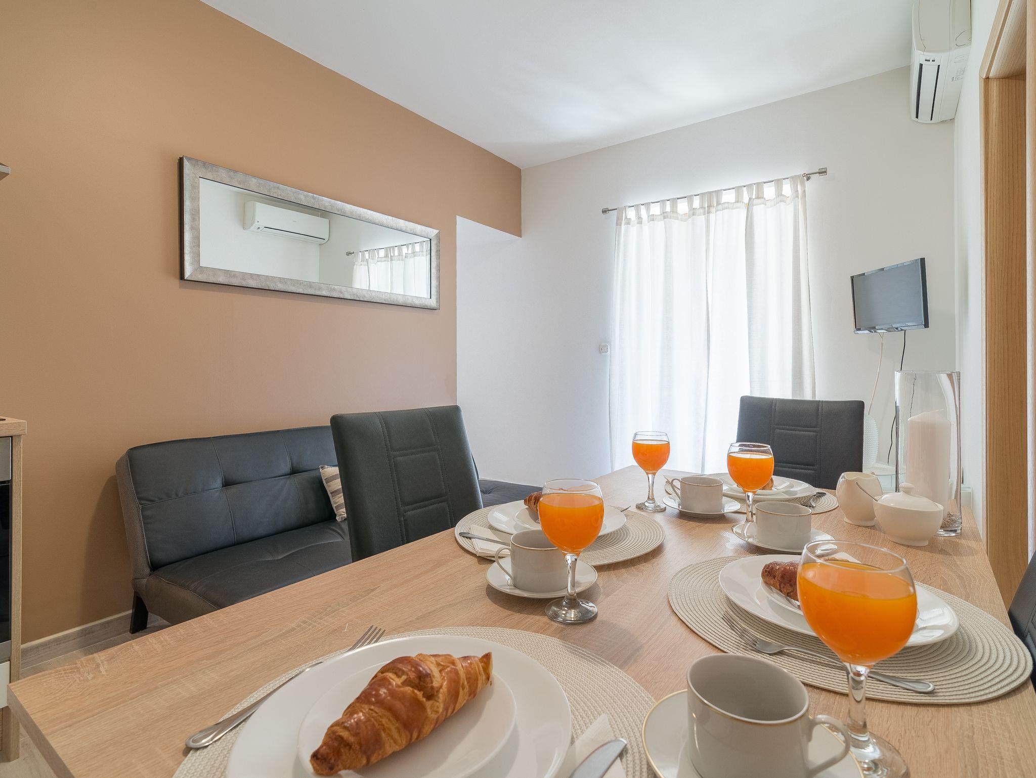 Ferienwohnung bietet Platz für 4 Gäste. Die Betten sind in Schlafzimmern, die es 2 gibt, innerhalb einer Gesamtfläche von 42m2, angeordnet. Die Gäste haben eine eigene Terrasse zur Verfügung, auf der sie in warmen Sommernächten genießen können. Es ist erlaubt, Speisen auf dem Gemeinschafts-Grill vorzubereiten. IM PREIS INBEGRIFFEN: Kurtaxe, Endreinigung, Klimatisierung, Parkplatz, Internet, Bügeleisen, Föhn. VERBINDLICHE ZUSÄTZLICHE KOSTEN: Aufzahlung für Kurzaufenthalte (prozentualer Zuschlag pro Nächtigungsanzahl: 30% - 1, 20% - 2, 10% - 3). Die Verfügbarkeit zusätzlicher Dienstleistungen in Ihrem reservierten Termin und die Preise derselben (falls nicht aufgeführt) müssen im Voraus überprüft werden. Zusätzliche Dienstleistungen die in der Zahlungsaufforderung nicht aufgeführt sind werden direkt beim Vermieter bezahlt, angenommen der Gast nutzt auch diese.