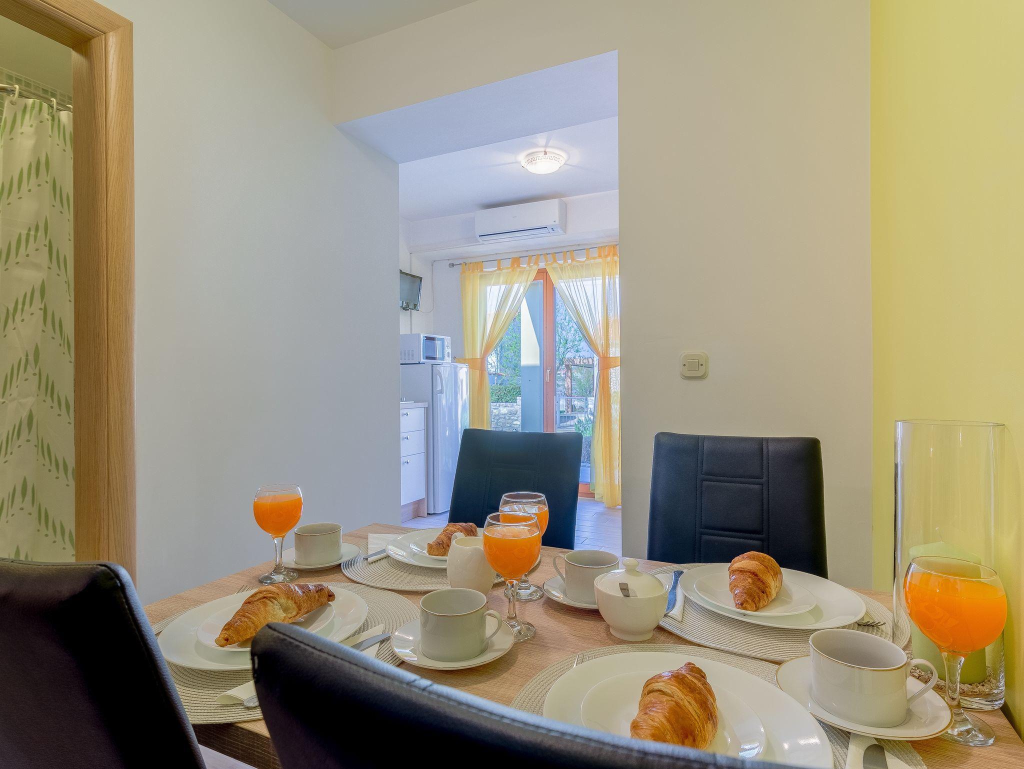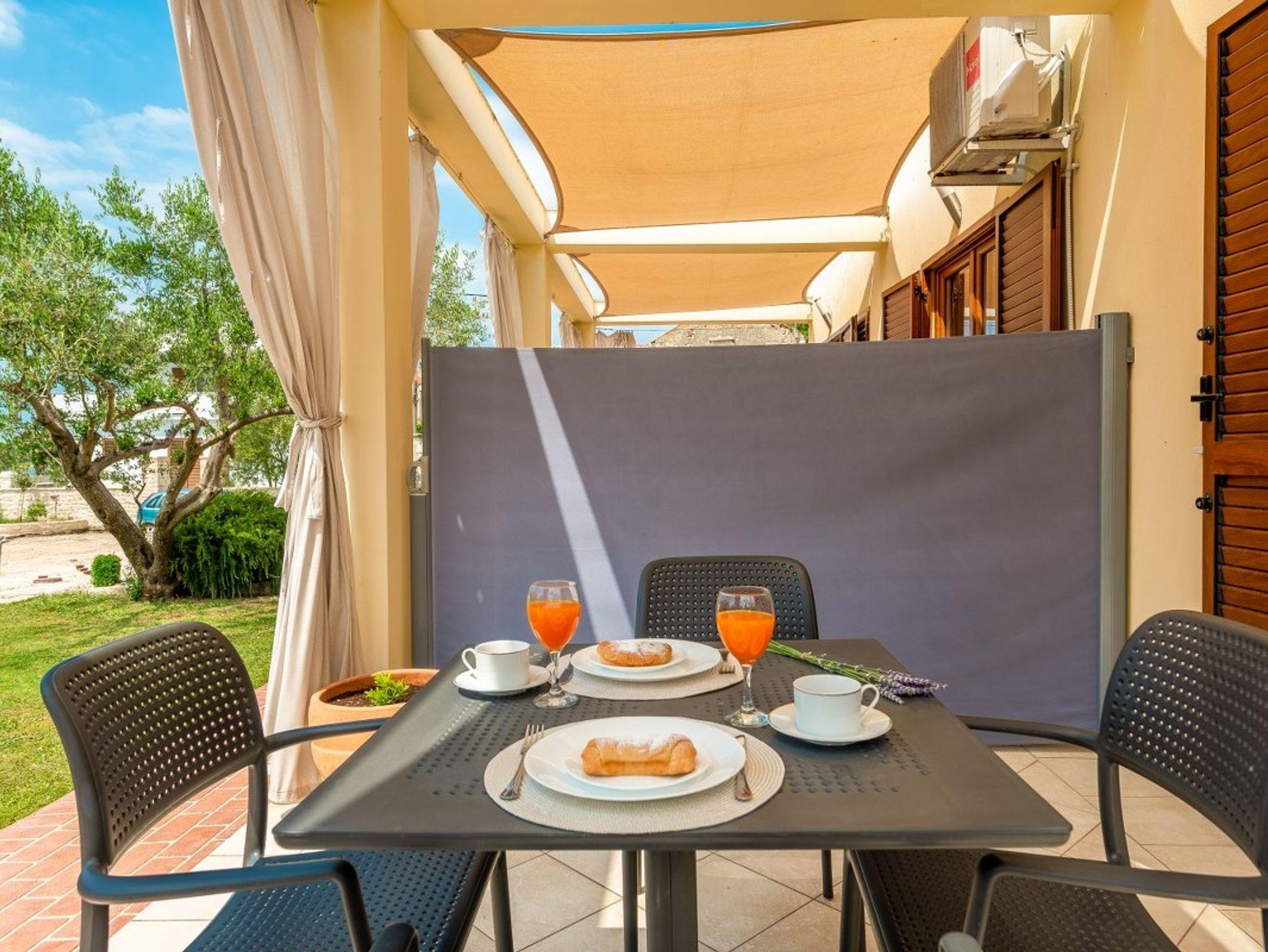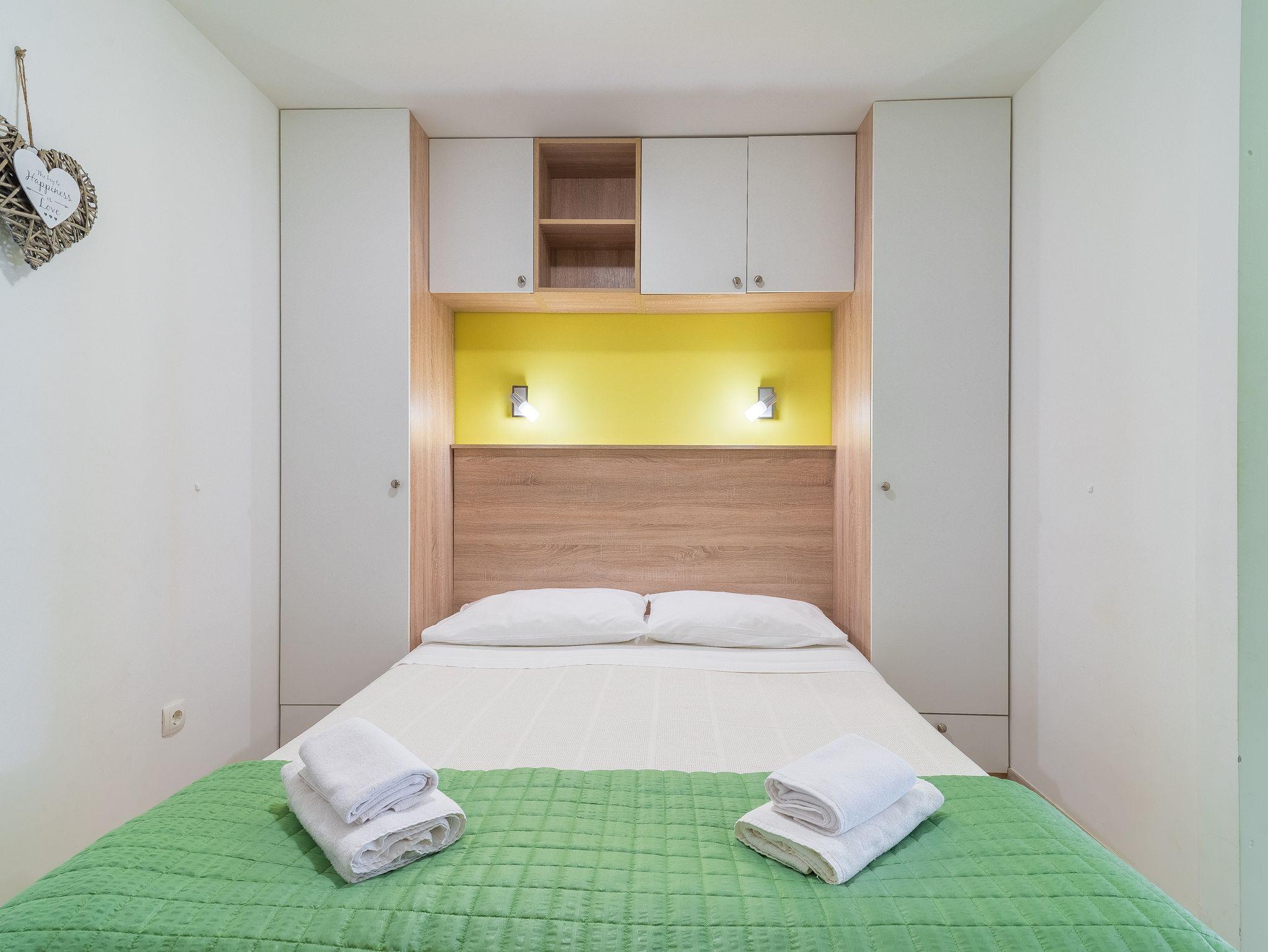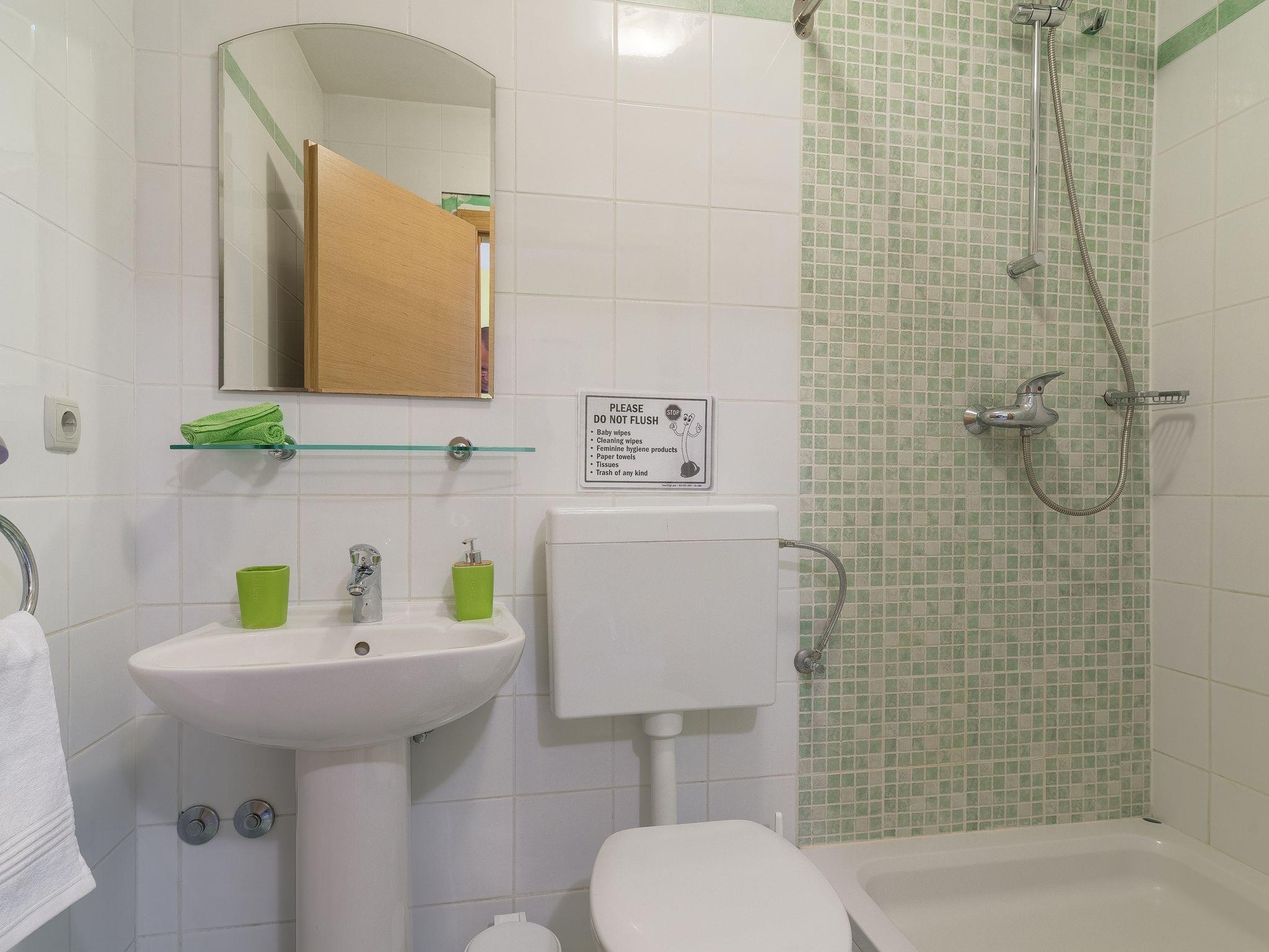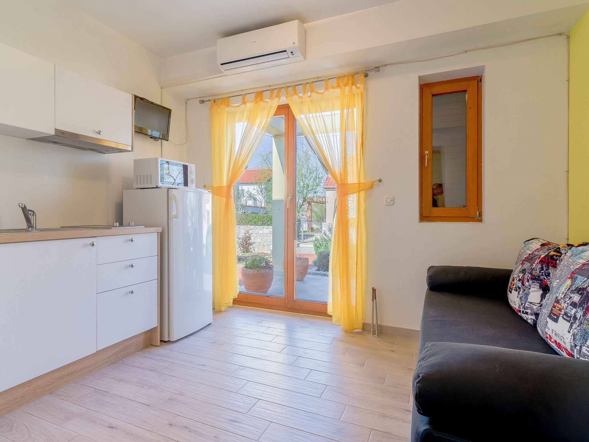 Ferienwohnung bietet Platz für 3 Gäste. Die Betten sind in Schlafzimmern, die es 1 gibt, und in Wohnzimmer, innerhalb einer Gesamtfläche von 24m2, angeordnet. Die Gäste haben eine eigene Terrasse zur Verfügung, auf der sie in warmen Sommernächten genießen können. Das Apartment bietet Meerblick. Es ist erlaubt, Speisen auf dem Gemeinschafts-Grill vorzubereiten. IM PREIS INBEGRIFFEN: Kurtaxe, Endreinigung, Klimatisierung, Parkplatz, Internet, Bügeleisen, Föhn. VERBINDLICHE ZUSÄTZLICHE KOSTEN: Aufzahlung für Kurzaufenthalte (prozentualer Zuschlag pro Nächtigungsanzahl: 30% - 1, 20% - 2, 10% - 3). Die Verfügbarkeit zusätzlicher Dienstleistungen in Ihrem reservierten Termin und die Preise derselben (falls nicht aufgeführt) müssen im Voraus überprüft werden. Zusätzliche Dienstleistungen die in der Zahlungsaufforderung nicht aufgeführt sind werden direkt beim Vermieter bezahlt, angenommen der Gast nutzt auch diese.